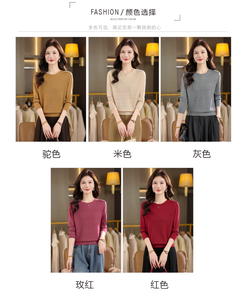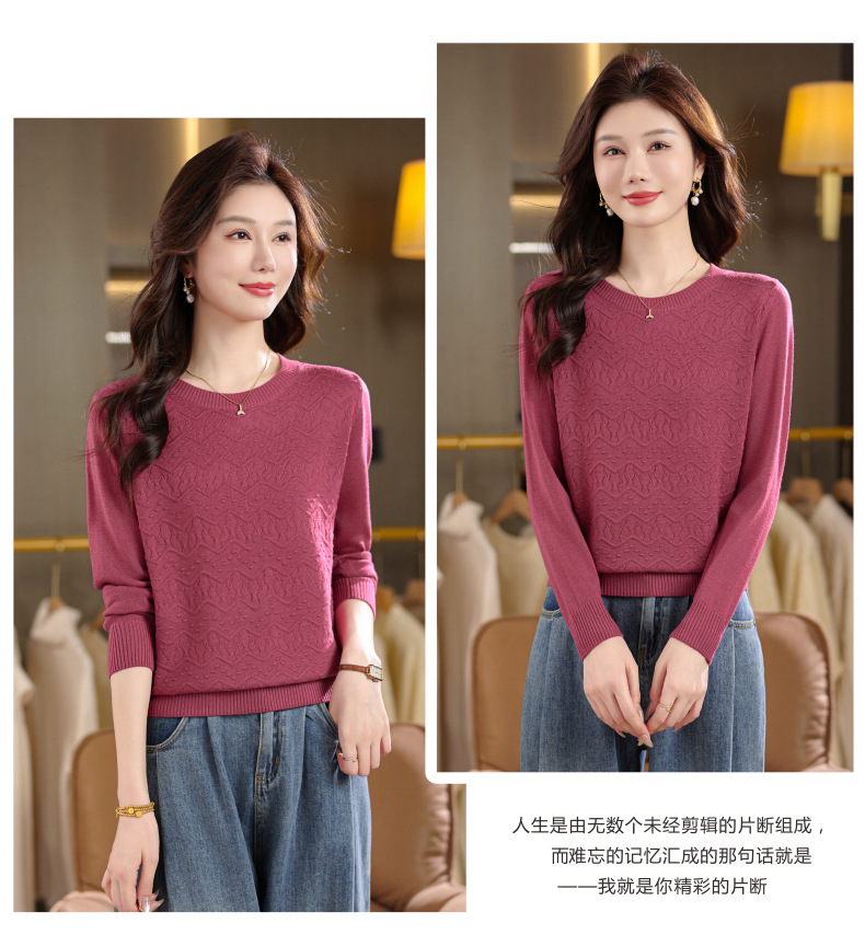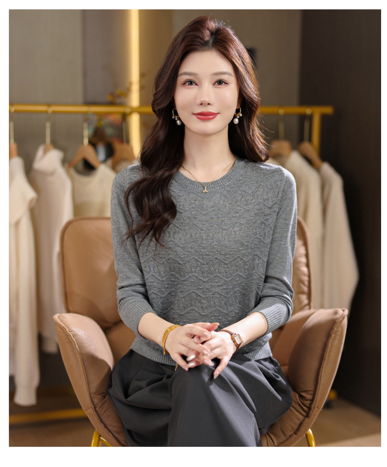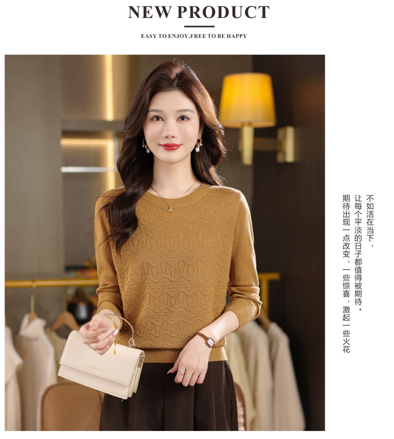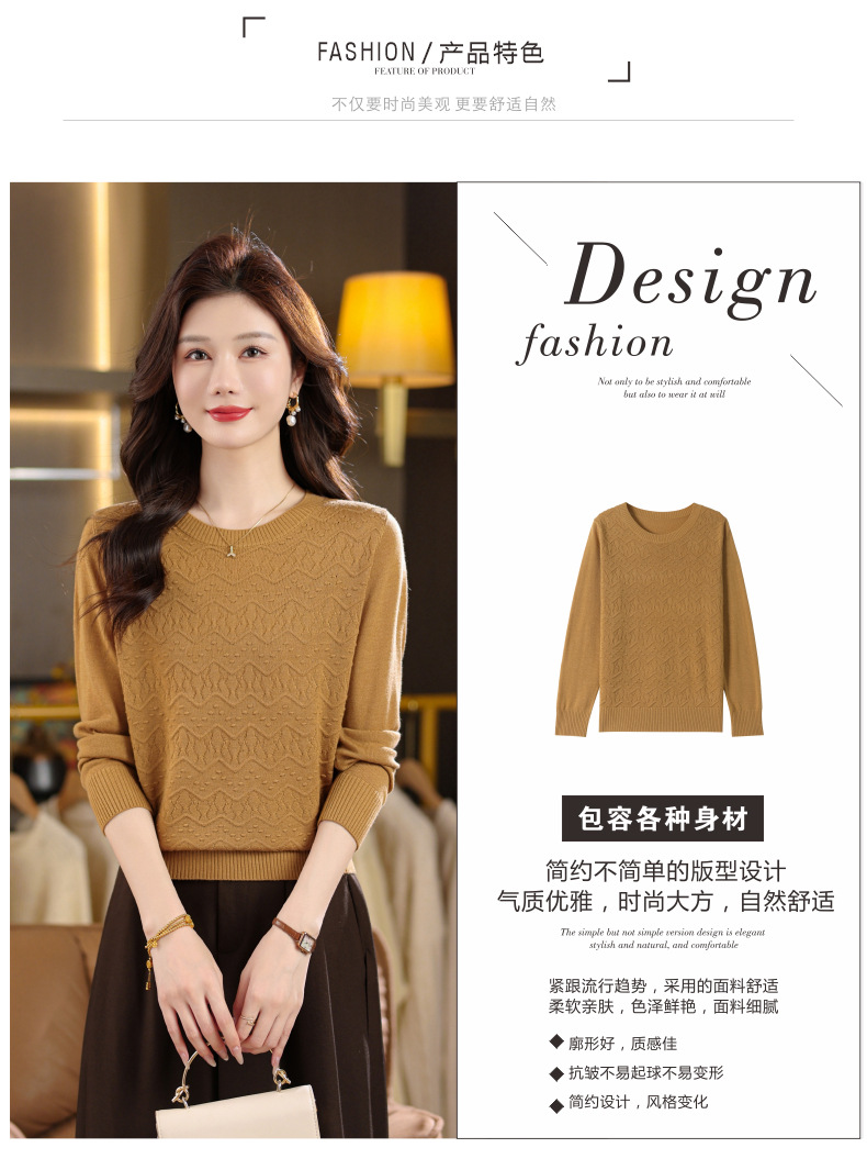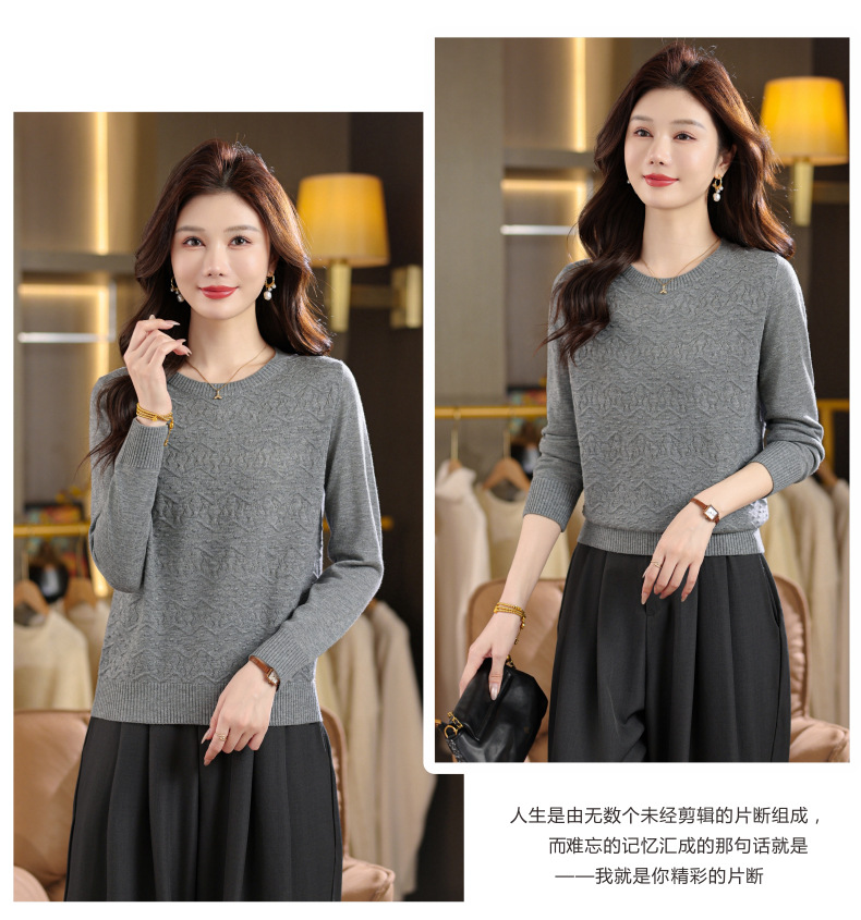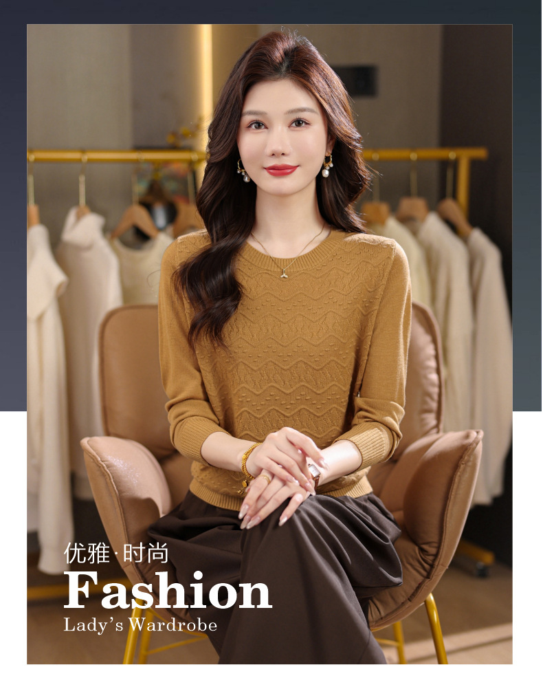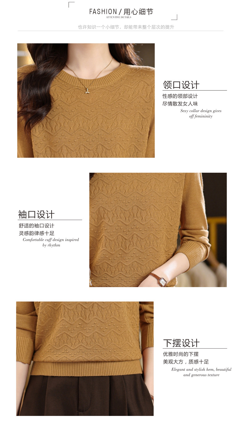 CC圆领毛衣女士春秋季2025新款洋气波浪针织宽松上衣羊毛打底衫内搭