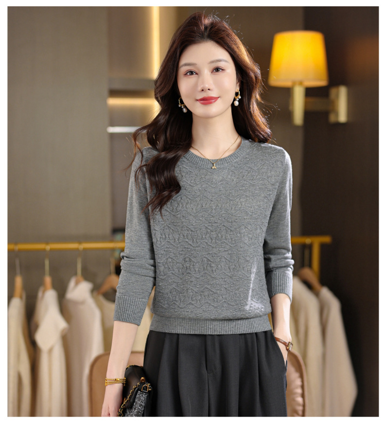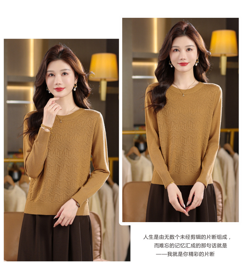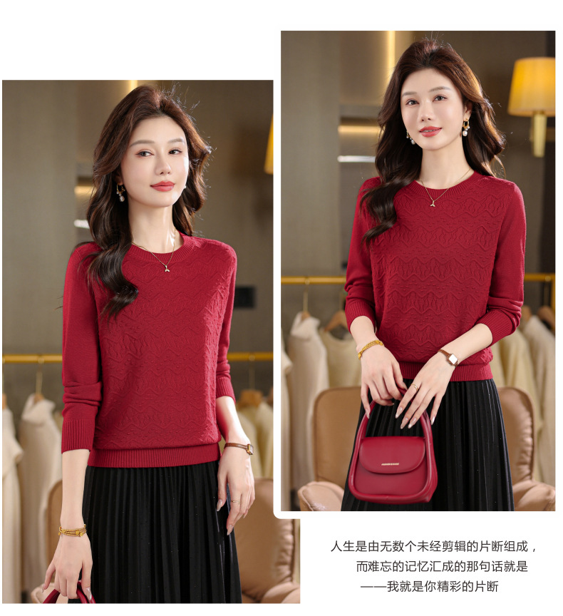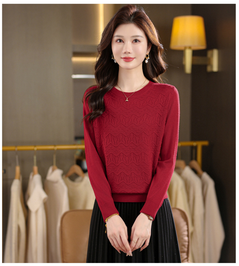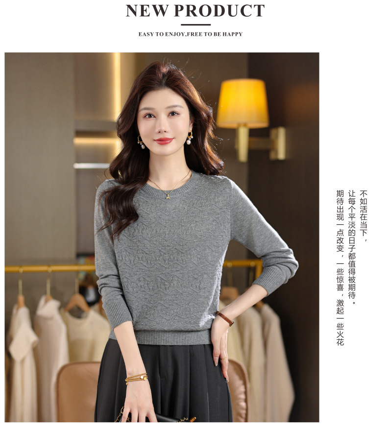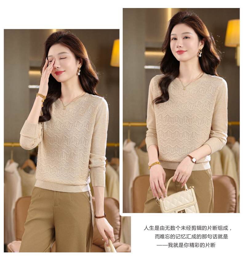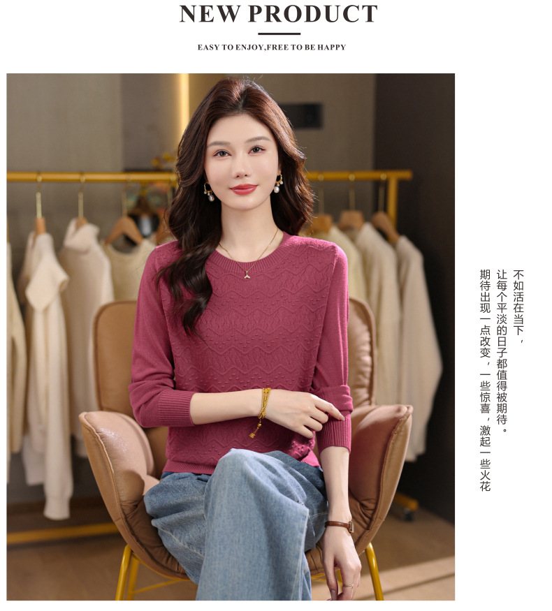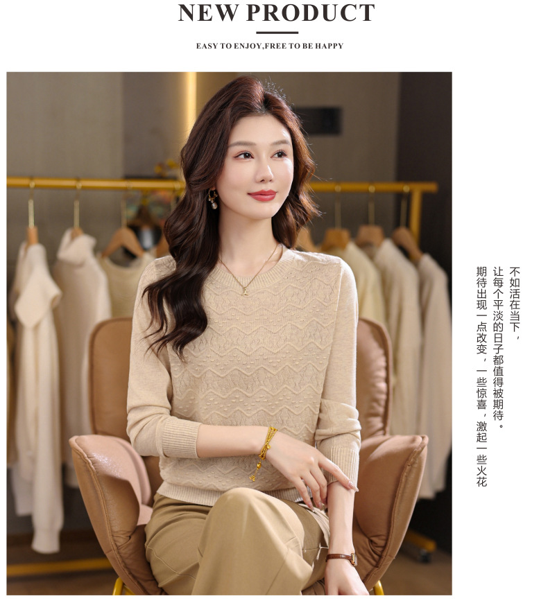 CC圆领毛衣女士春秋季2025新款洋气波浪针织宽松上衣羊毛打底衫内搭