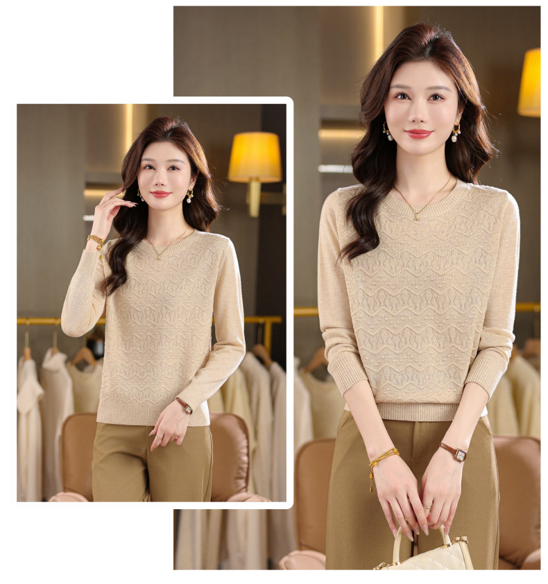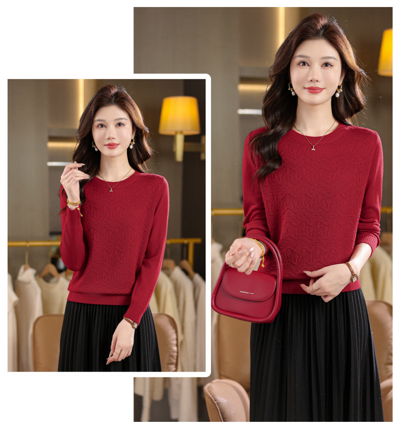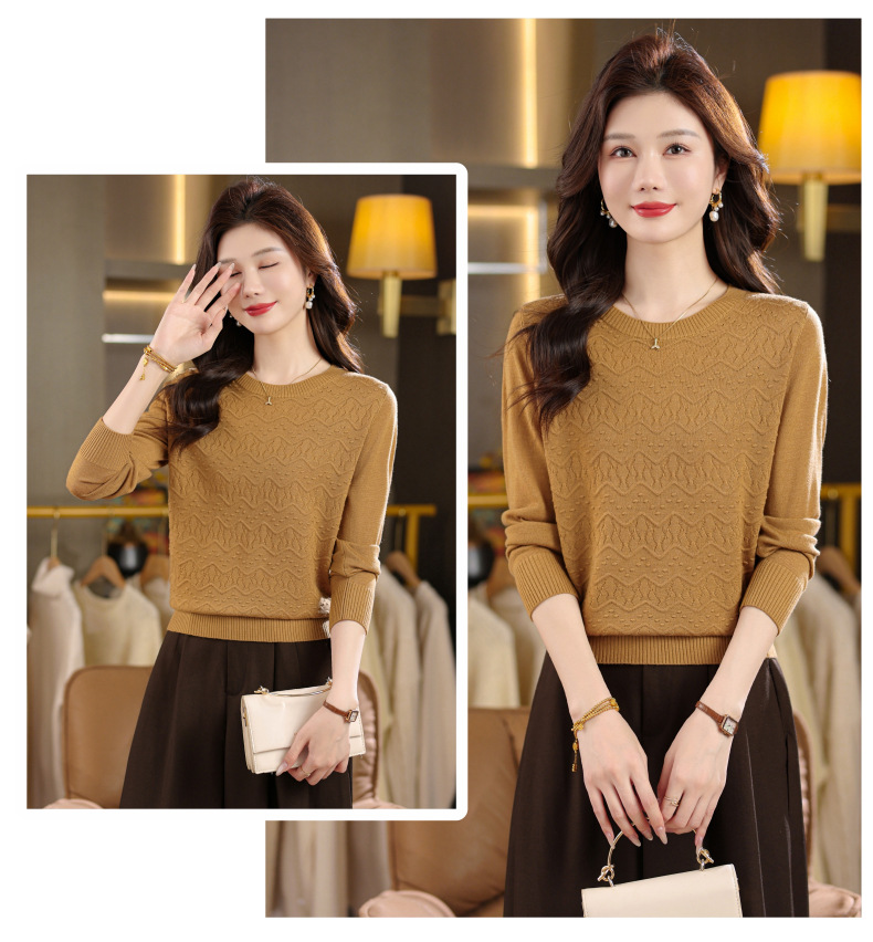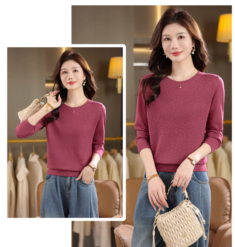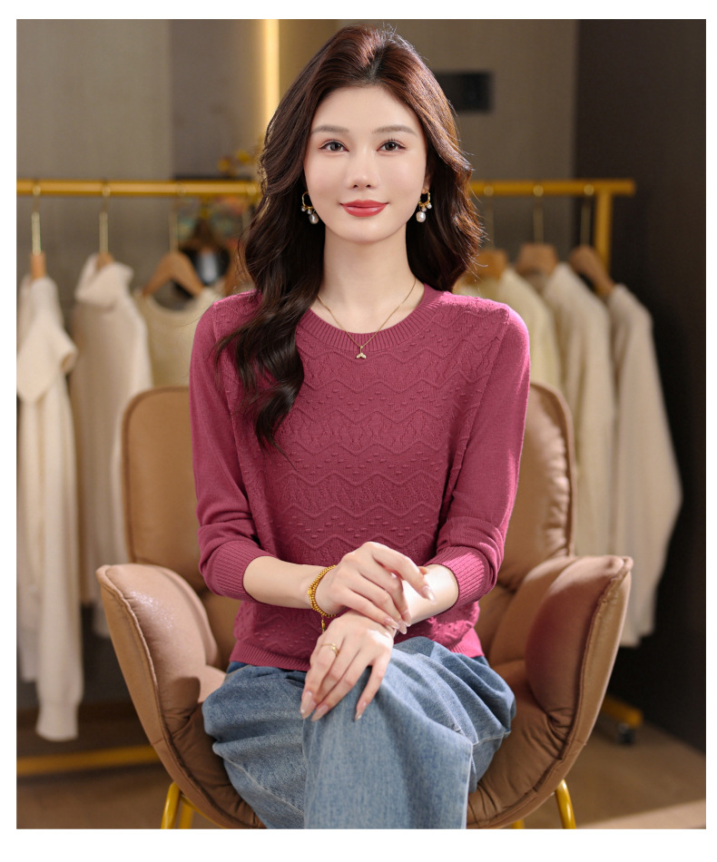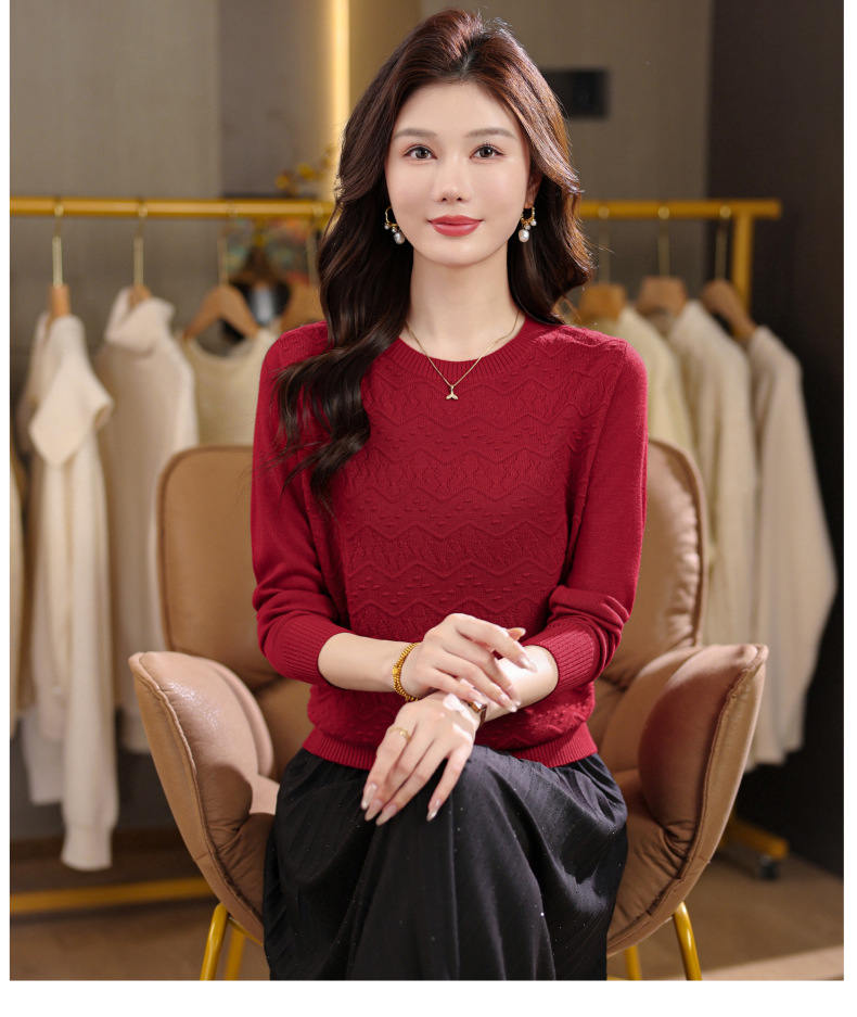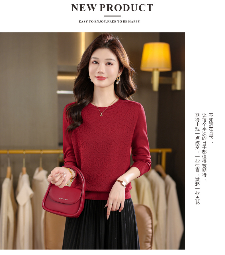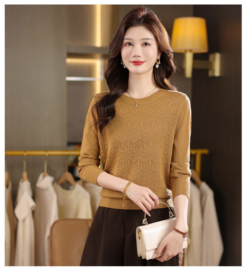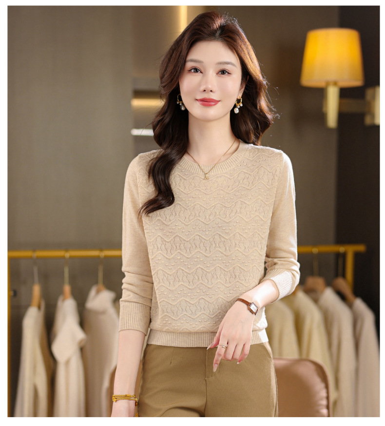 CC圆领毛衣女士春秋季2025新款洋气波浪针织宽松上衣羊毛打底衫内搭
