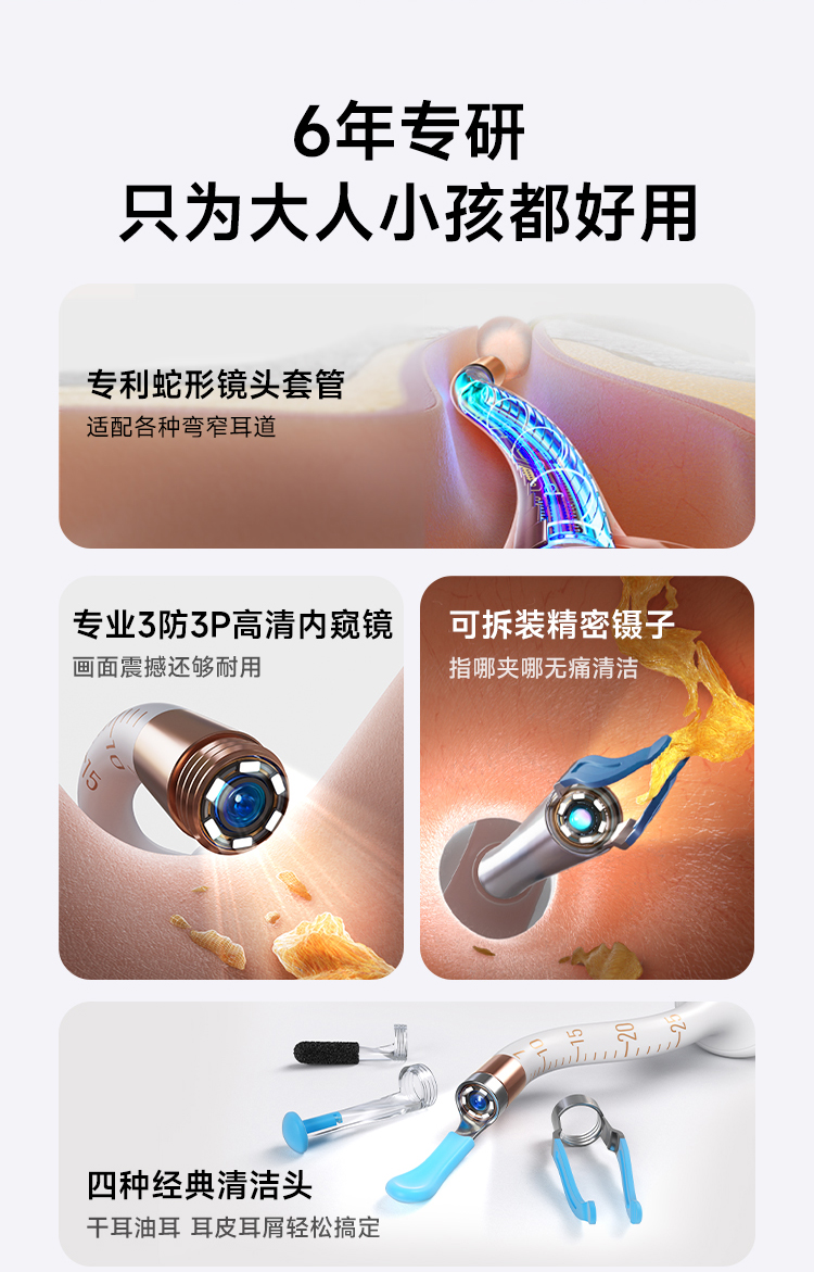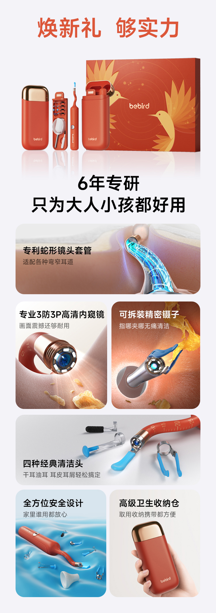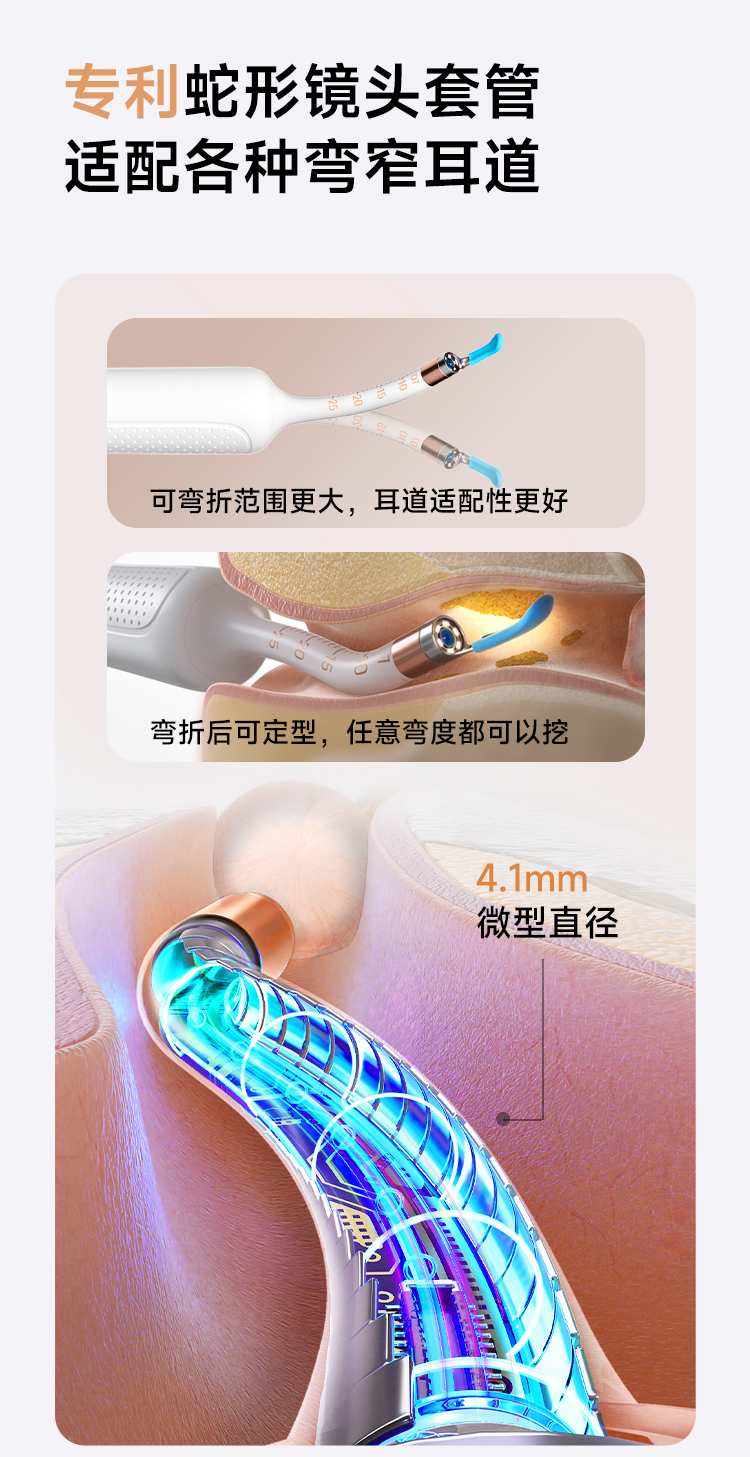 【可视化采耳神盒】蜂鸟可视采耳仪 3防3P高清内窥镜 镜头可水洗 蛇形镜头套管 4种包胶清洁头 大人小孩适用 送长辈送爱侣送好友 苹果安卓鸿蒙都适配