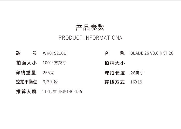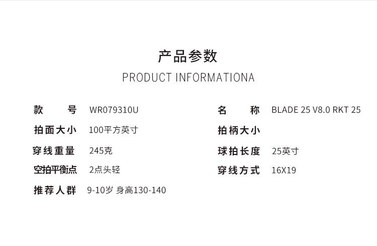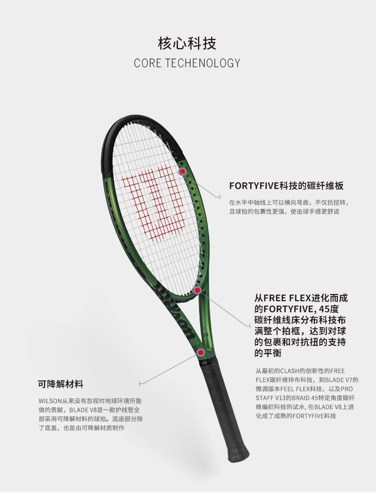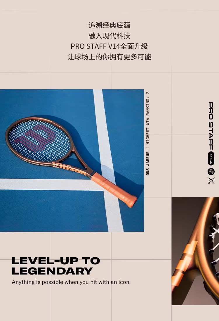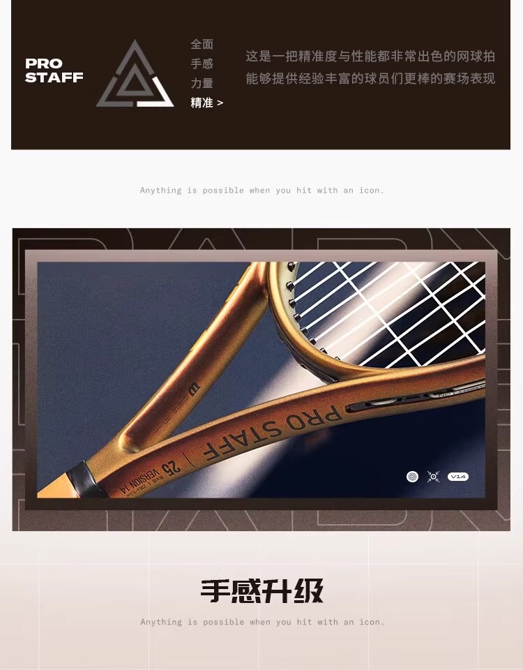 球星战拍复刻 Wilson PRO STAFF V14 BLADE V9 穿线单人全碳素 专业拍儿童网球拍