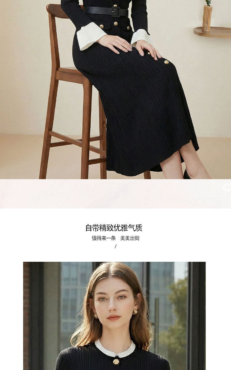 「自」全新升级【铂金会员468/天猫629/差价161】(54931)洛诗琳气质圆领百搭针织连衣裙2026春季新款修身显瘦长款连衣裙