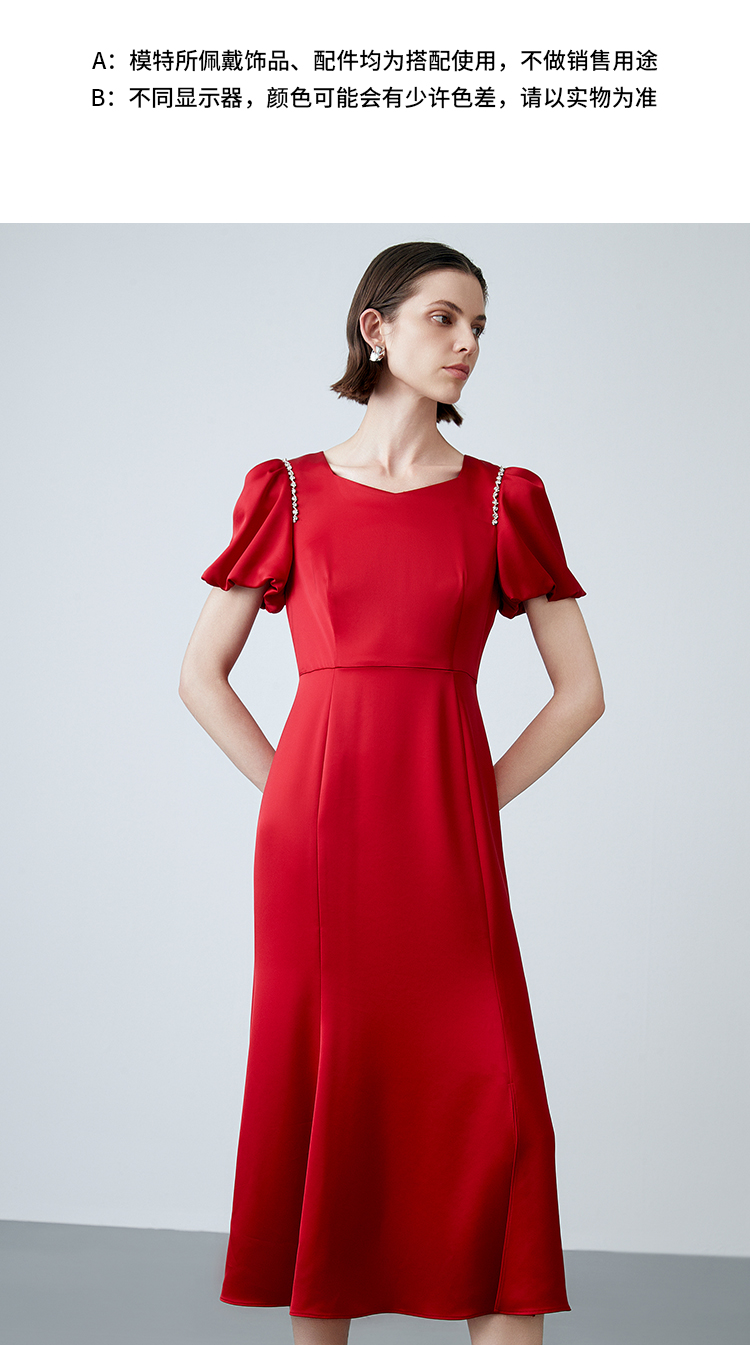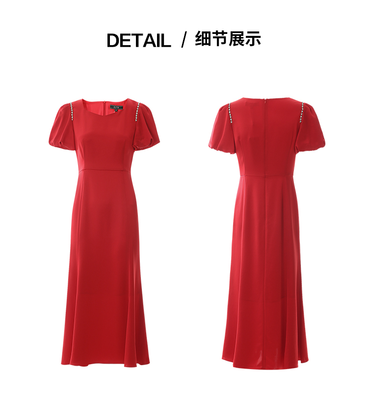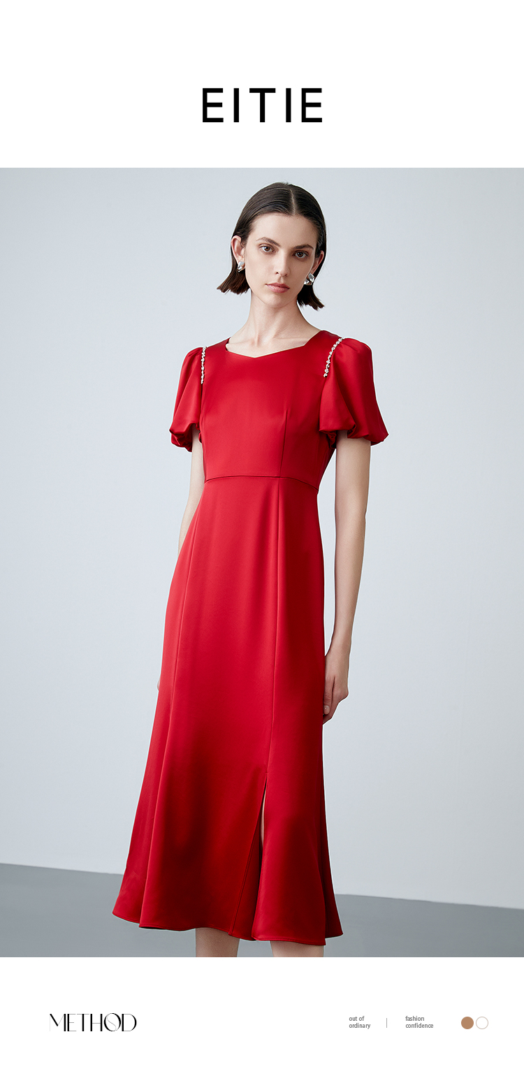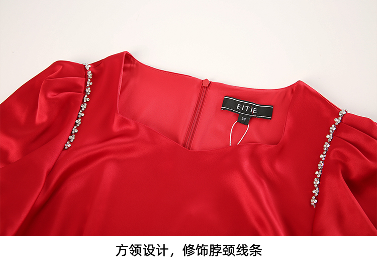 EITIE爱特爱夏季新品时尚优雅泡泡袖修身礼服连衣裙7877505