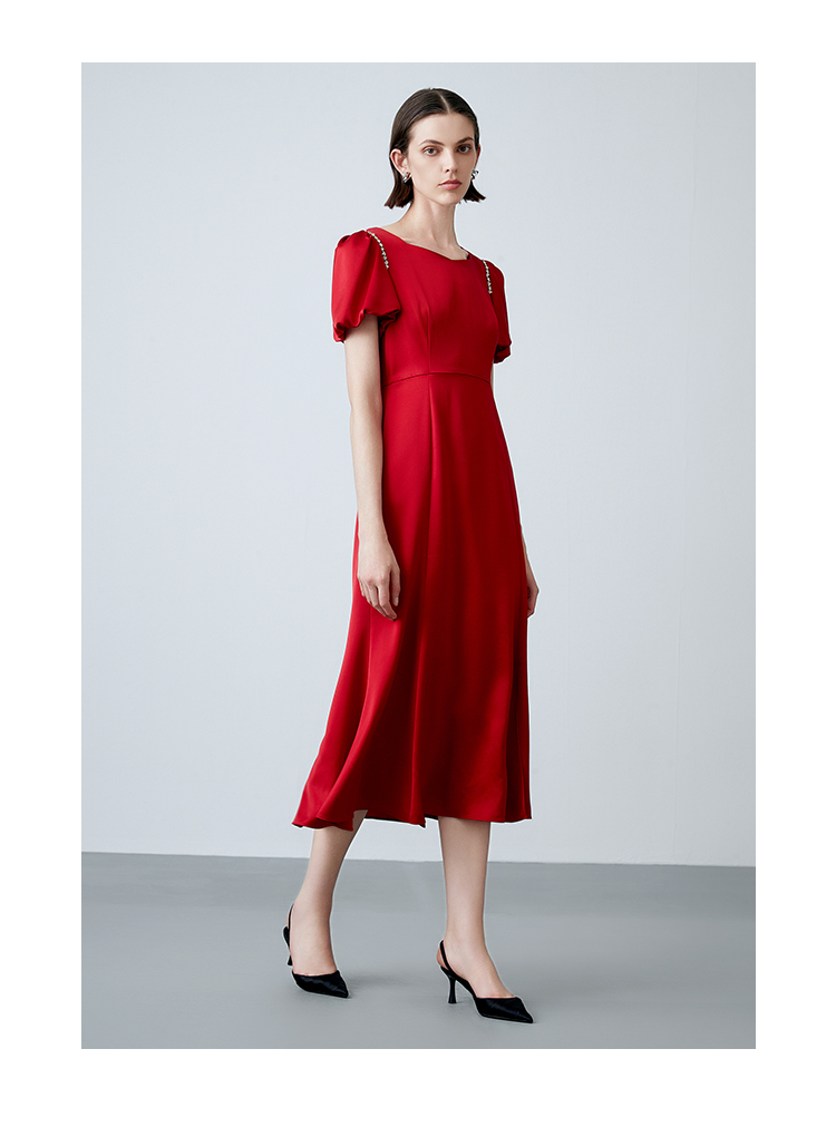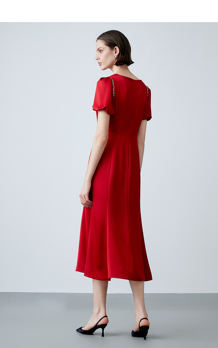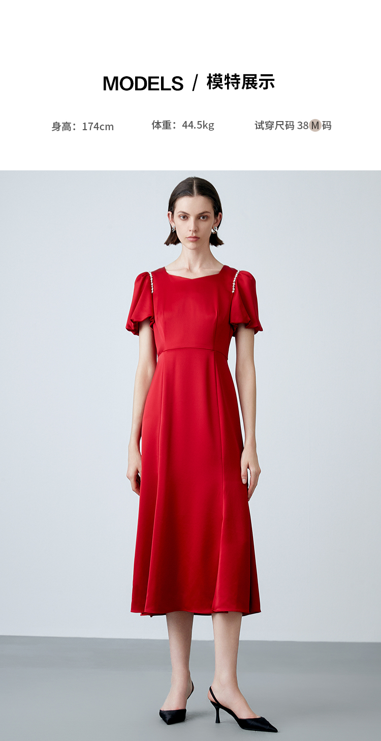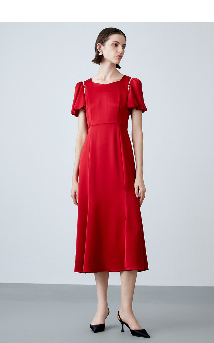 EITIE爱特爱夏季新品时尚优雅泡泡袖修身礼服连衣裙7877505
