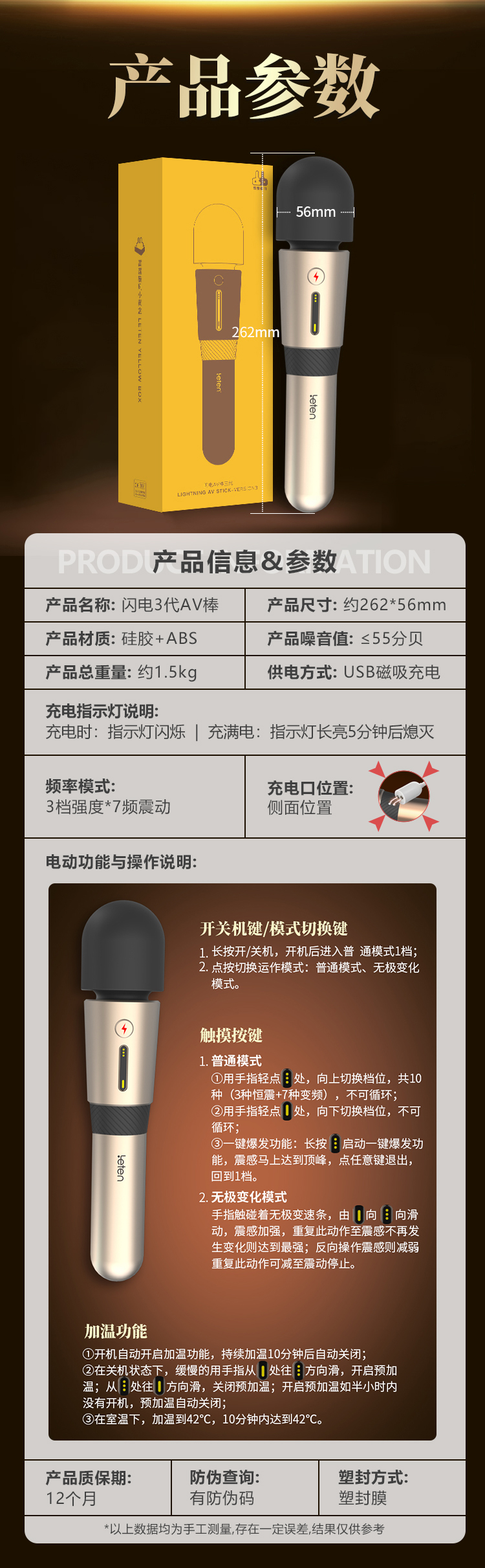 leten雷霆暴风 闪电AV棒3代 震动震动棒 加温震动棒 女用 大号秒潮强震