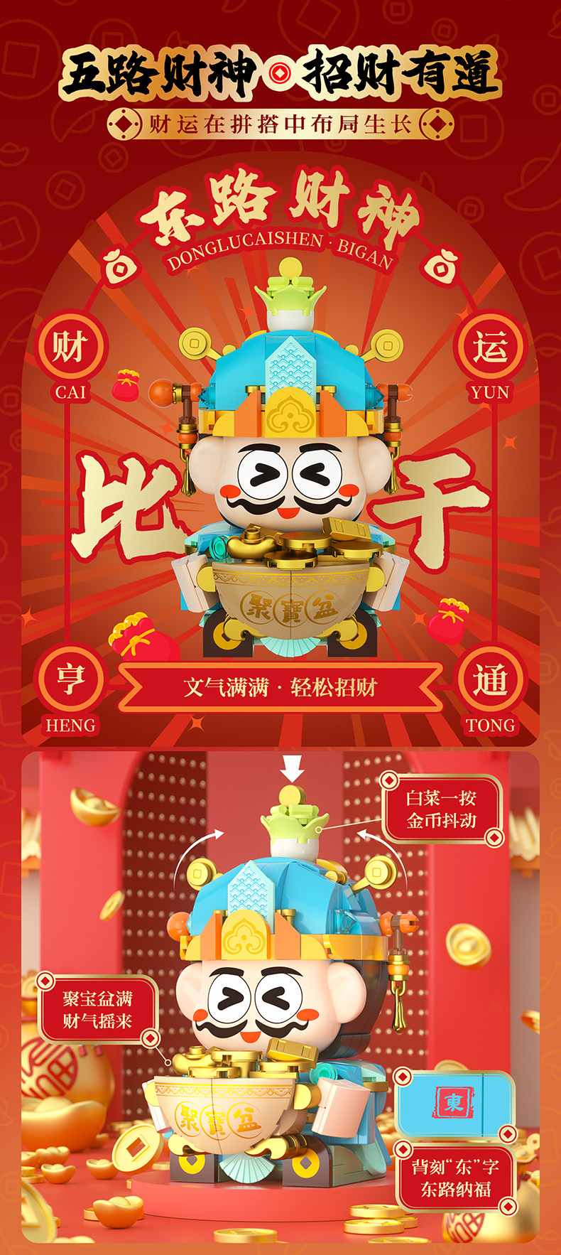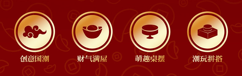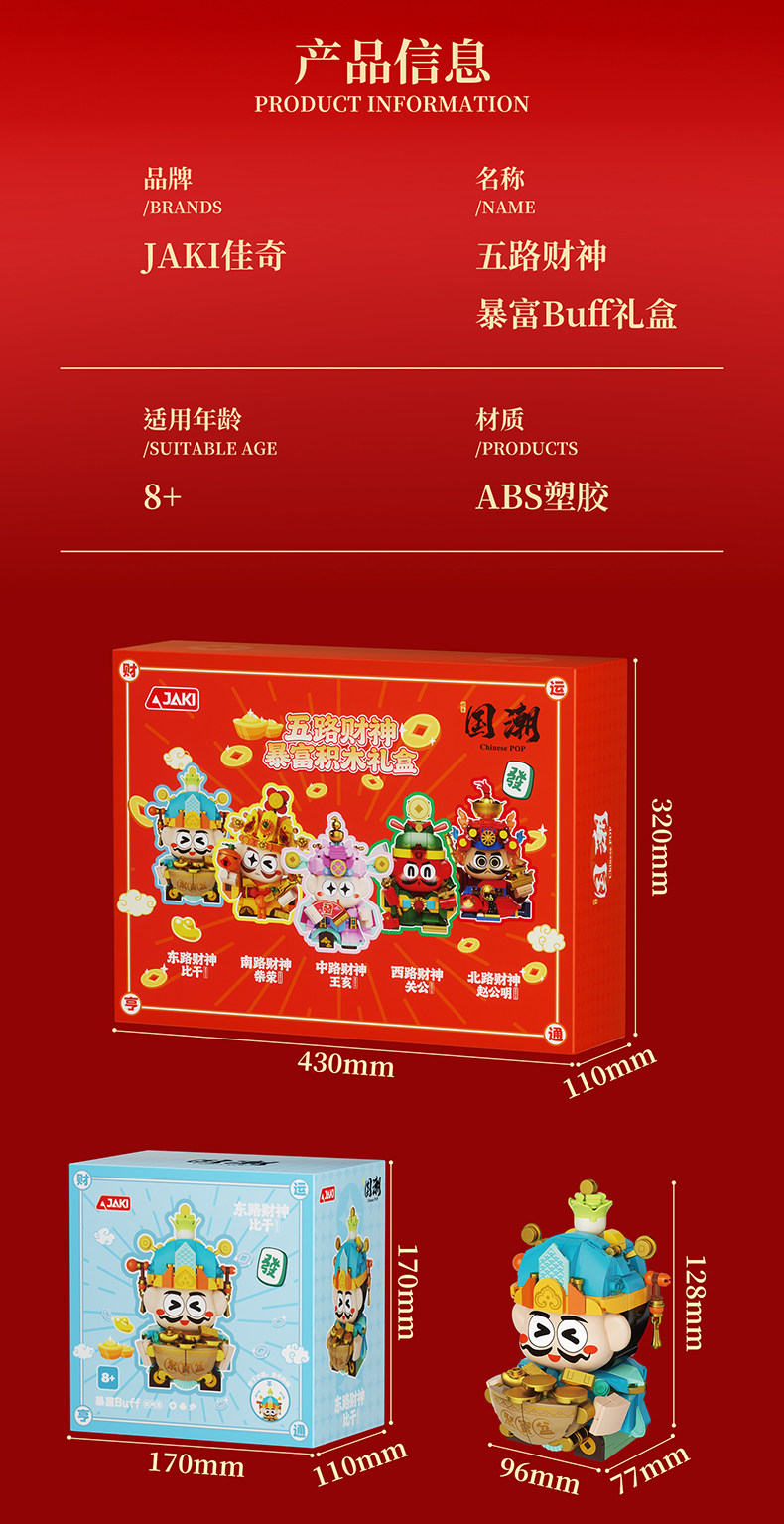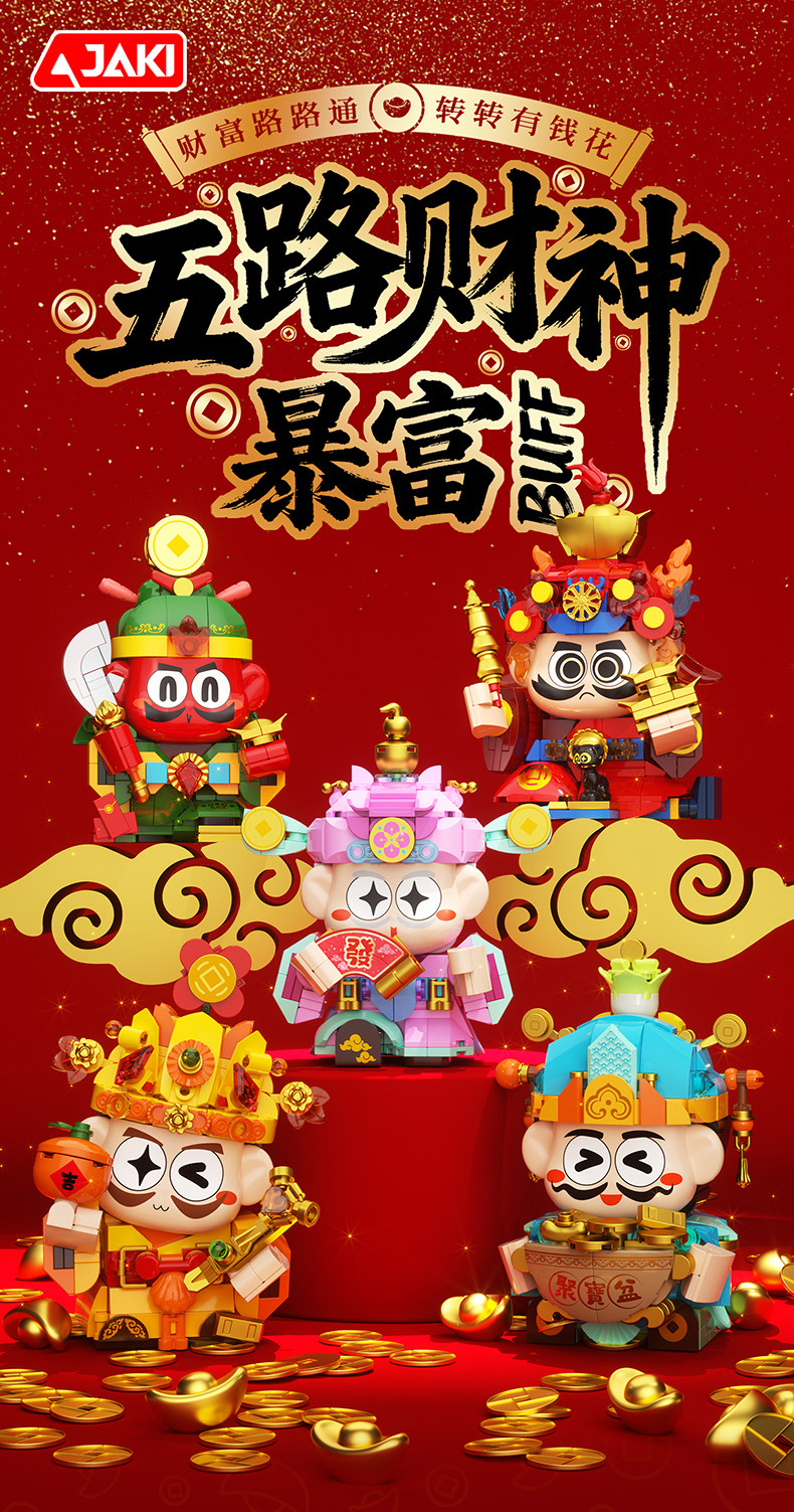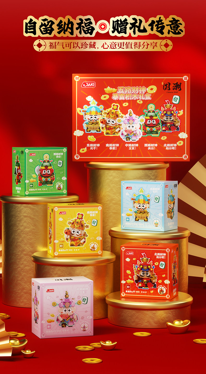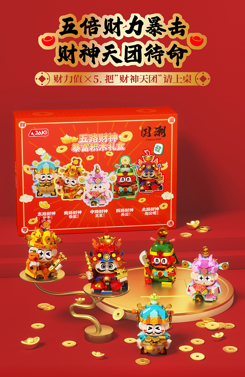 【可动的积木摆件 福气可珍藏】佳奇新年五路财神暴富积木BUFF礼盒 招财摆件拼装玩具 送男孩女孩的新年礼物
