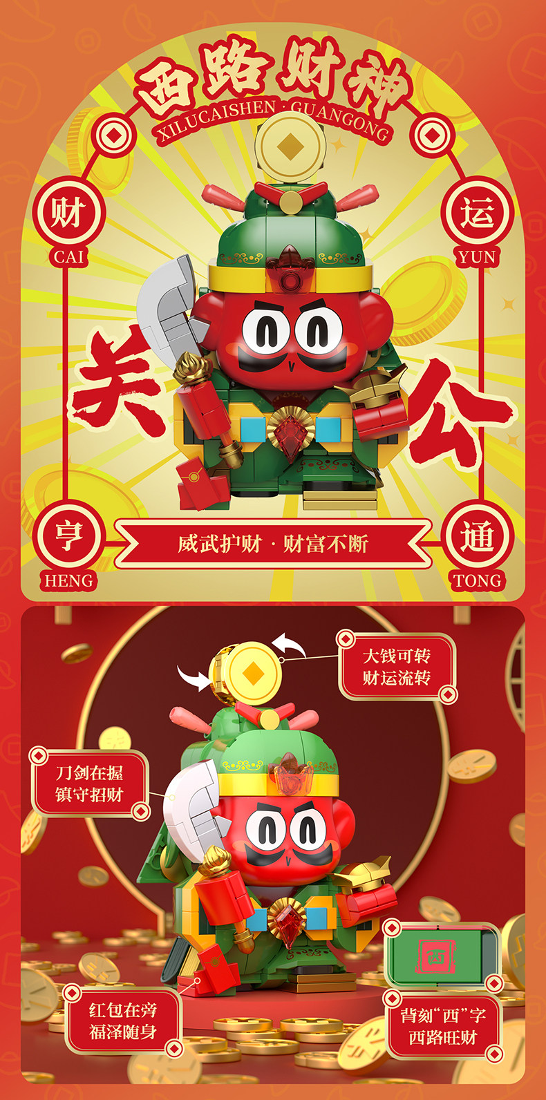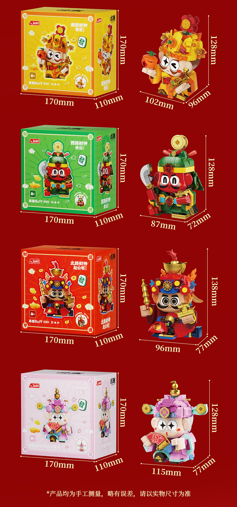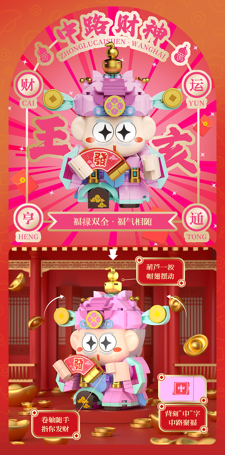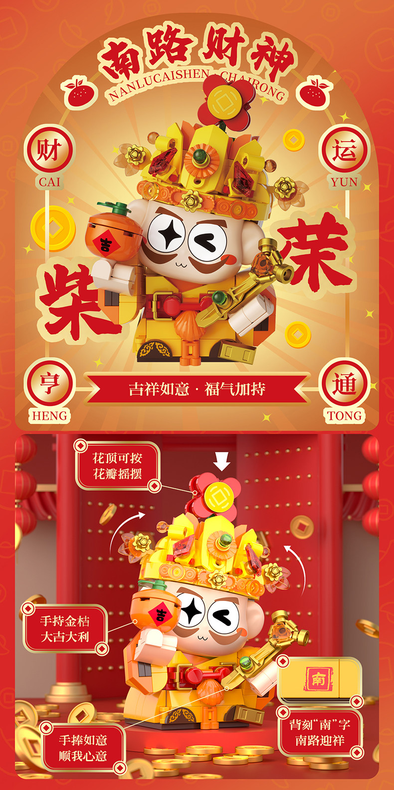 【可动的积木摆件 福气可珍藏】佳奇新年五路财神暴富积木BUFF礼盒 招财摆件拼装玩具 送男孩女孩的新年礼物