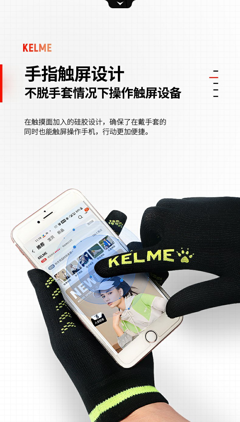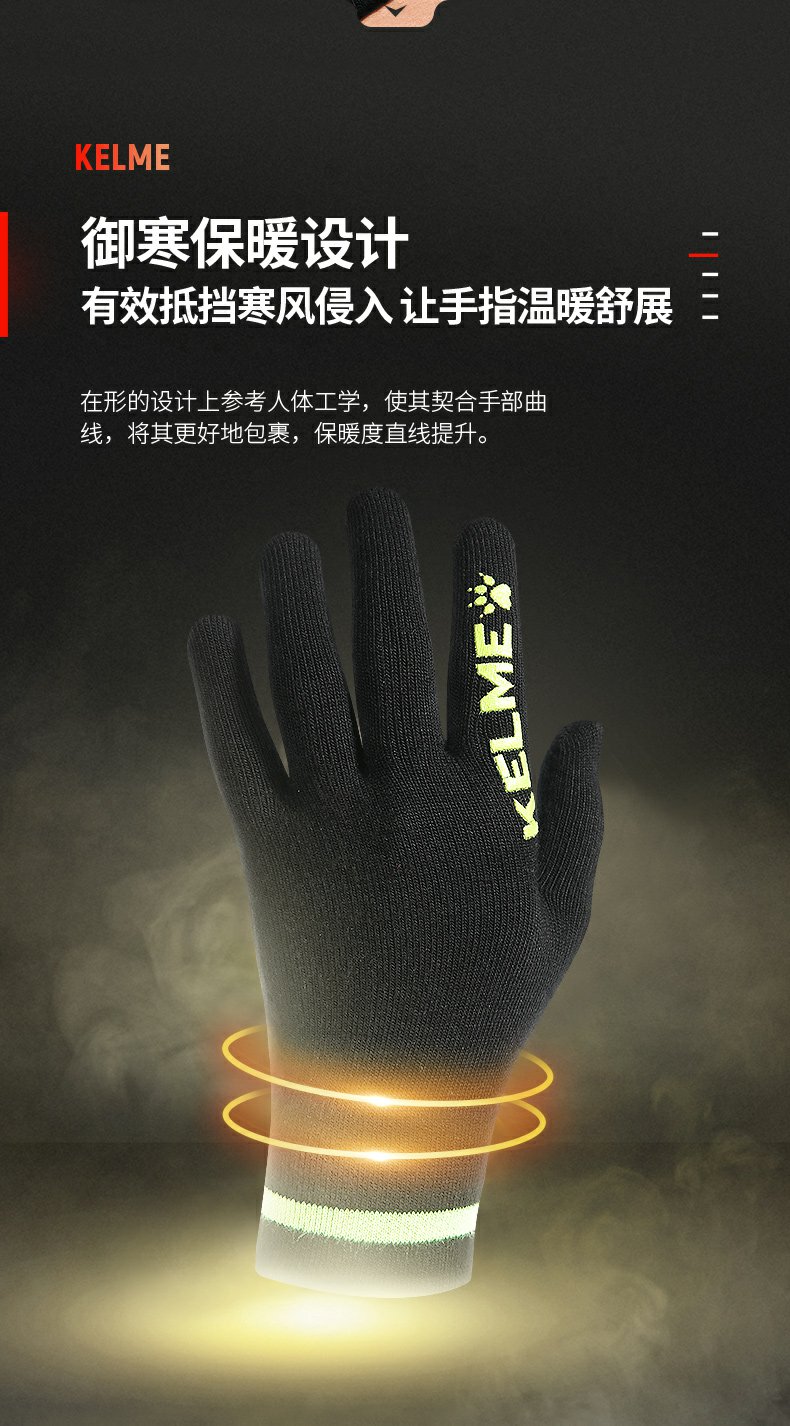 KELME卡尔美秋冬运动保暖手套健身跑步防寒针织毛线可触屏手套