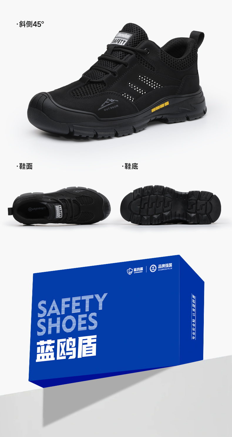 蓝鸥盾夏季大网孔透气劳保鞋男防砸防刺安全鞋升级4.0㎜凯夫拉底