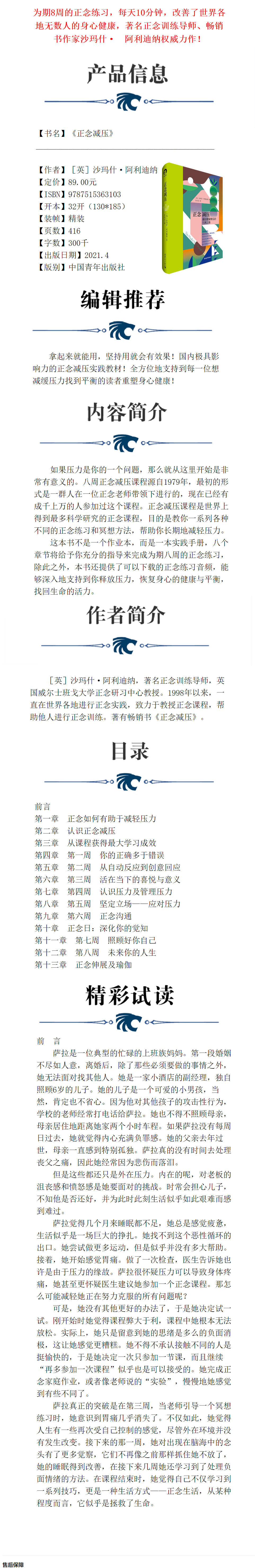 《正念减压》[英]沙玛什·阿利迪纳 中国青年出版社