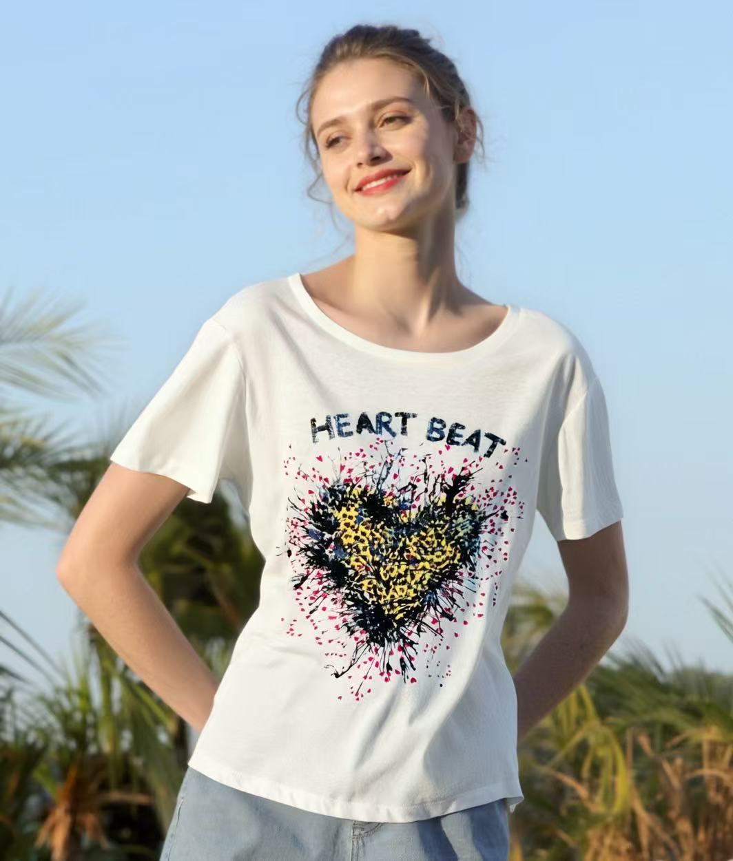 520破价~(NO退)竹节棉涂鸦黑黄爱心薄款短袖T恤-喜出