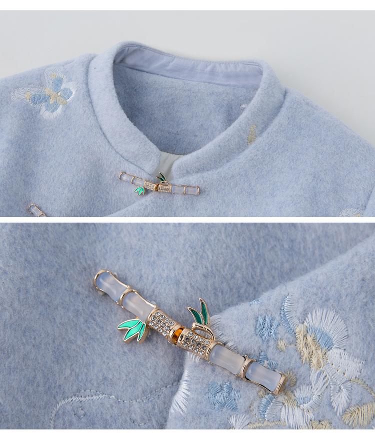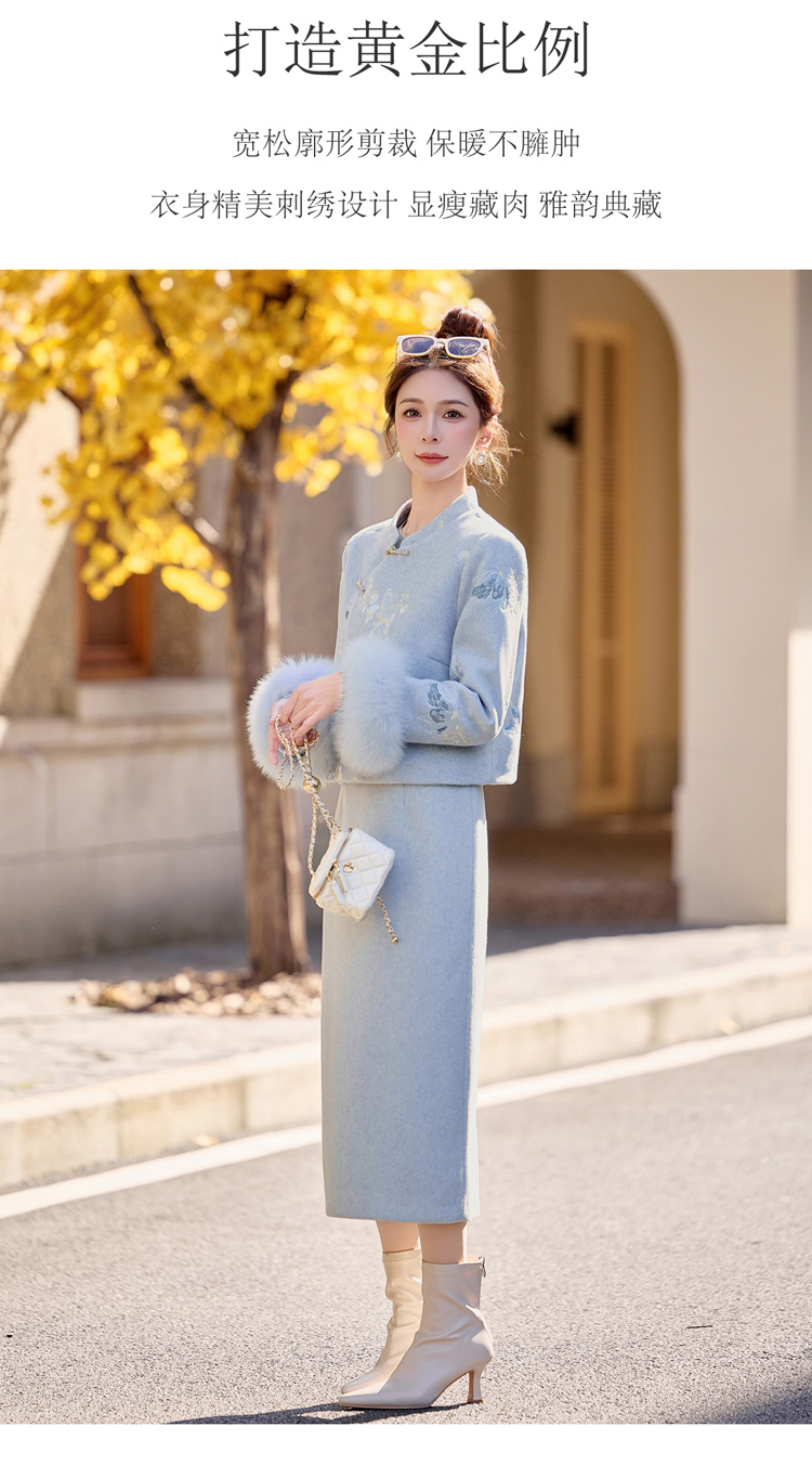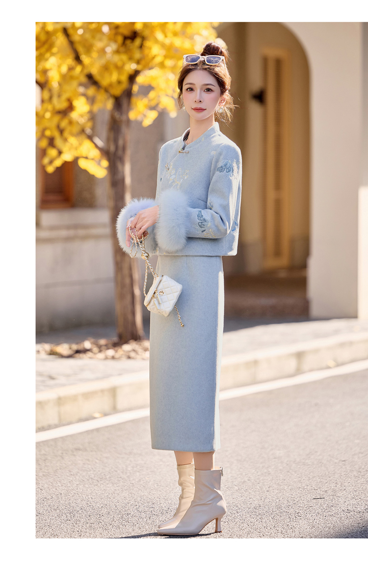 蓝色刺绣加绒加厚冬装国风改良旗袍年轻款 SC22380