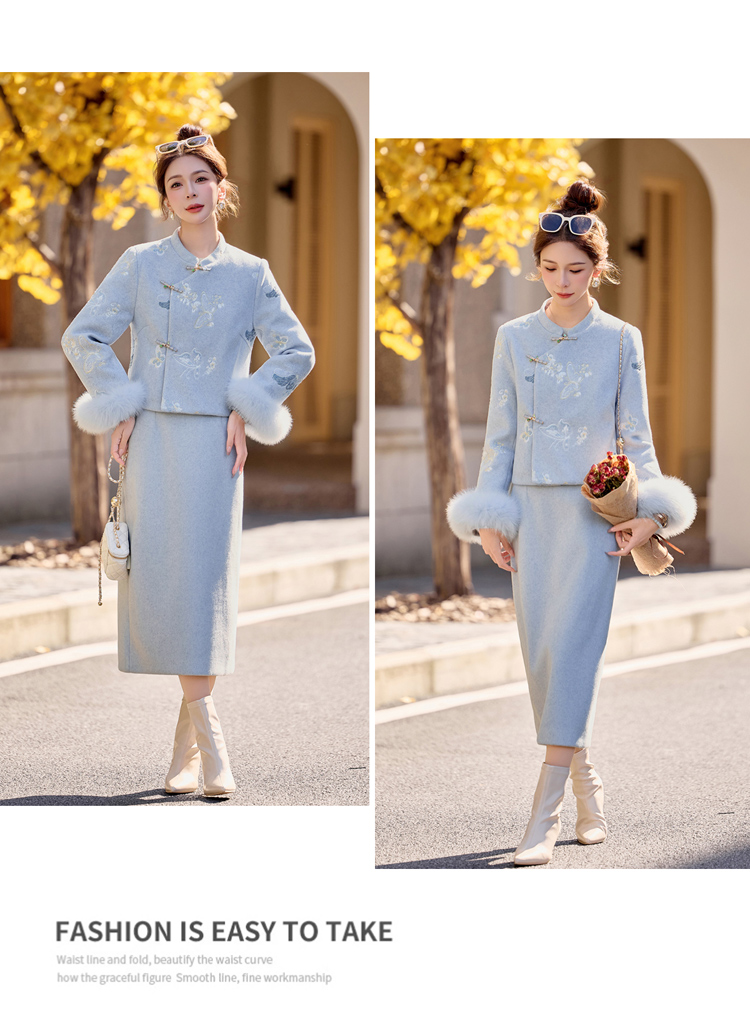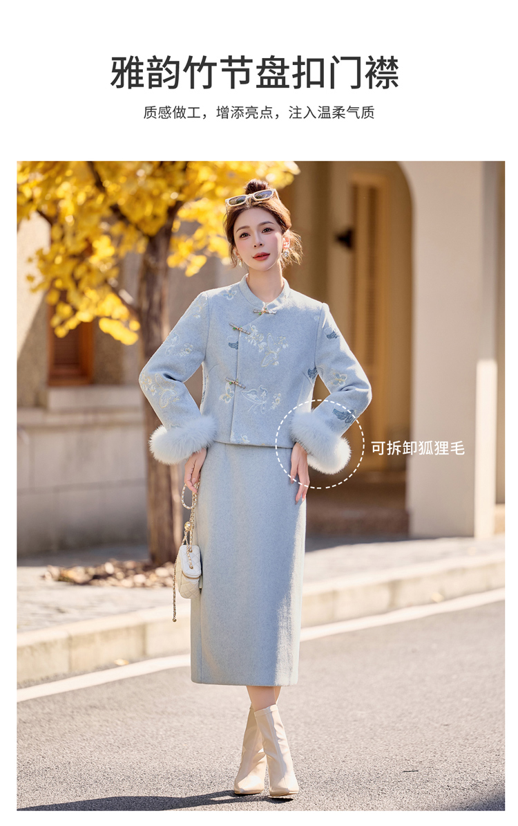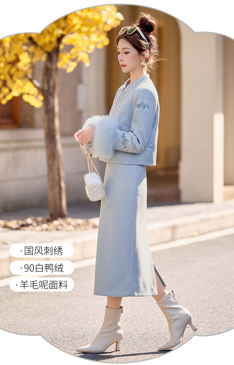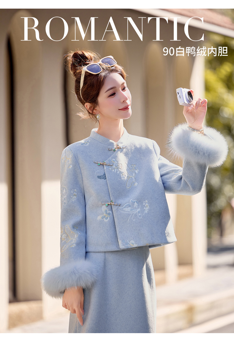 新中式刺绣羽绒套装,狐狸毛90绒HR-YJLY86880