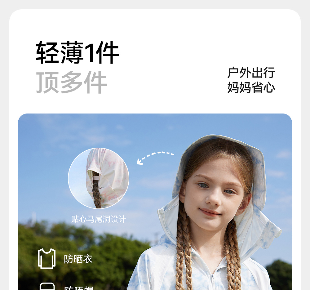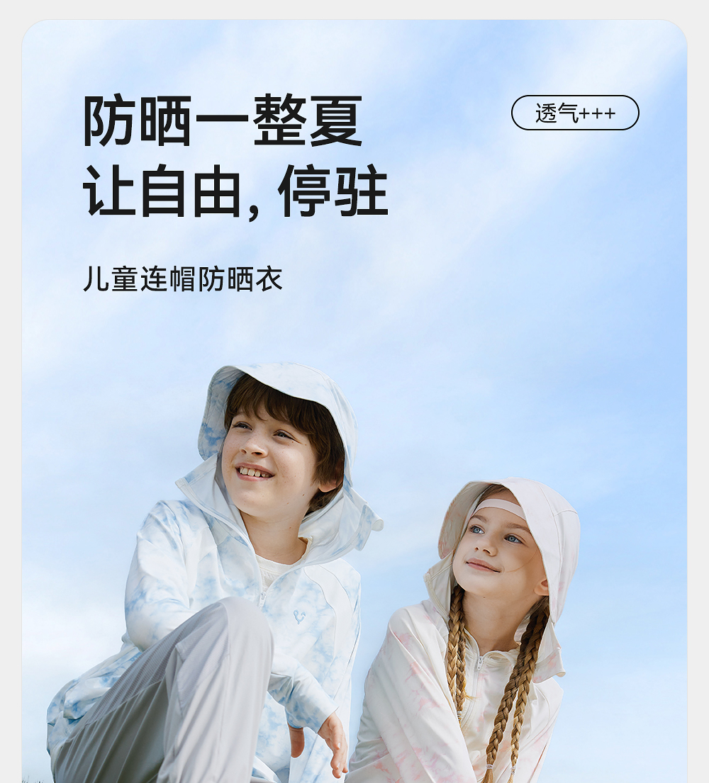 英氏儿童防晒衣夏季轻薄户外防晒衣男童女童连帽防晒外套2025新款