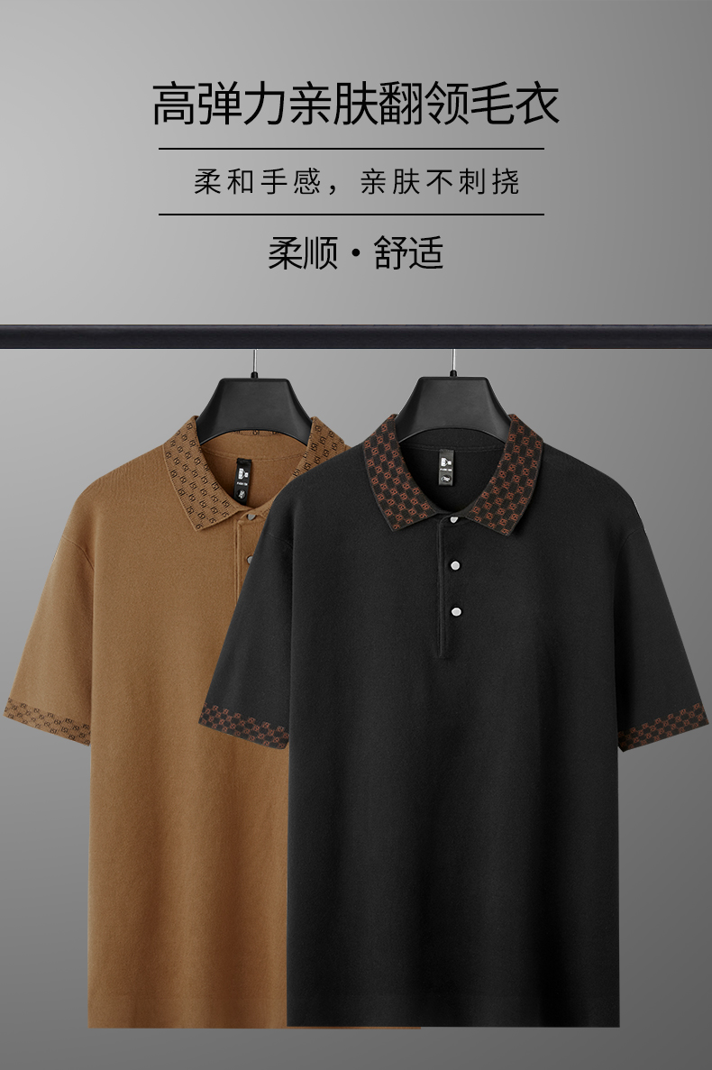 【新款DG】大依优型翻领毛衣针织衫短袖背心休闲针织衫毛背心加肥加大上衣男士胖子大码毛衫t恤打底