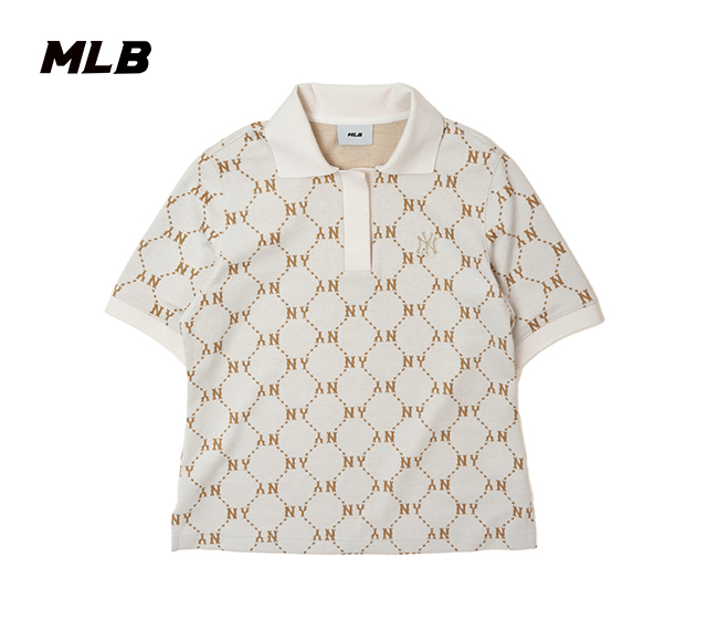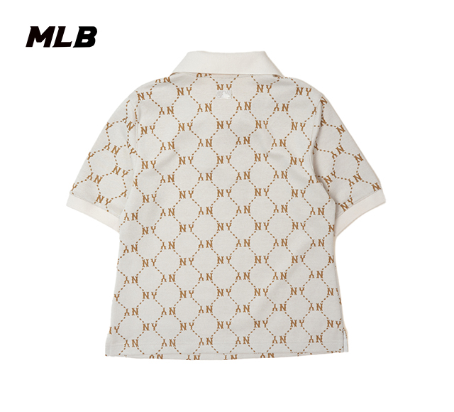 MLB女款25春夏新款满印老花立领短款POLO衫3FPQM0253
