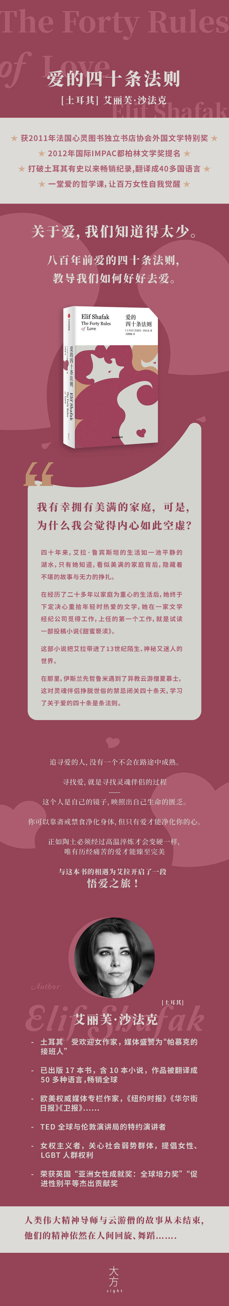 精妙,别致,浪漫,沙法克以充满激情的笔触将迷人的传说和现代人的生活地编织在一起。