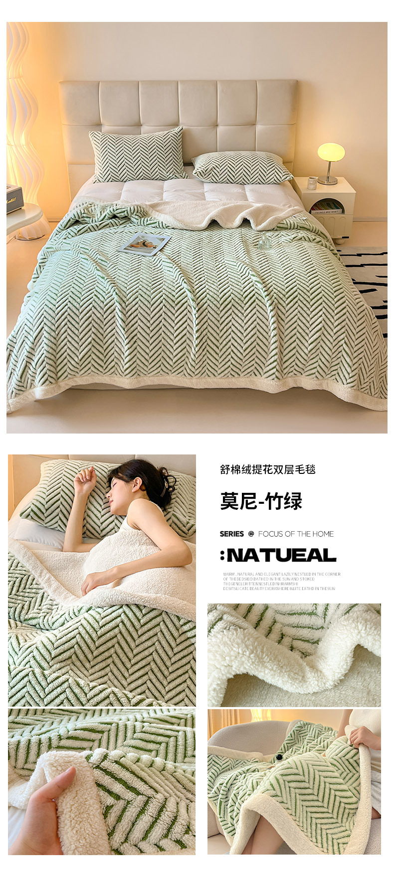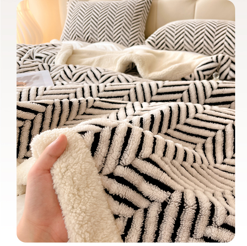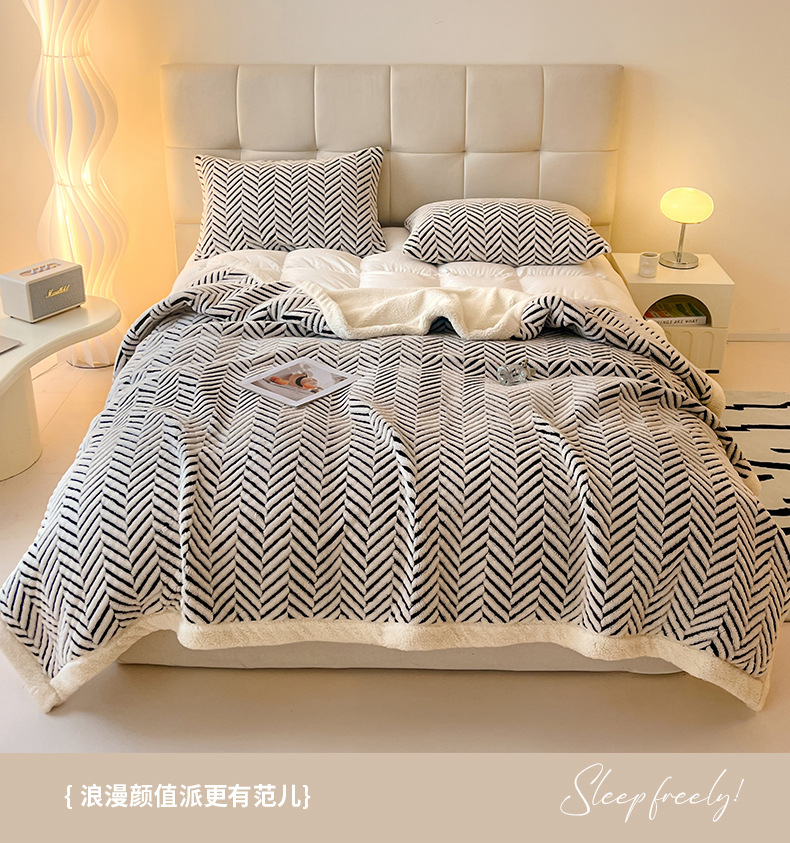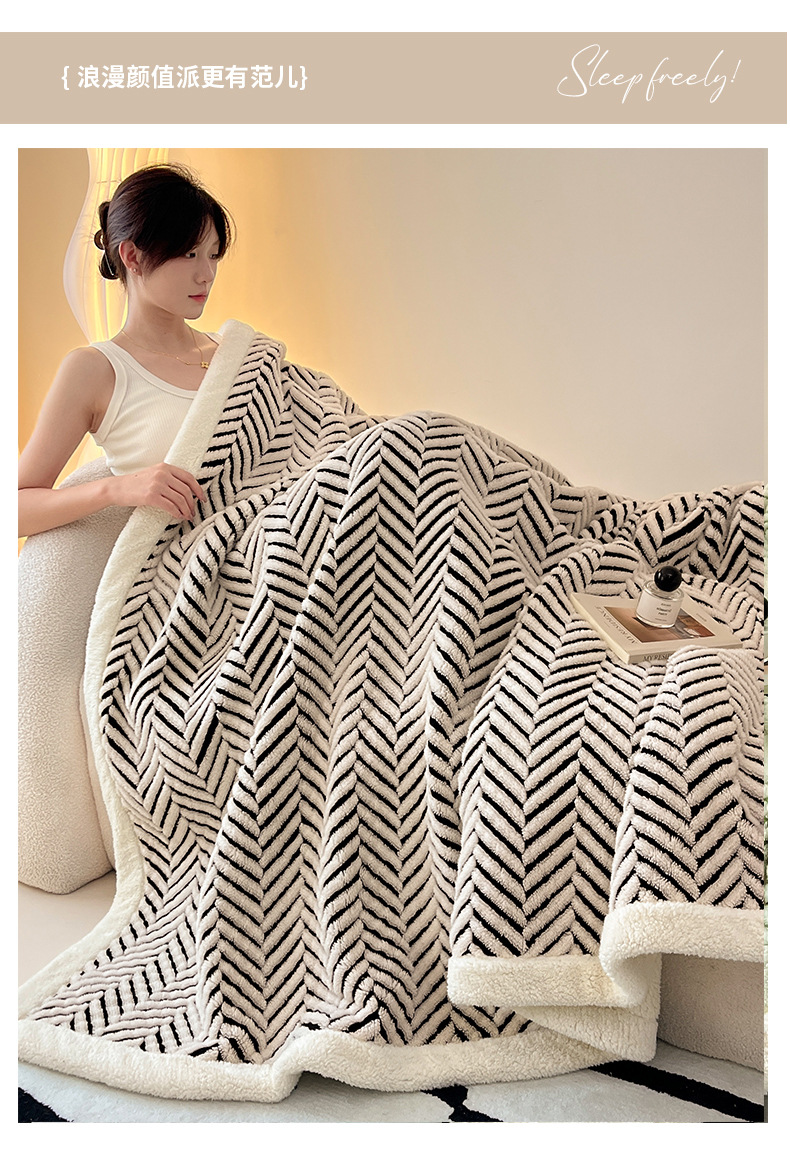 舒棉绒提花双层毛毯-莫尼-外贸新品沙发午休小毯子车载多功能盖毯
