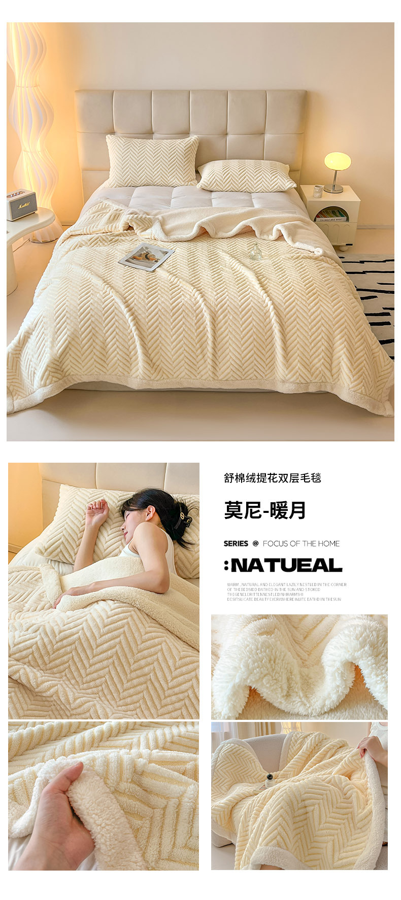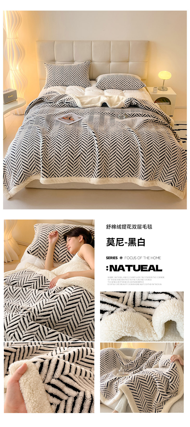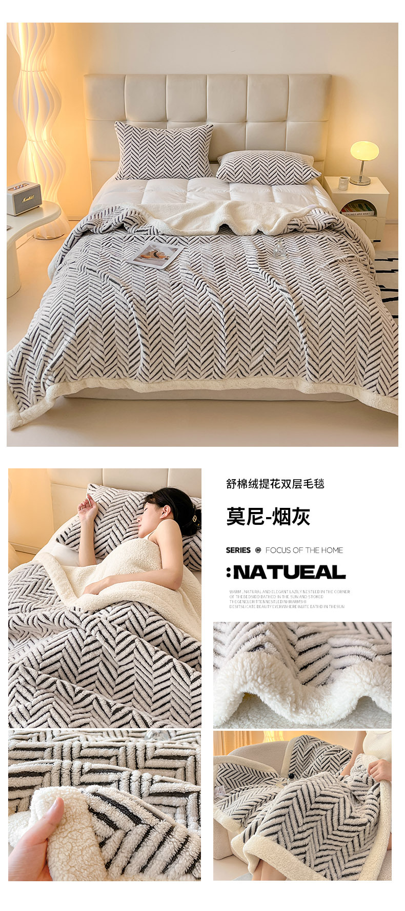 舒棉绒提花双层毛毯-莫尼-外贸新品沙发午休小毯子车载多功能盖毯