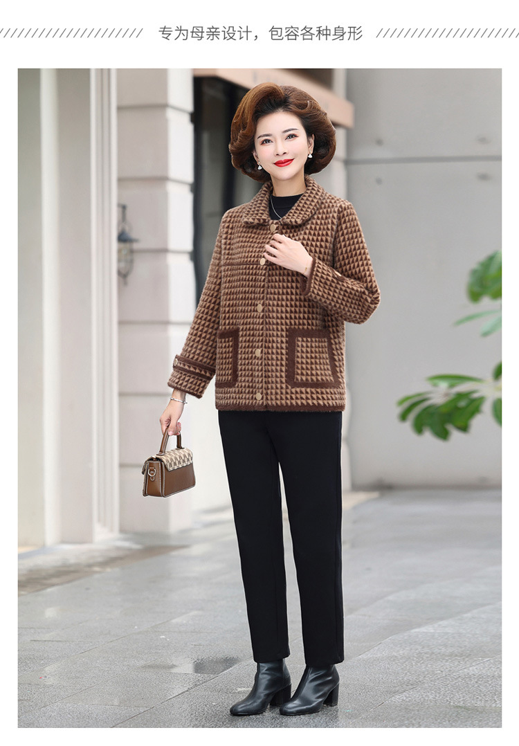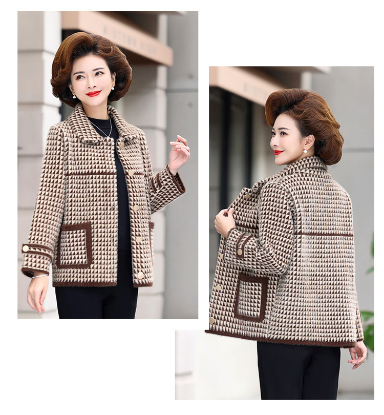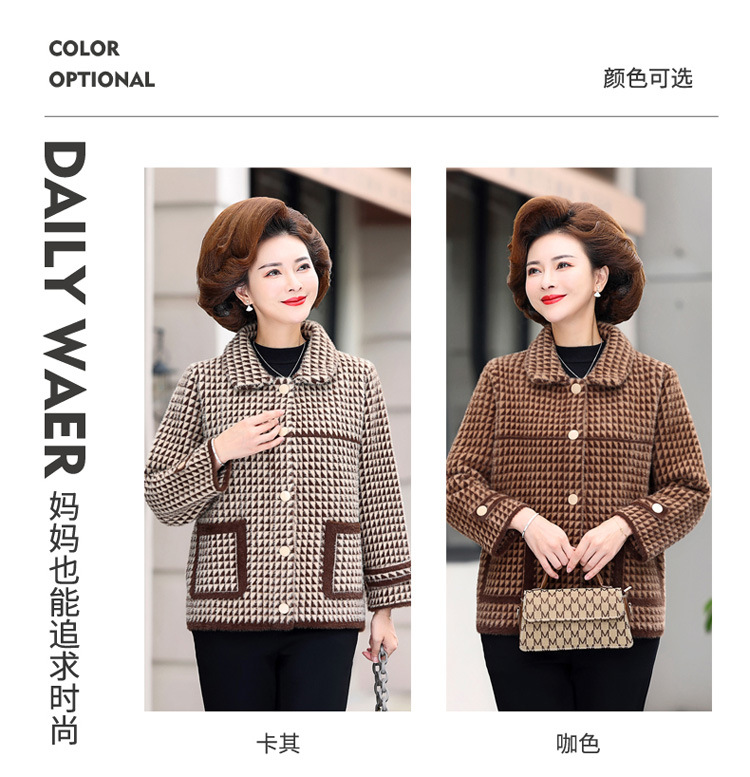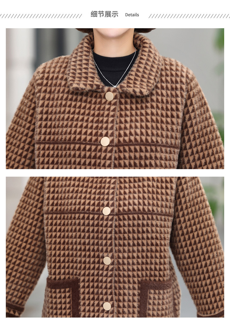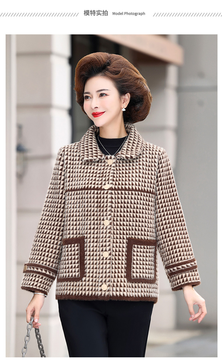 W504-82234-95-168中年妈妈秋装洋气仿水貂绒毛呢格子外套50岁中老年女冬季长袖大衣