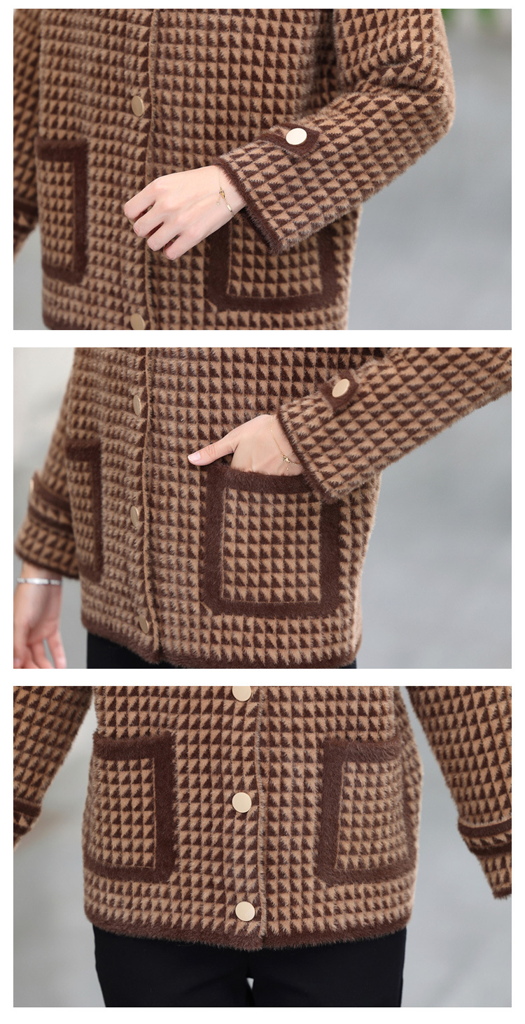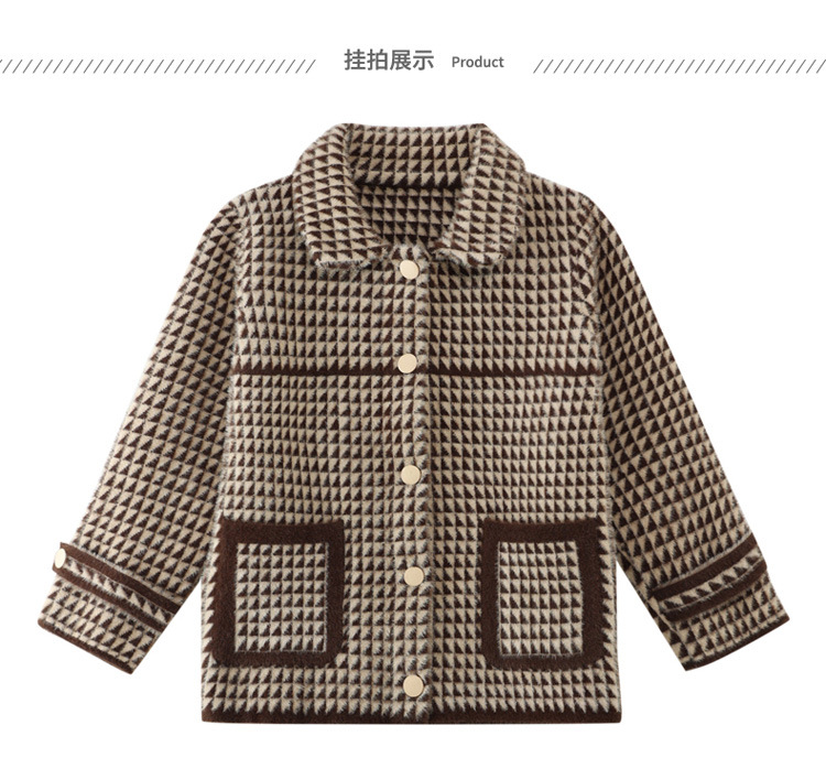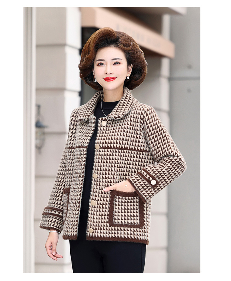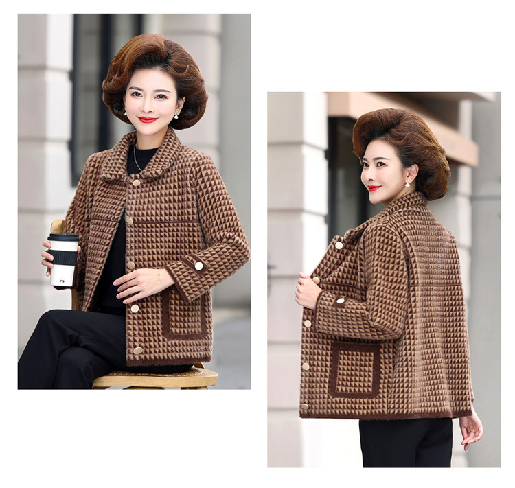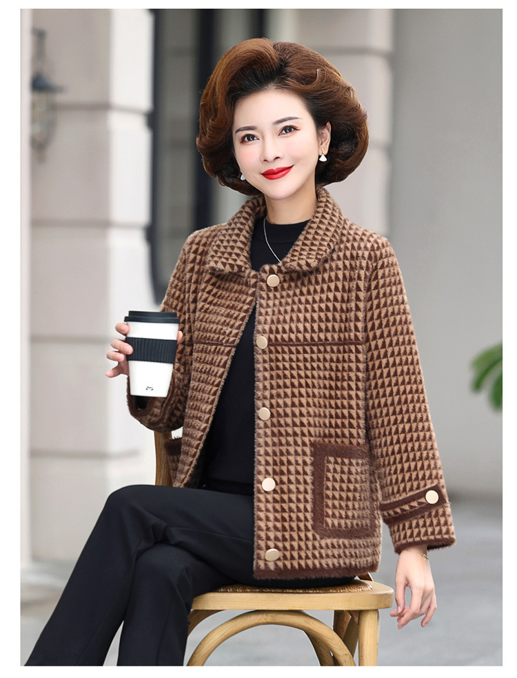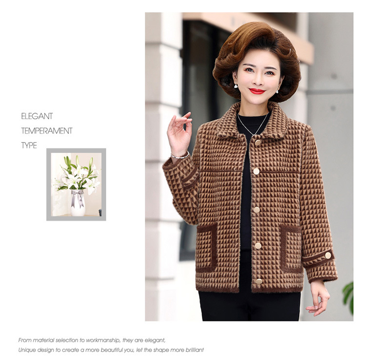 W504-82234-95-168中年妈妈秋装洋气仿水貂绒毛呢格子外套50岁中老年女冬季长袖大衣