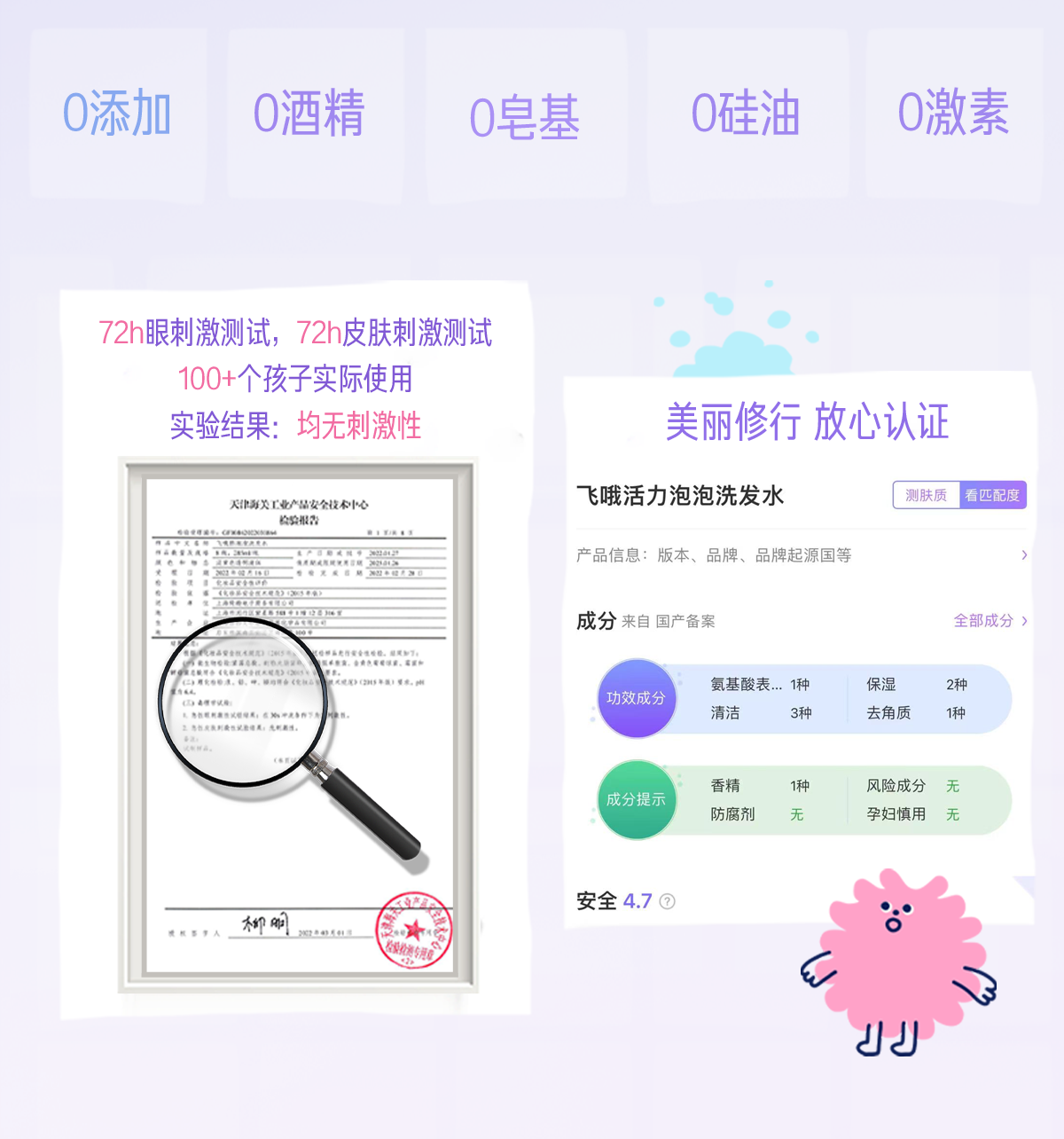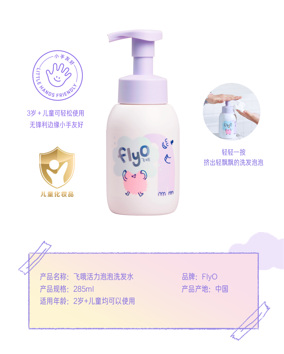 FlyO飞哦活力泡泡儿童洗发水2-10岁男童女孩宝宝专用洗发露285ml