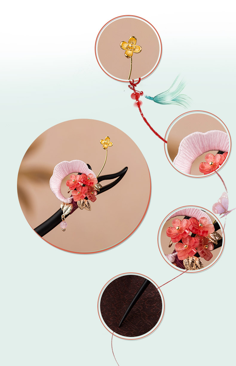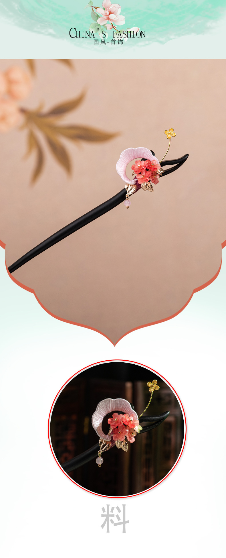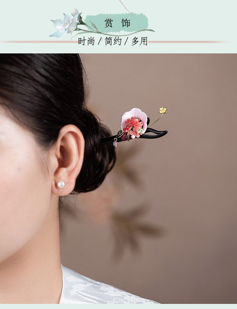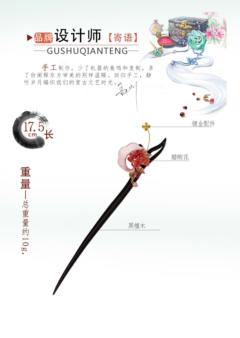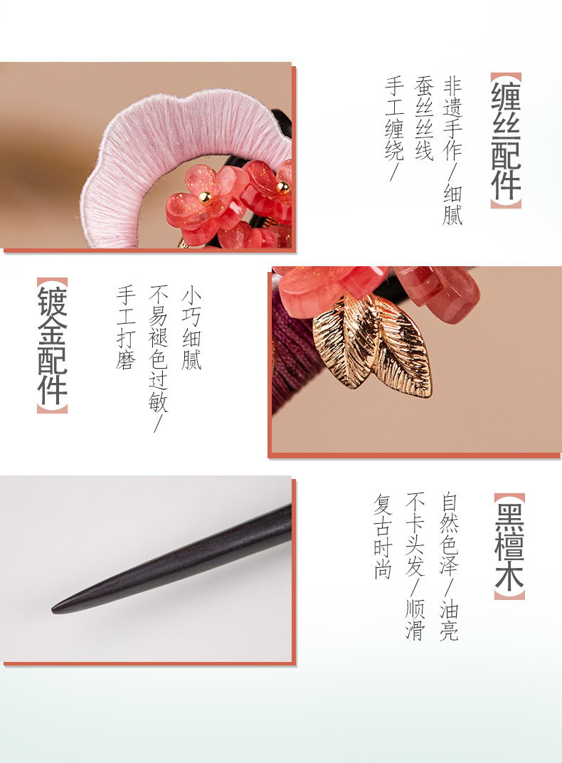 JGL国风手工缠花成品发簪设计款黑檀木古风簪子简约日常送闺蜜小簪子