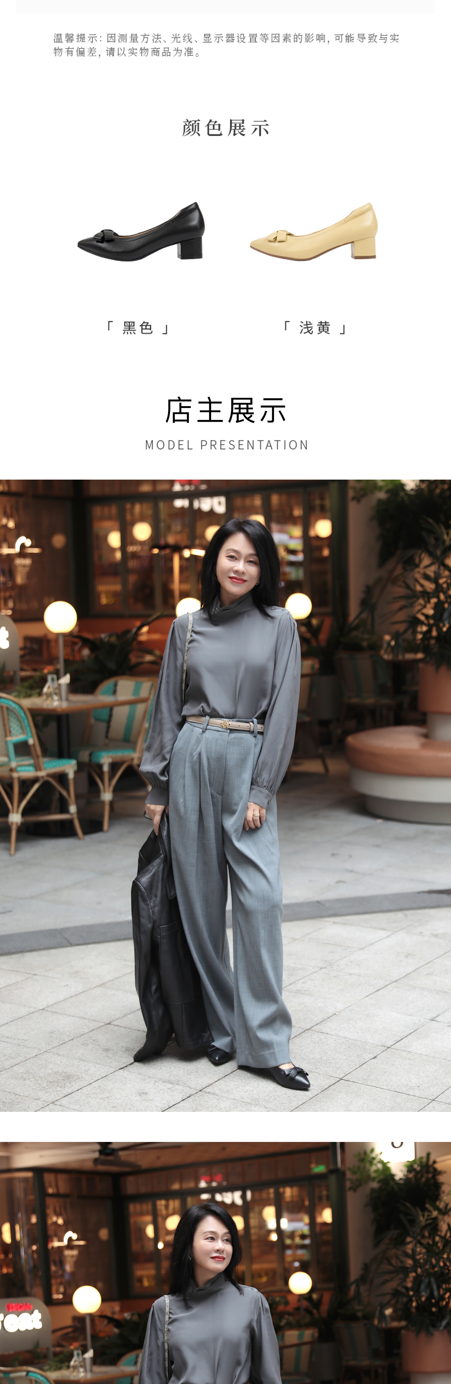温柔气质 | ARCH CONTACT安启美奈·粗跟尖头单鞋女羊皮通勤穿搭 商品图3