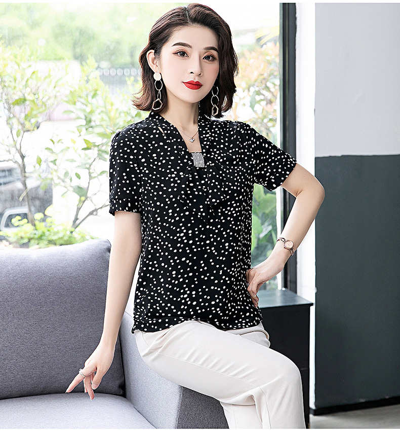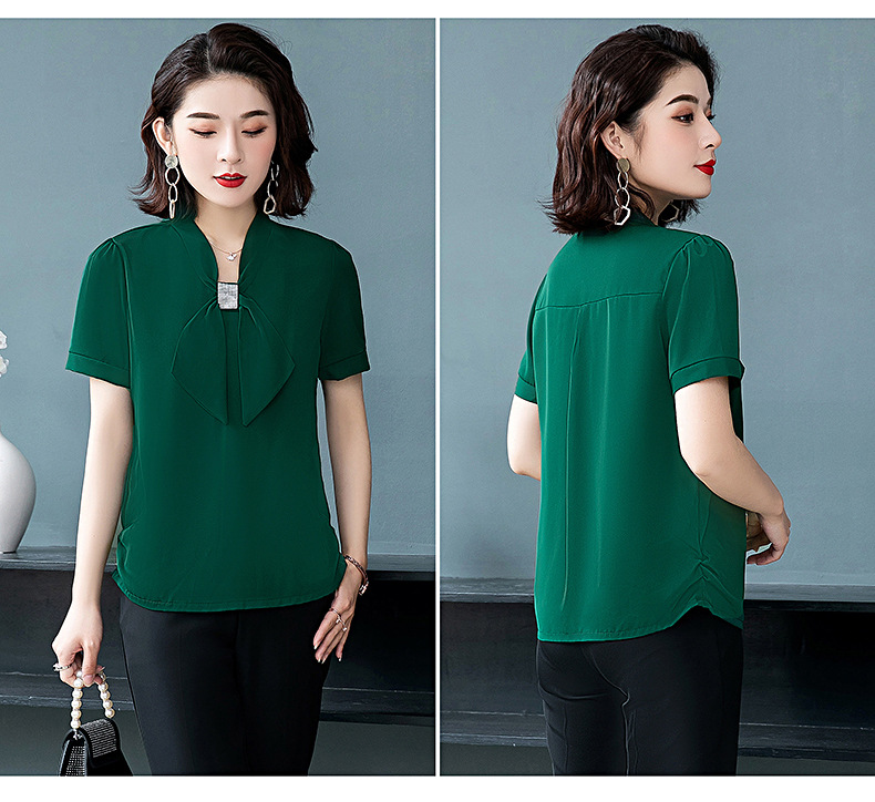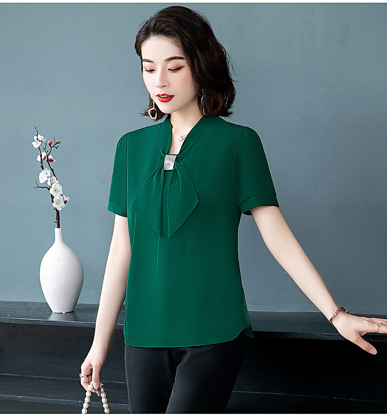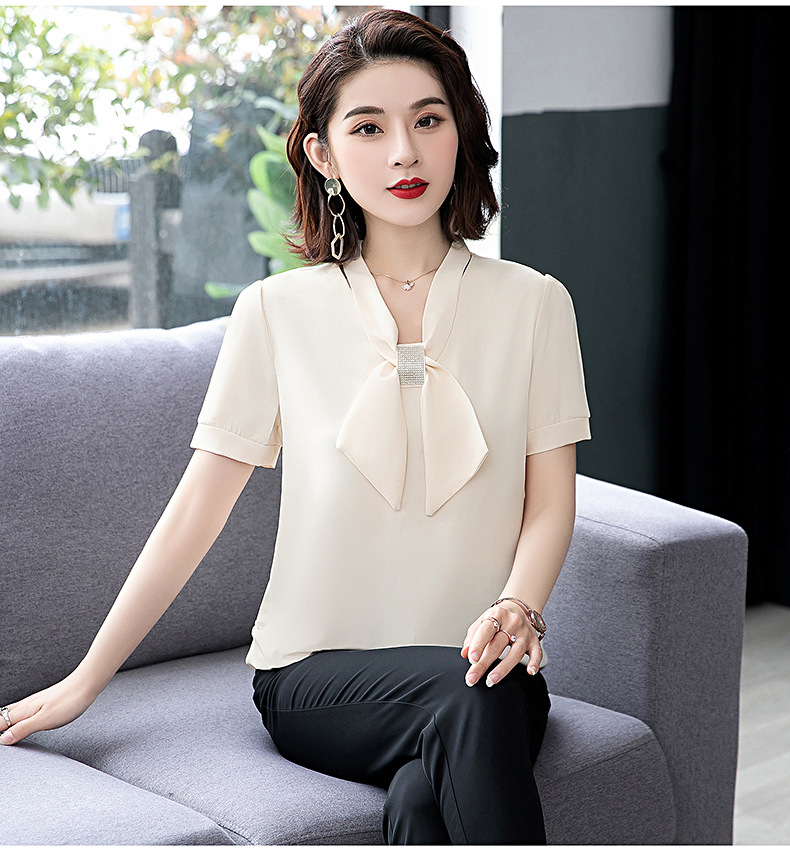 MQ-3026-2夏季薄款气质垂感短袖雪纺衬衫YY