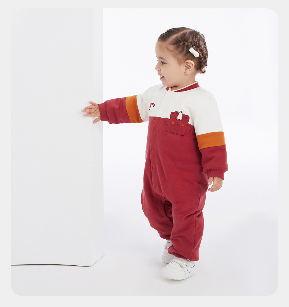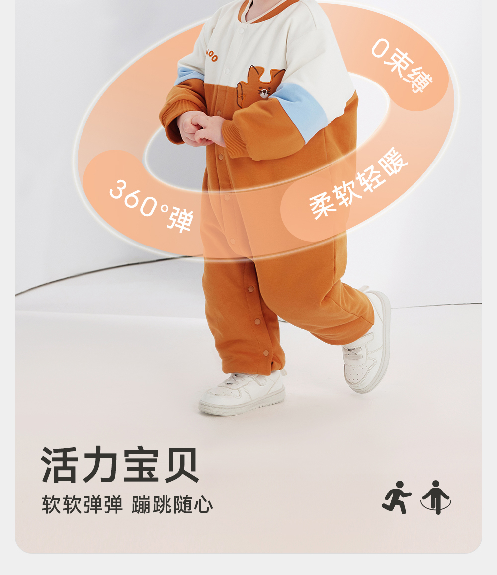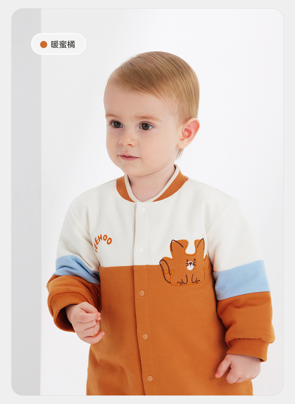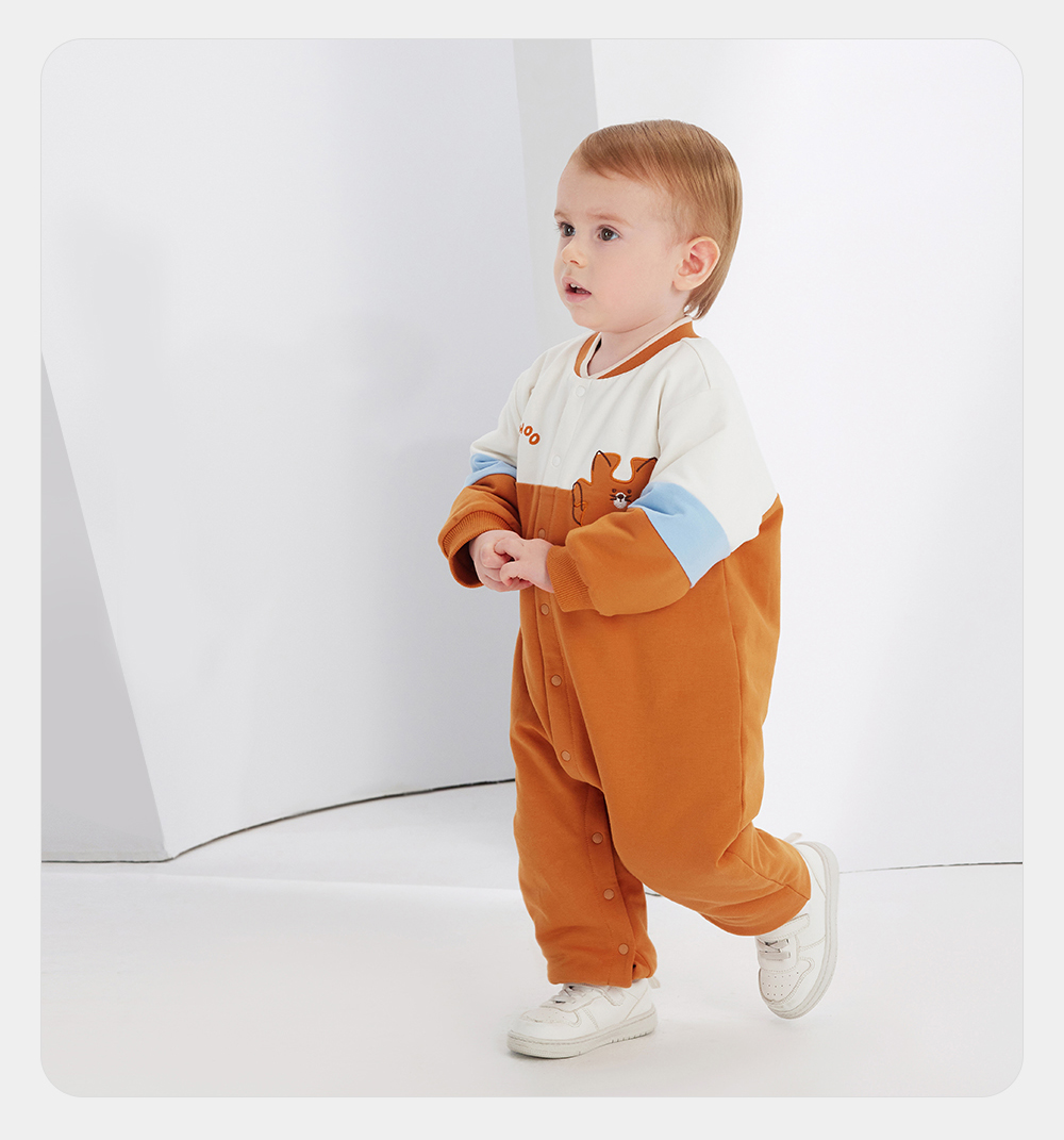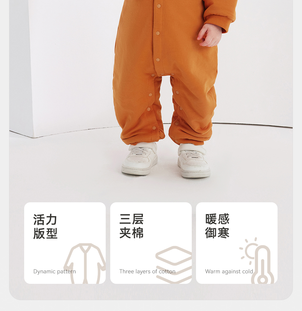 英氏宝宝连体衣长袖夹棉哈衣秋冬款保暖衣服
