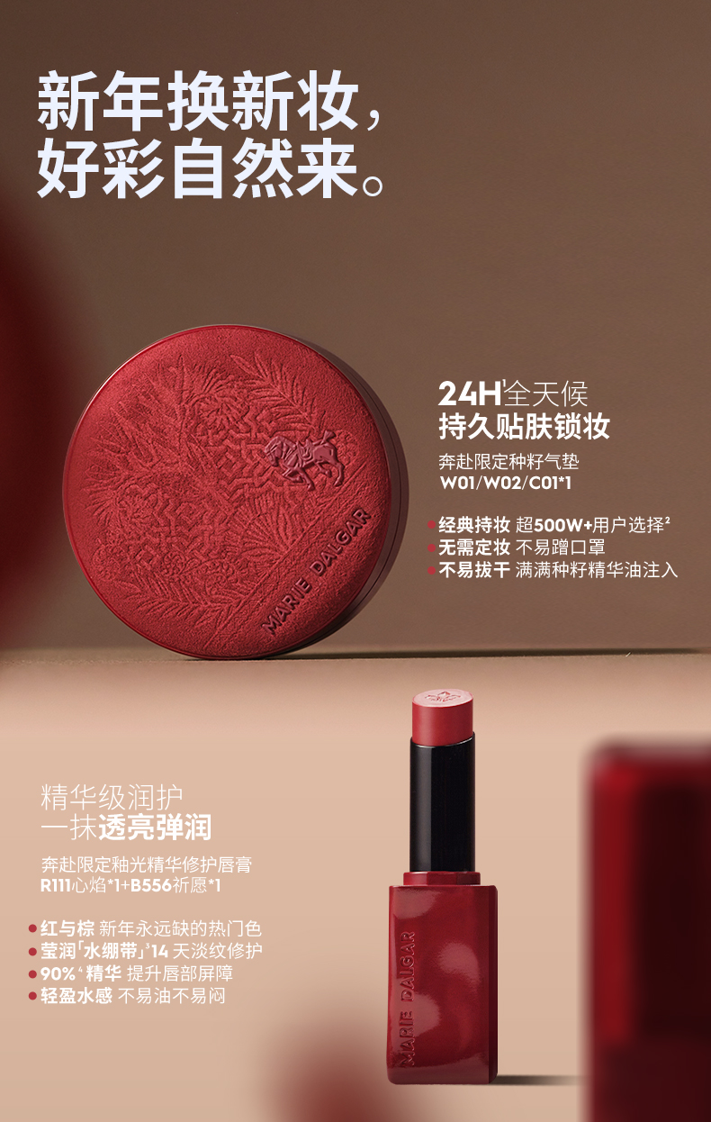 玛丽黛佳马年奔赴限定种籽气垫礼盒贴肤锁妆遮瑕持妆不易脱妆