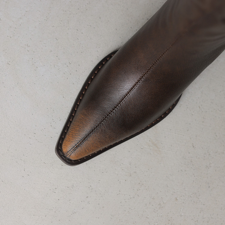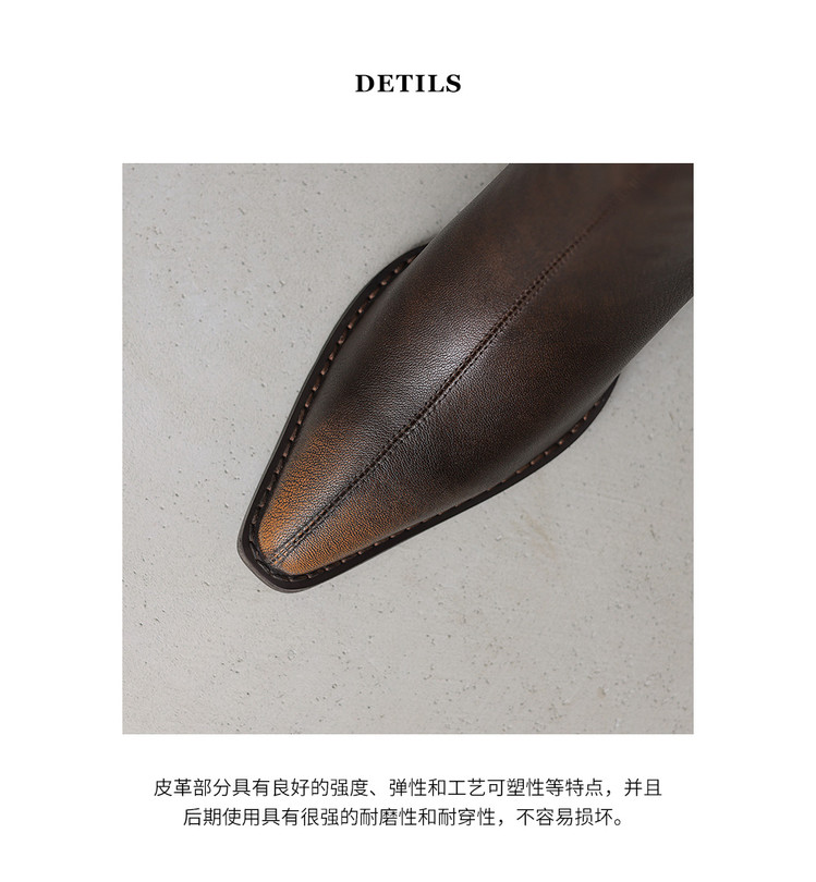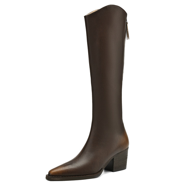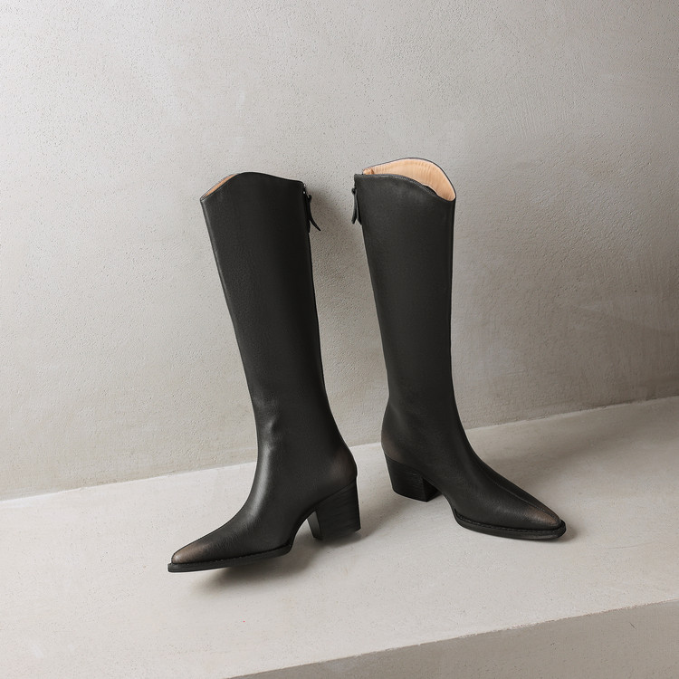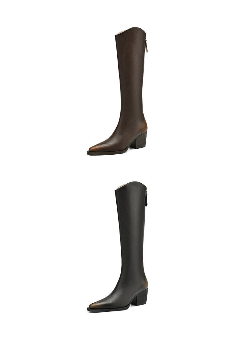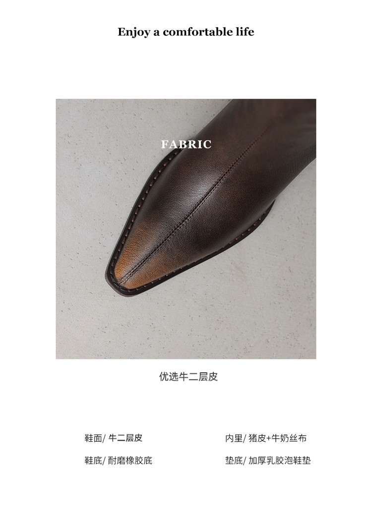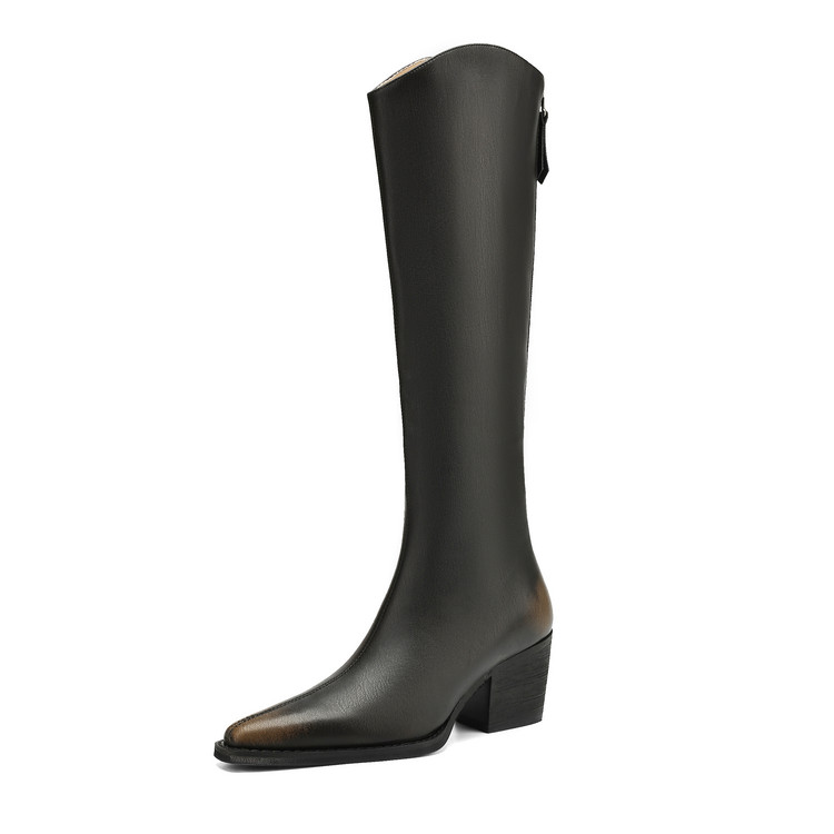 【预售7天】秋冬新款擦色尖头复古V口骑士靴高跟鞋加绒不过膝高筒长靴女KYD&10196