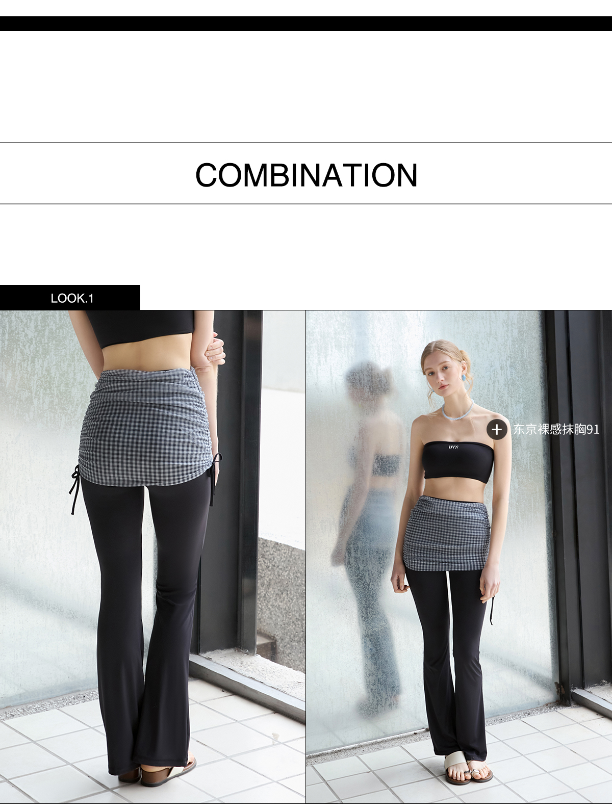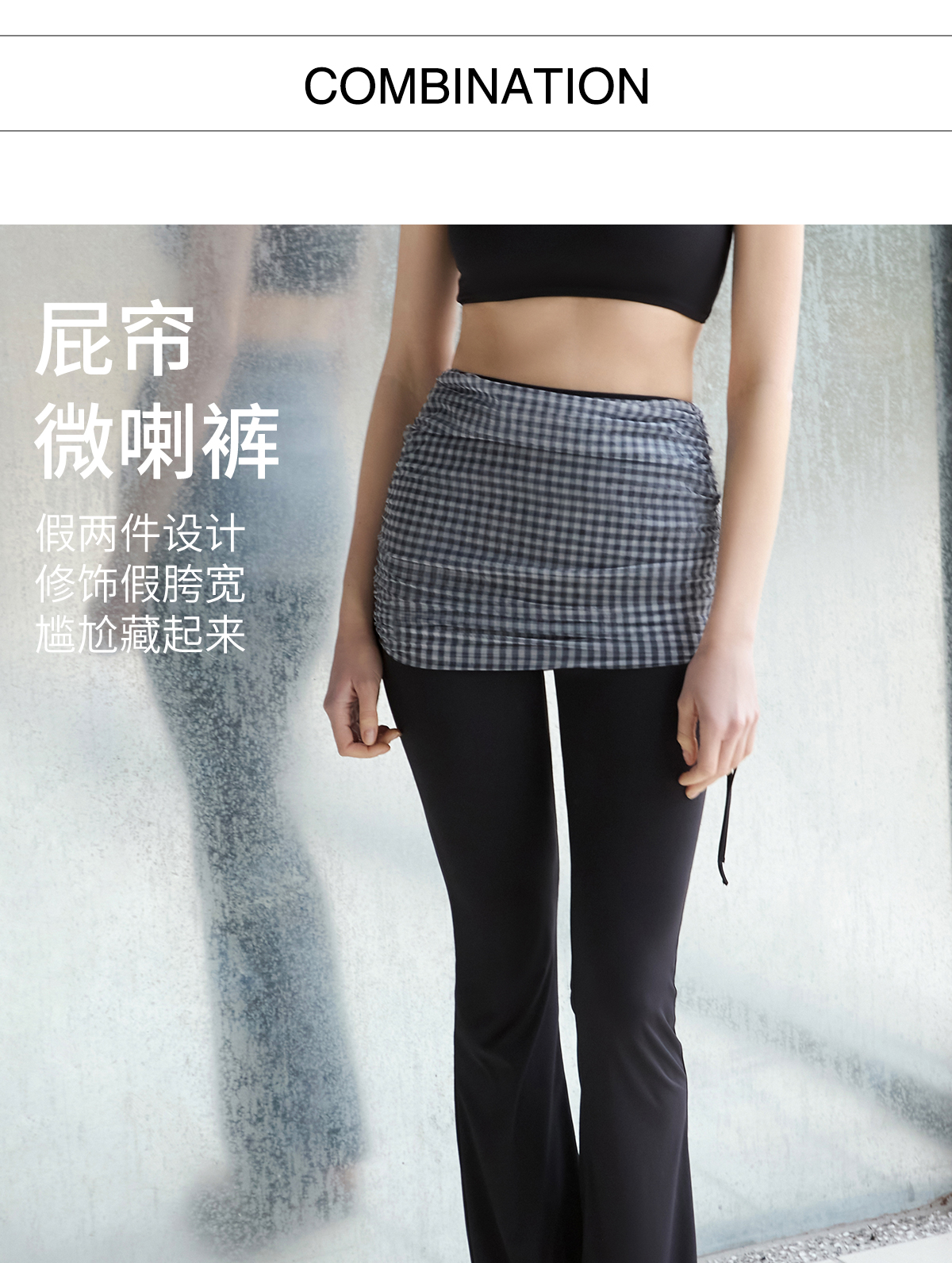 DIVINA BLU 马赛系列 迪唯纳格子网布喇叭裤M150(售后说明:收货15天内支持调换货)