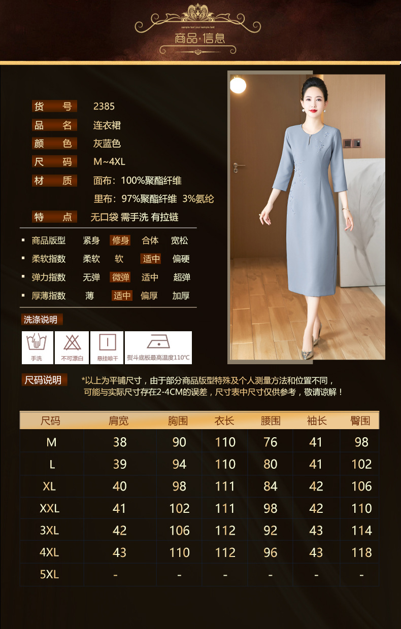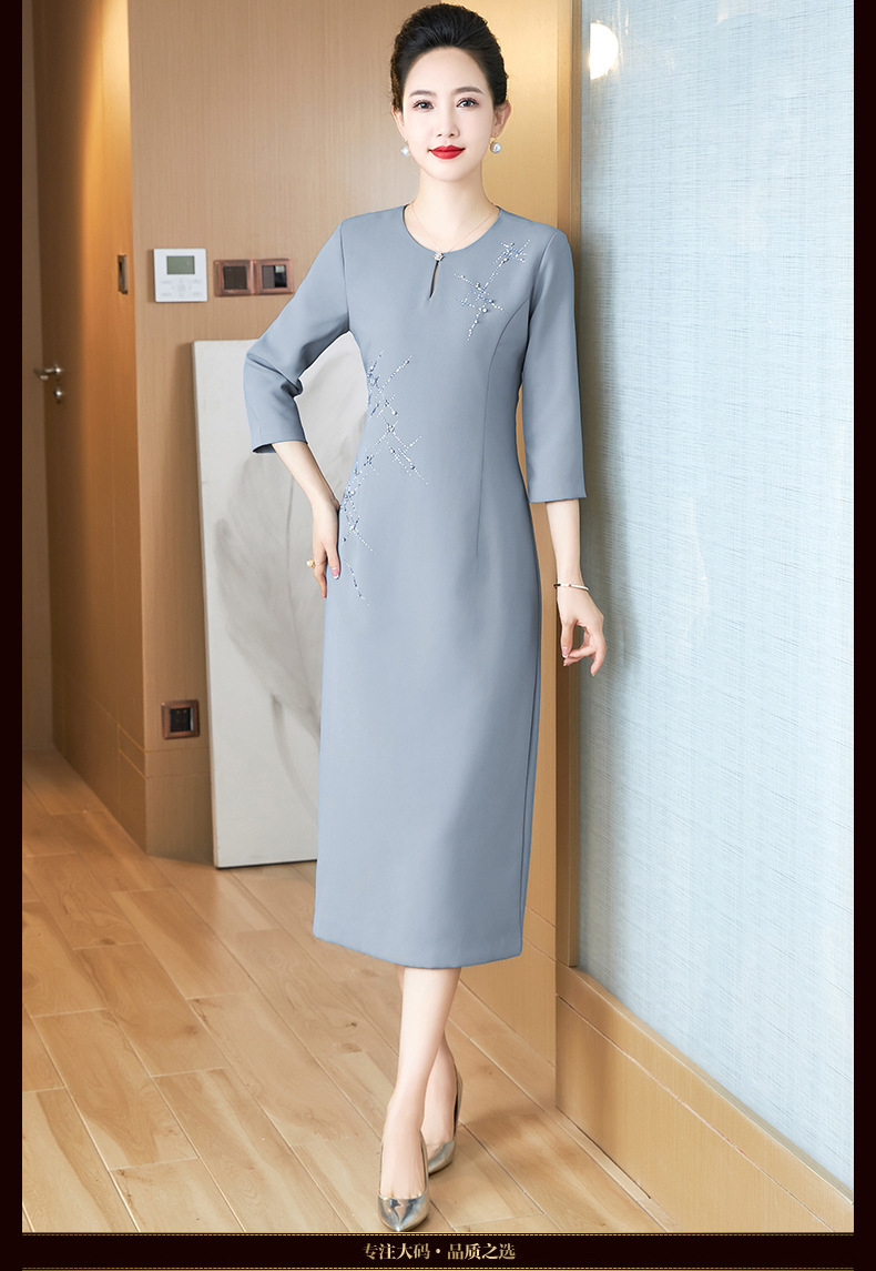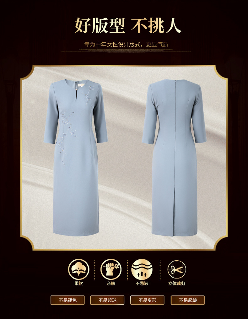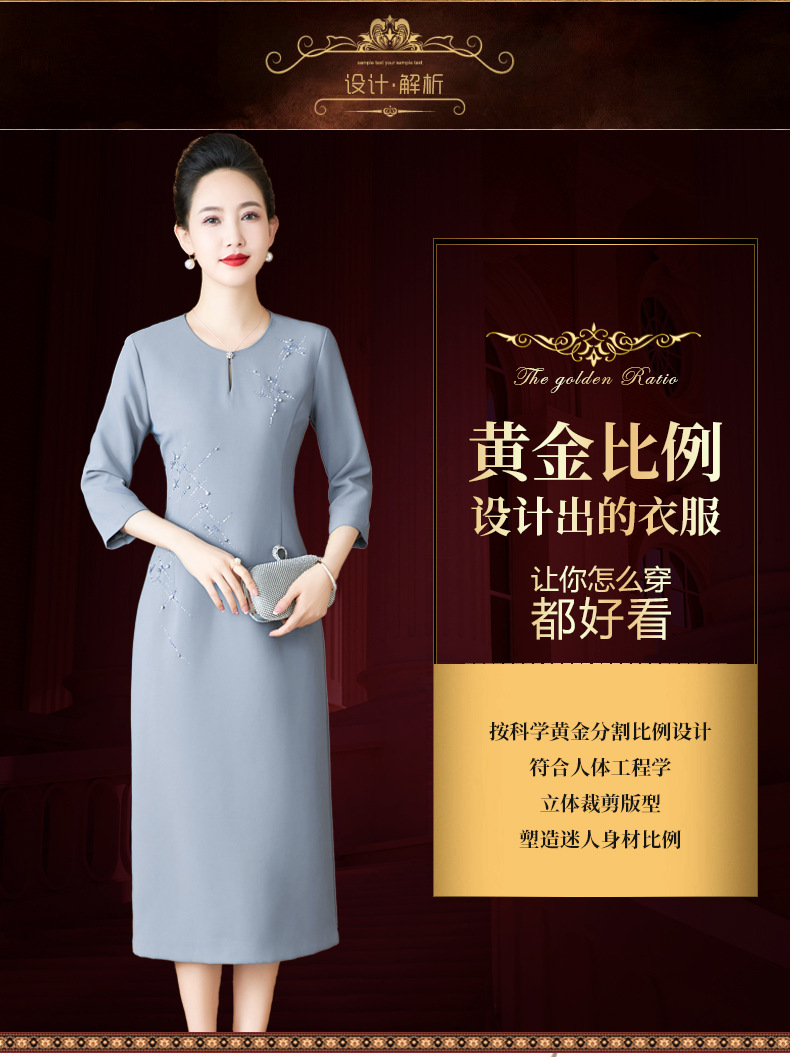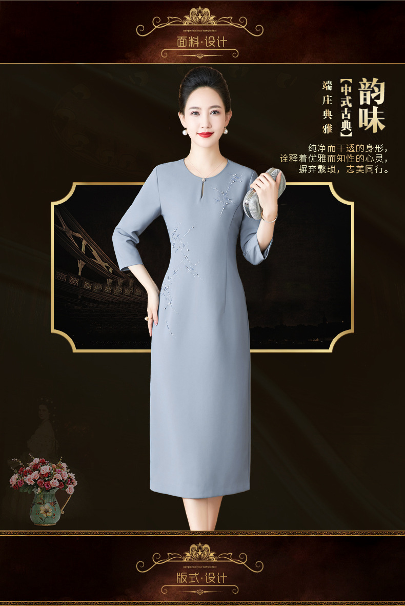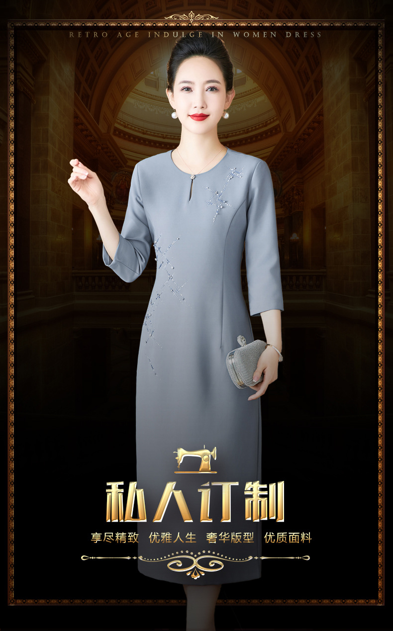 时尚简约妈妈装中老年,参加宴会晚礼服气质优雅风连衣裙LC-2385