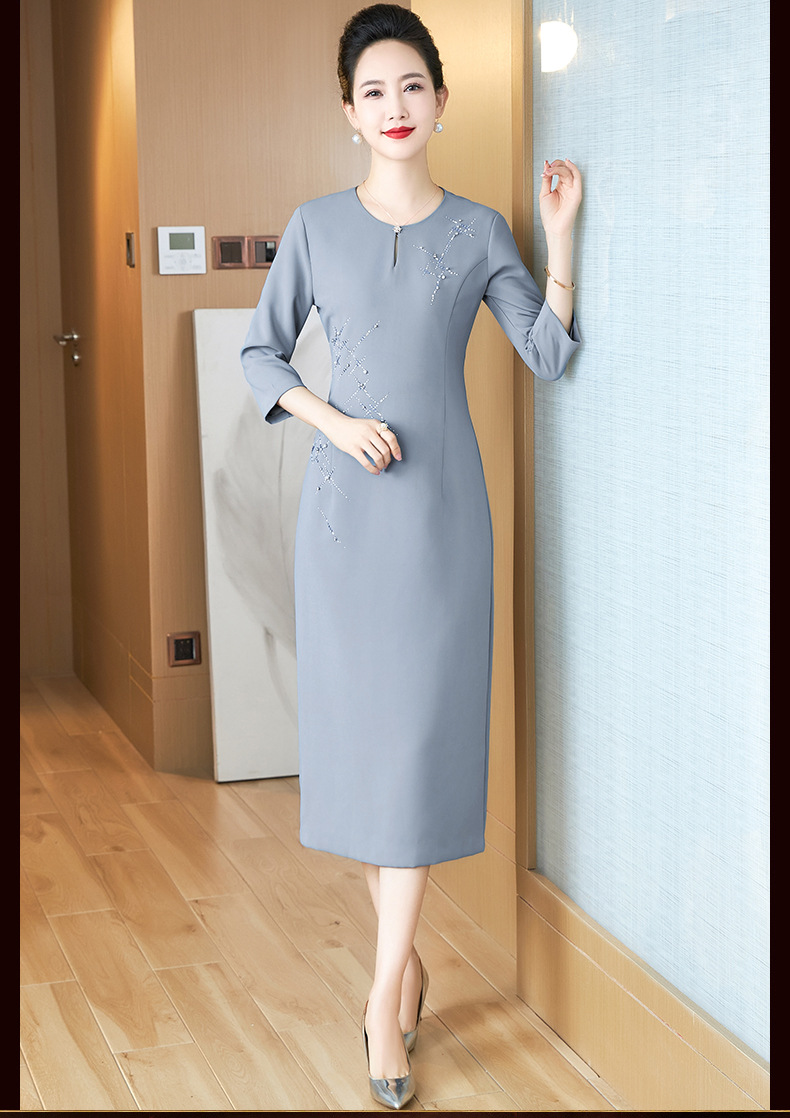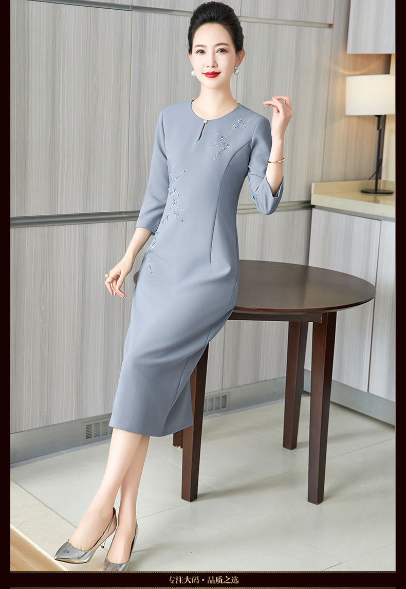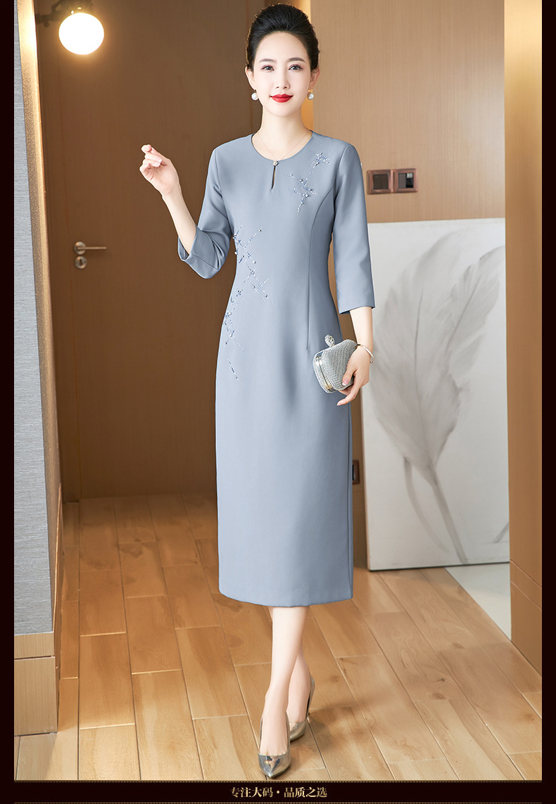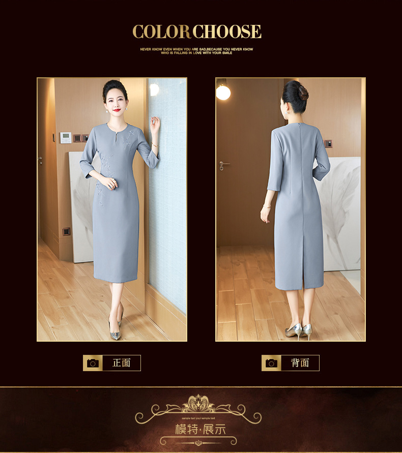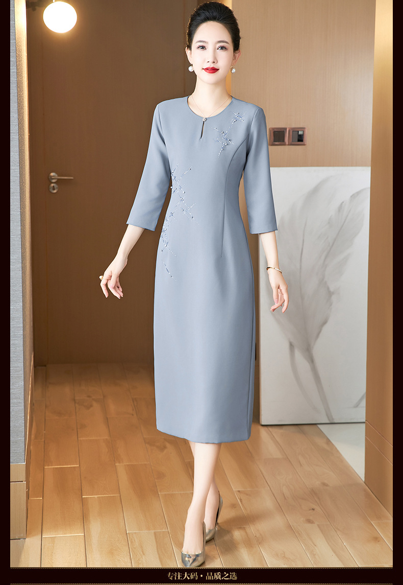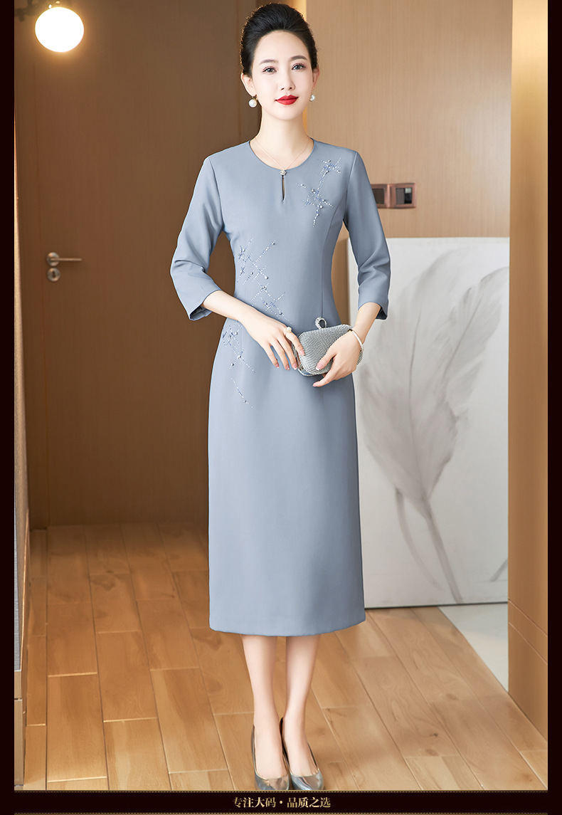 时尚简约妈妈装中老年,参加宴会晚礼服气质优雅风连衣裙LC-2385