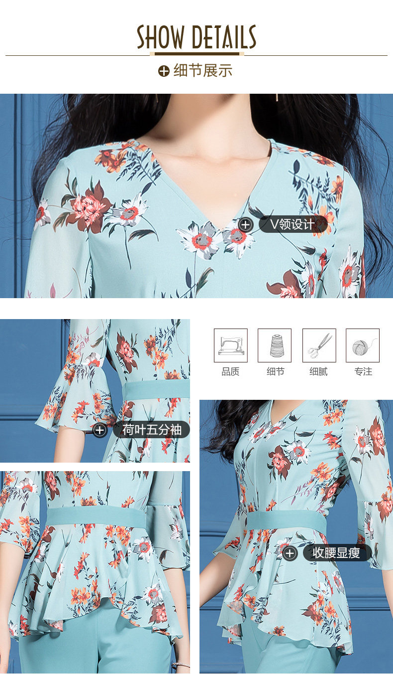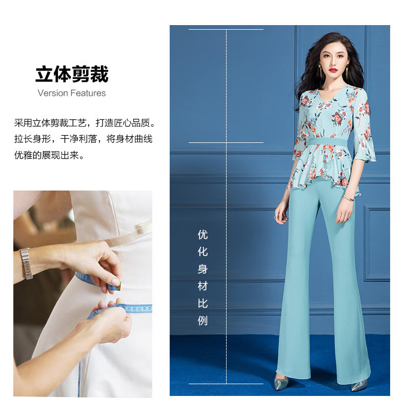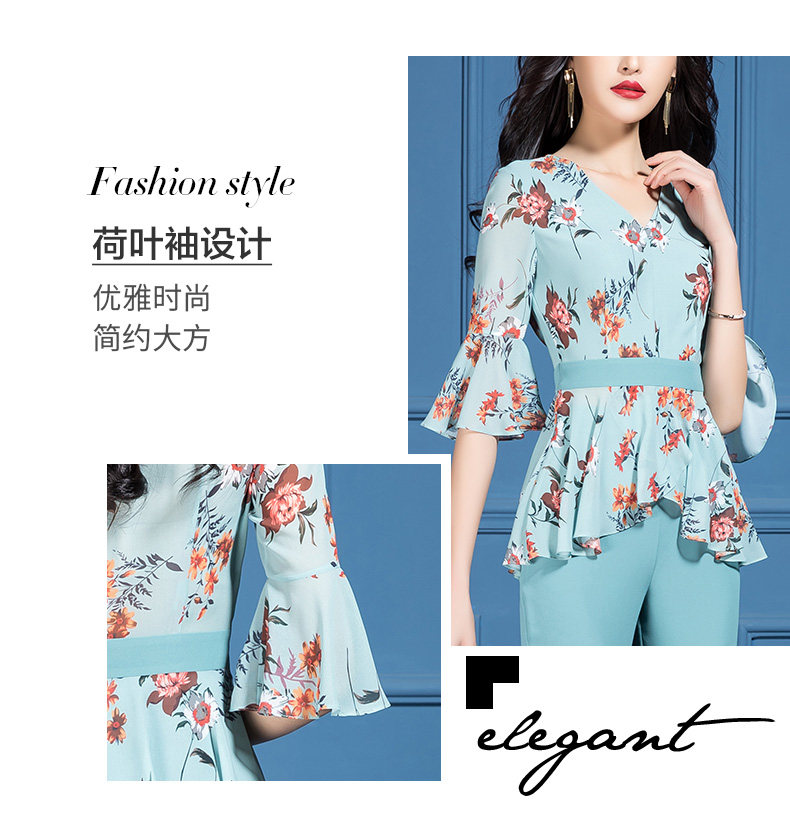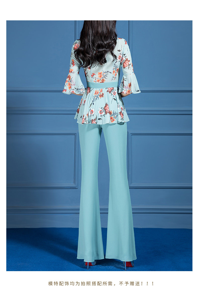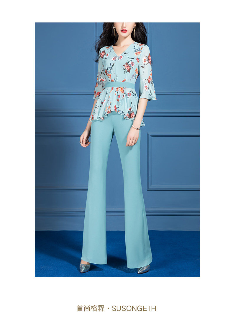 SSGS-L455时尚气质女神范印花雪纺衫喇叭裤两件套