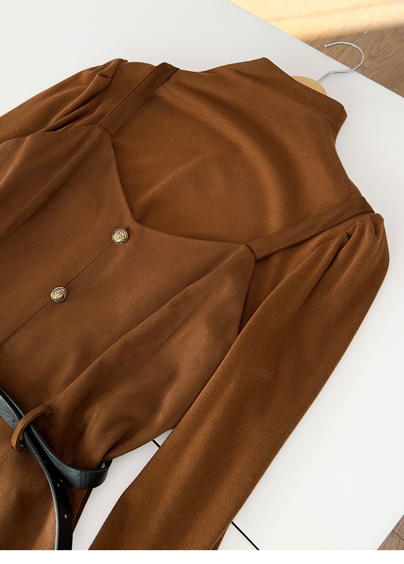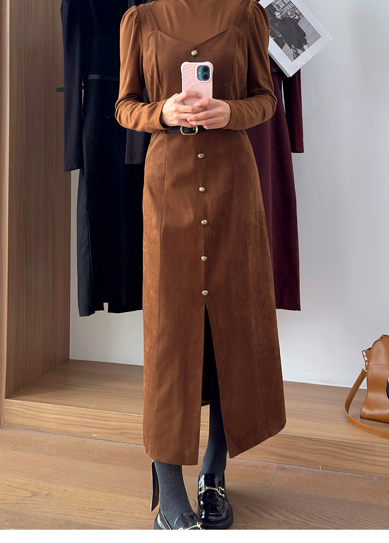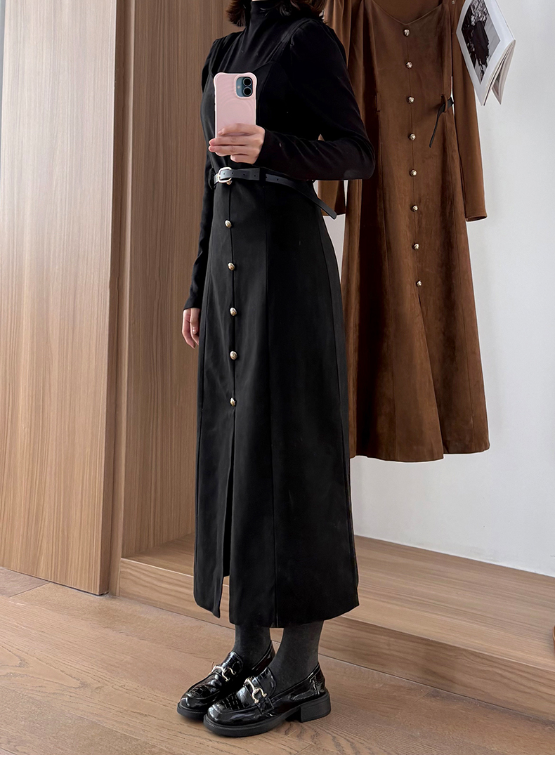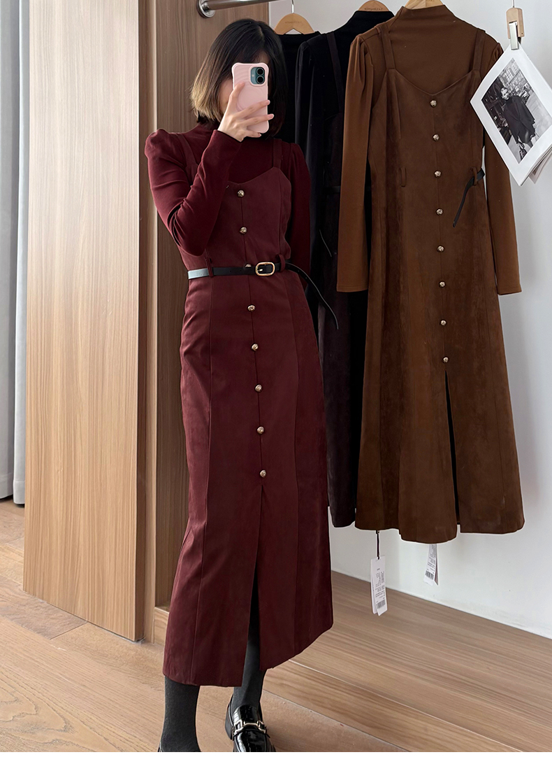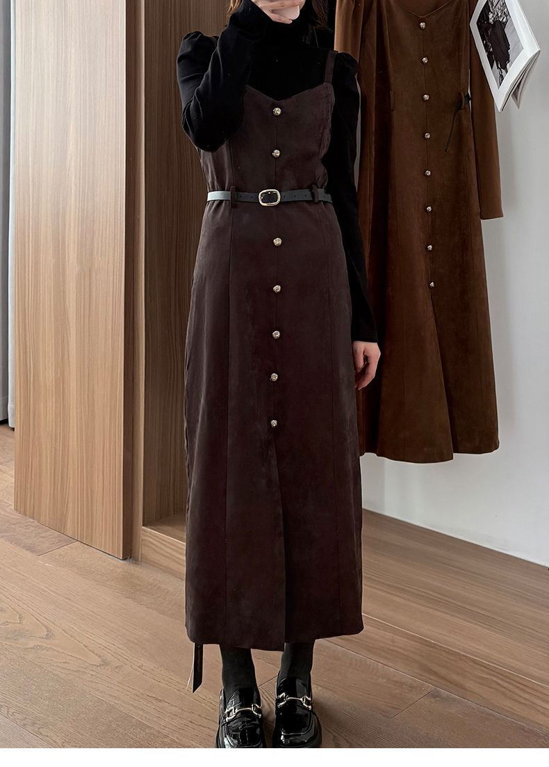 会员福利【复古时髦两件套】拉夏贝尔/La Chapelle半高领打底+复古吊带裙!高级感通勤时髦套装(含腰带)
