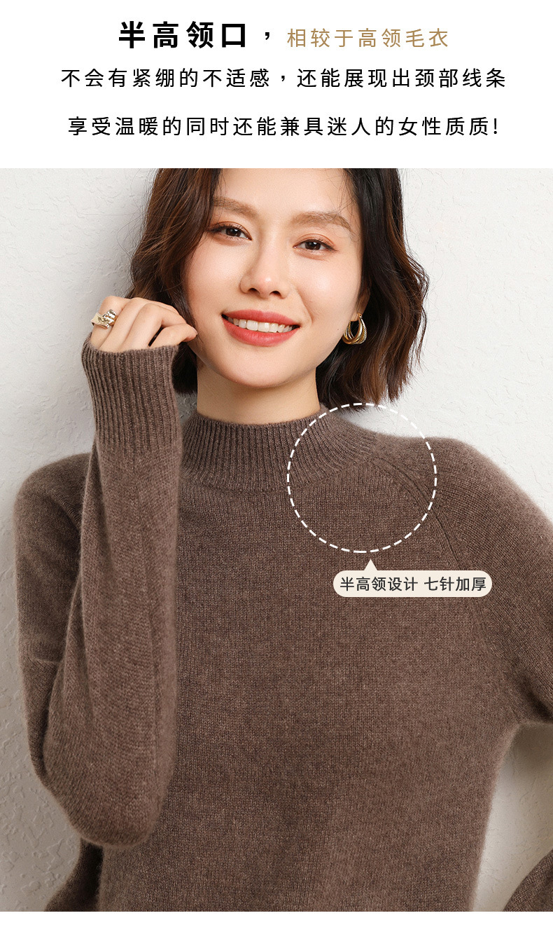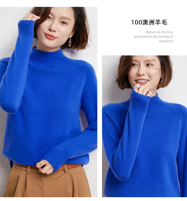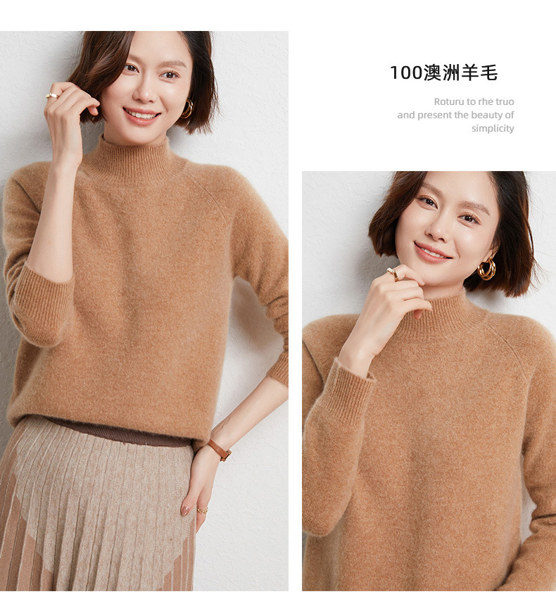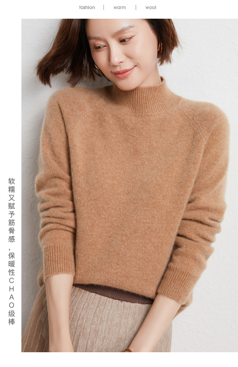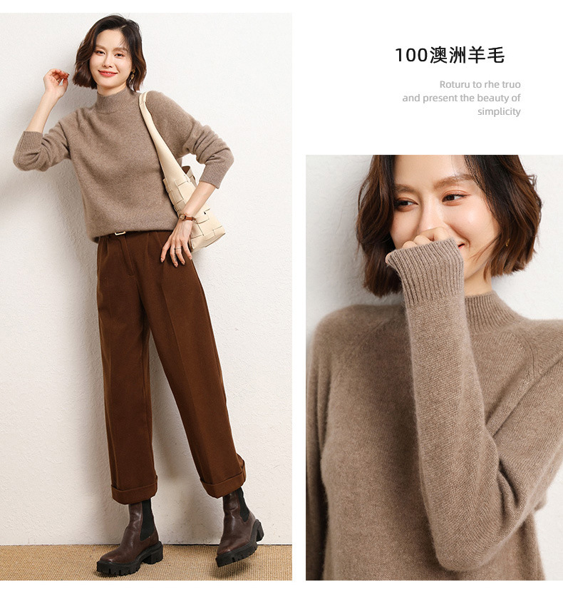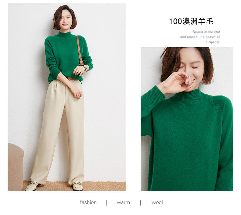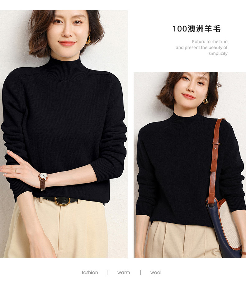 QHJY-JYBG22098女式羊毛衫纯色半高领打底衫毛衣加厚宽松套头羊毛针织衫冬季新款