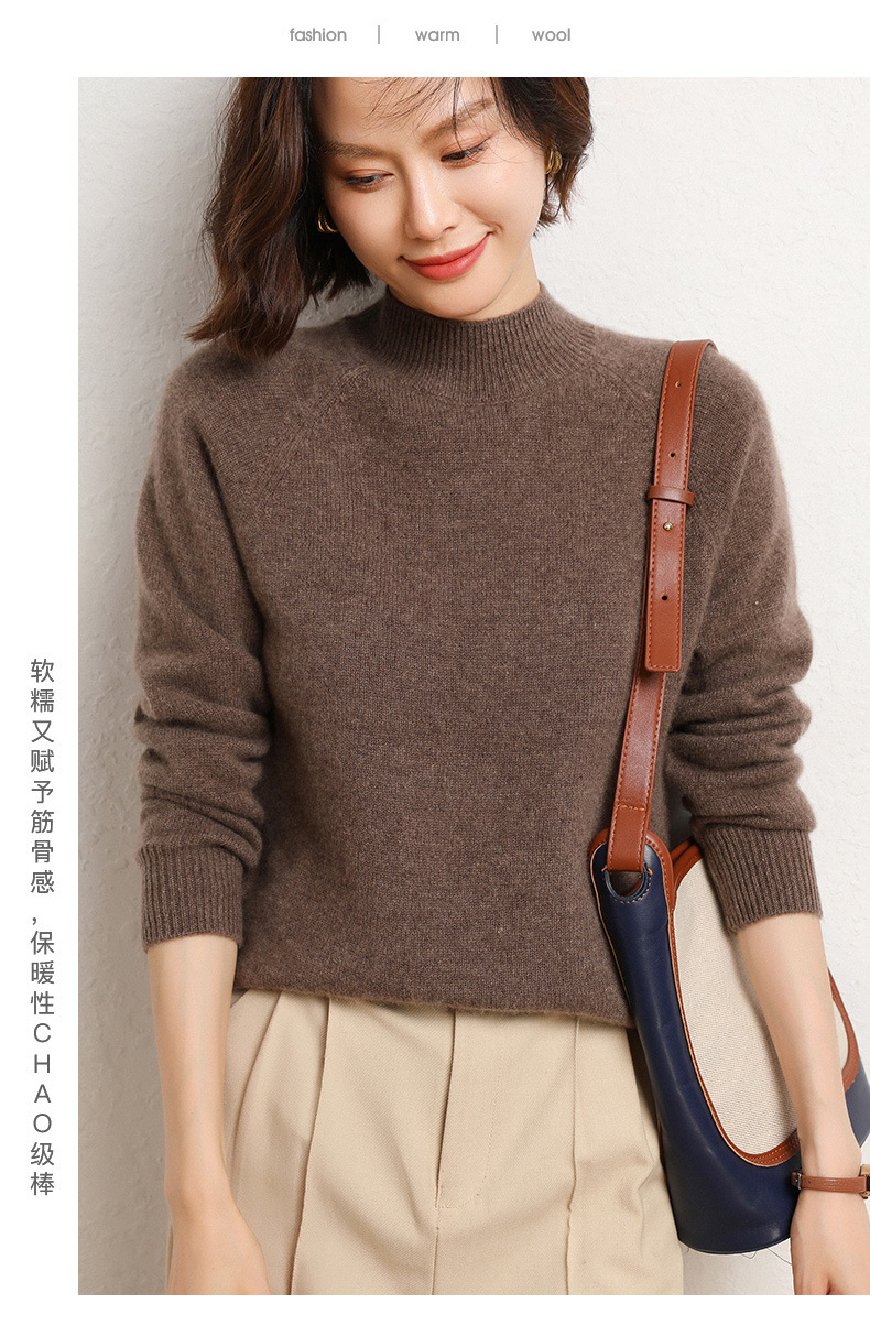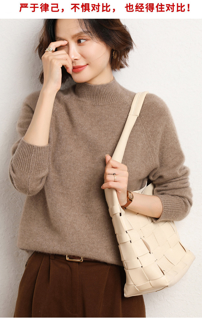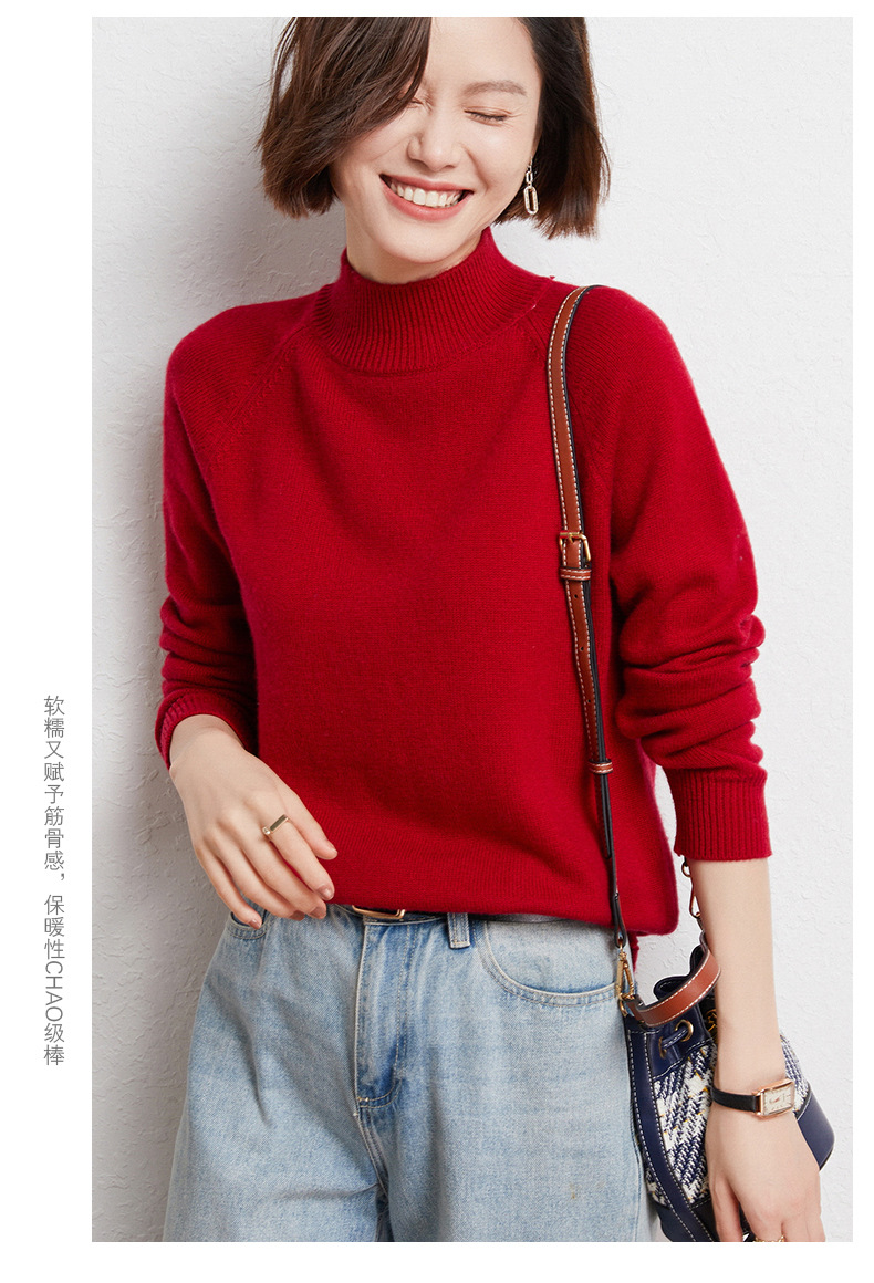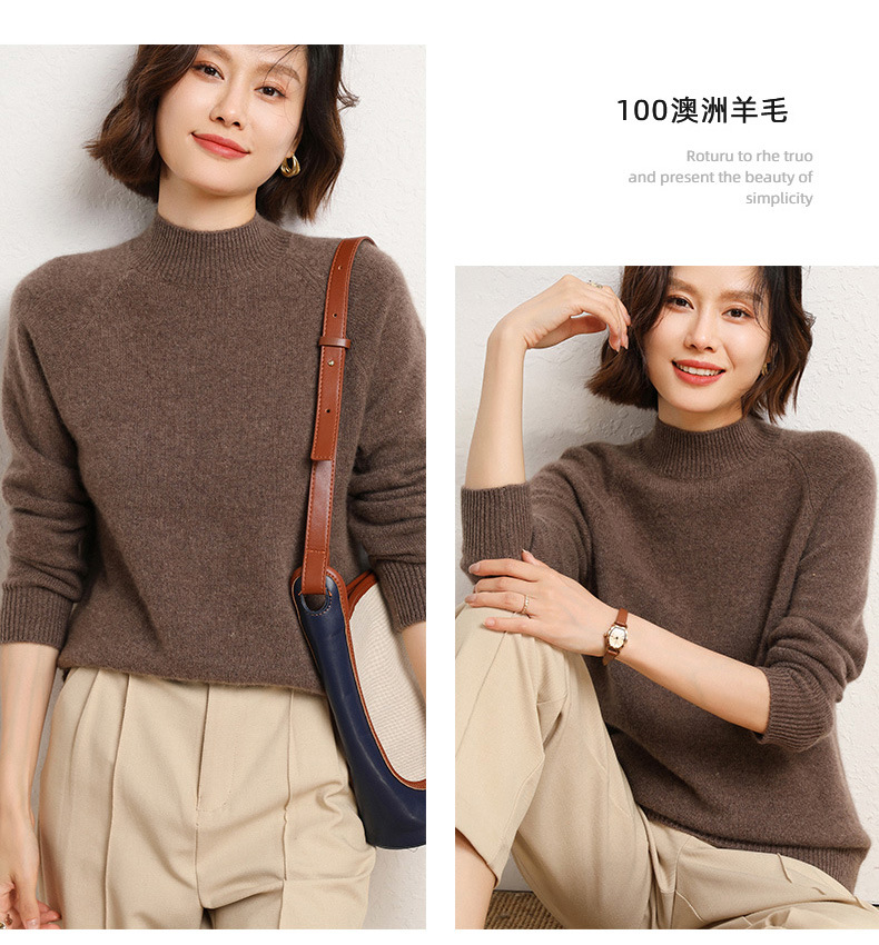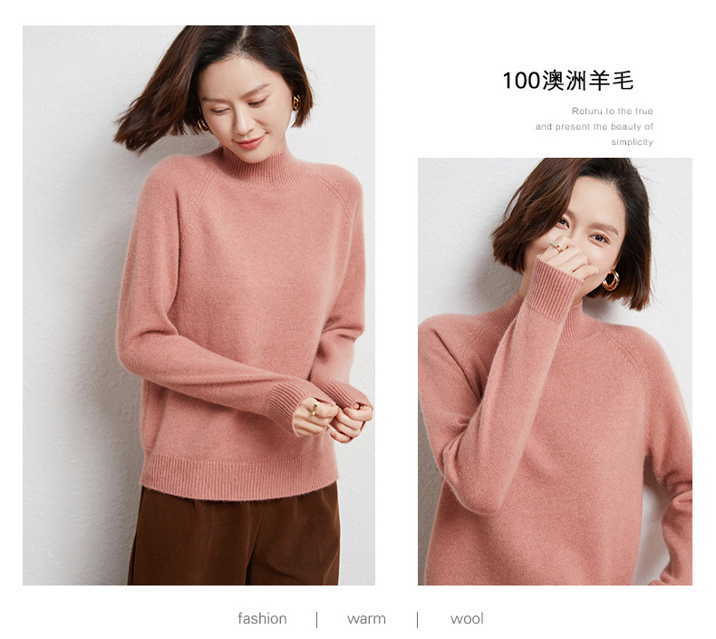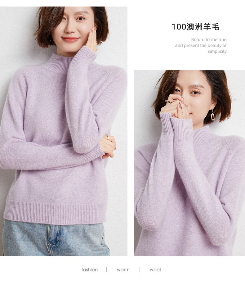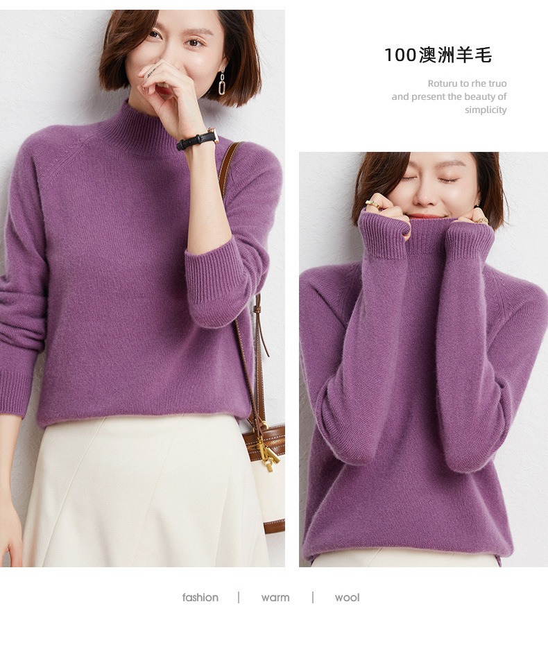 QHJY-JYBG22098女式羊毛衫纯色半高领打底衫毛衣加厚宽松套头羊毛针织衫冬季新款
