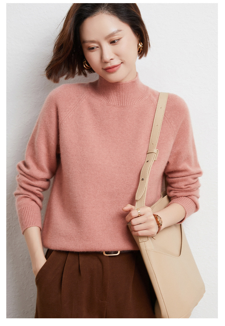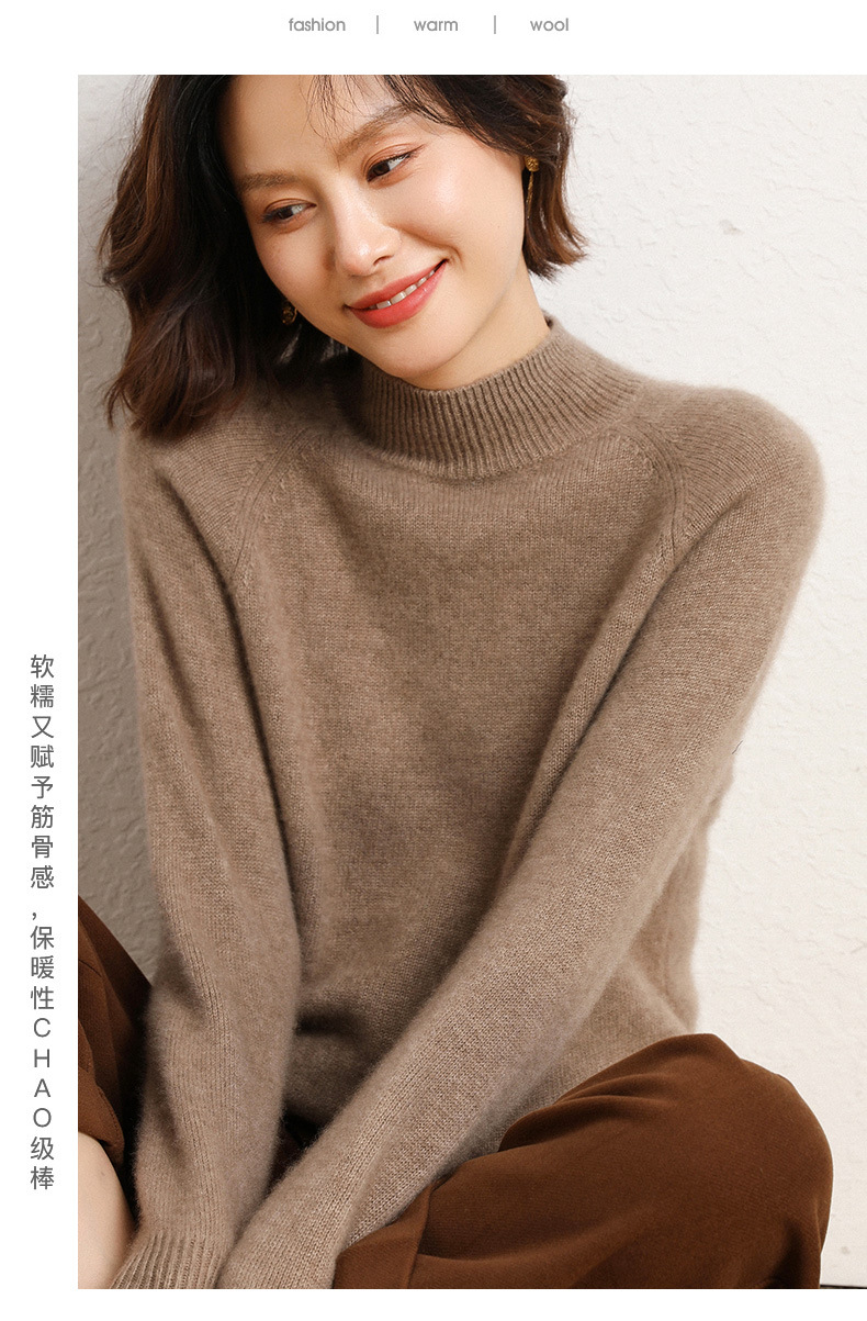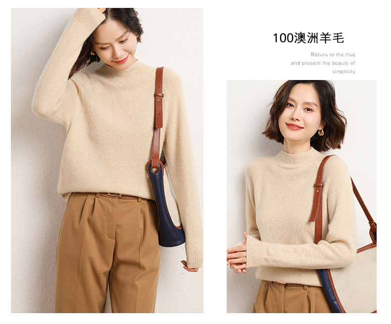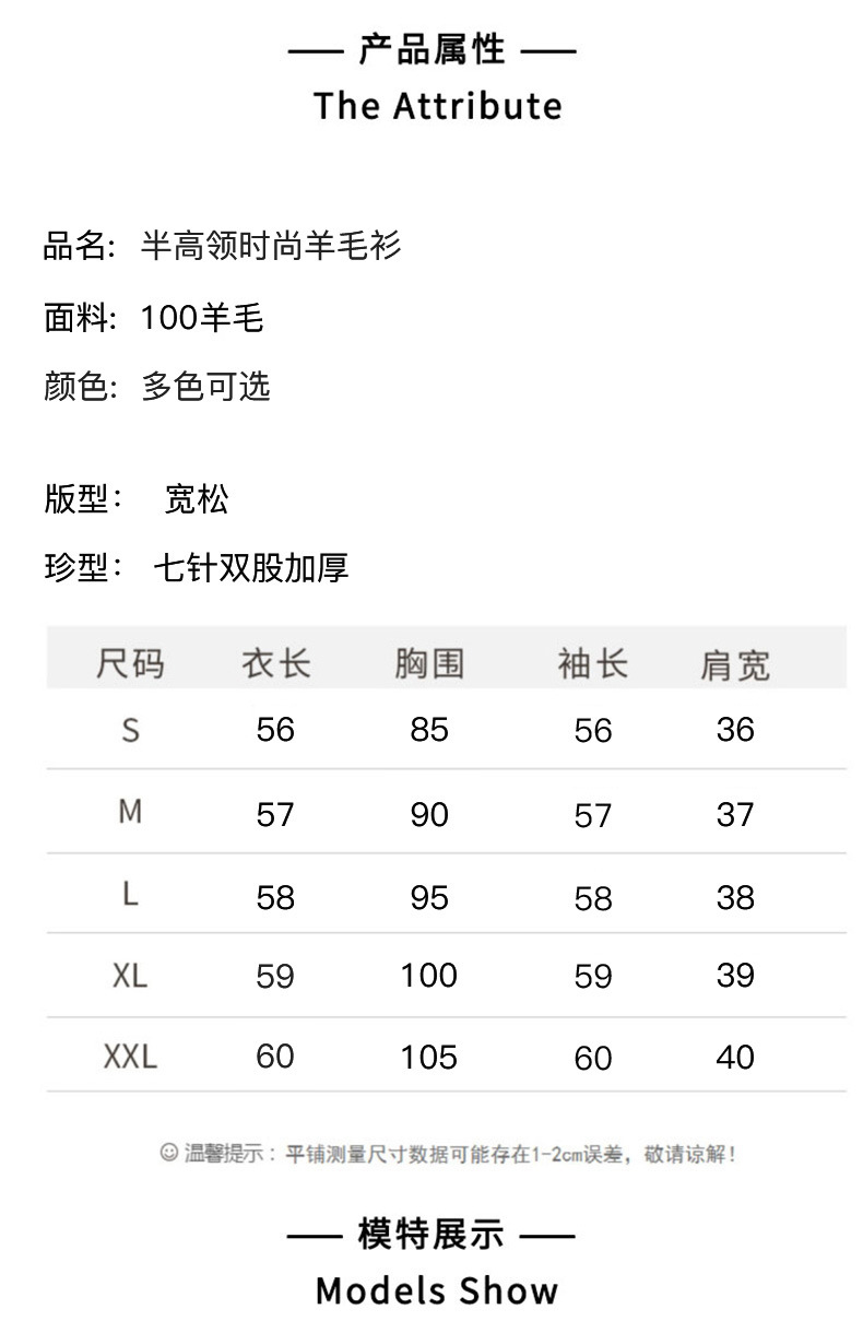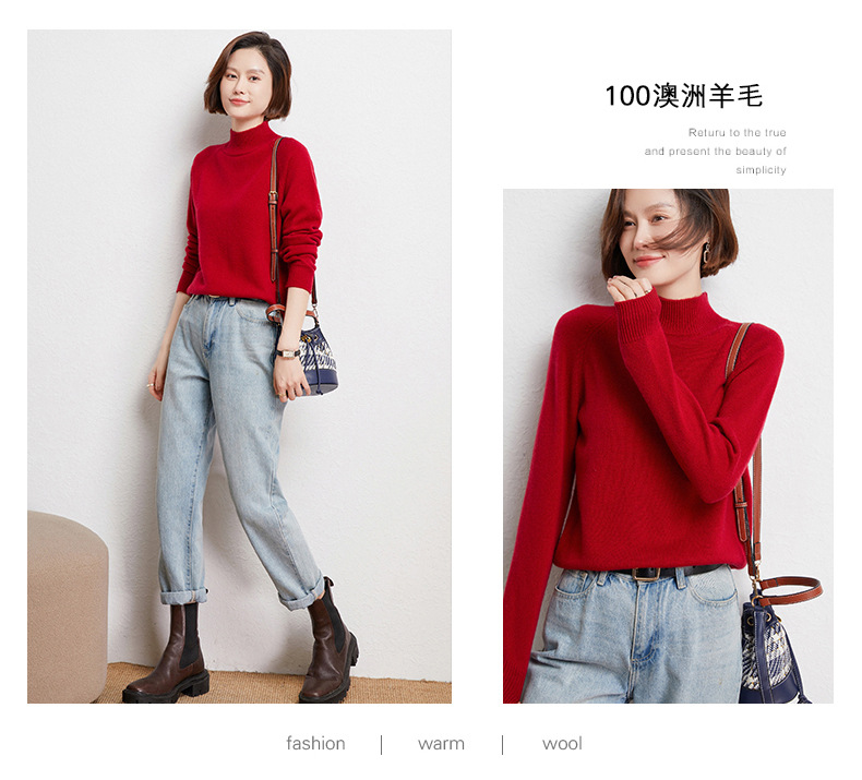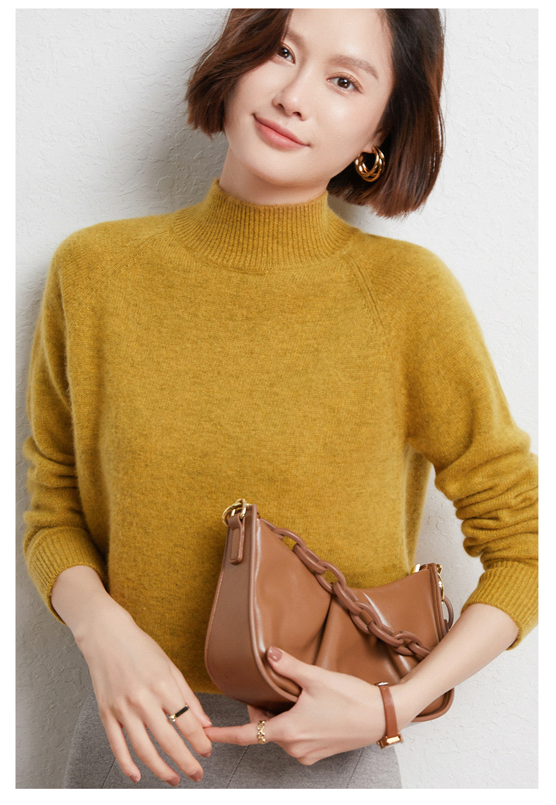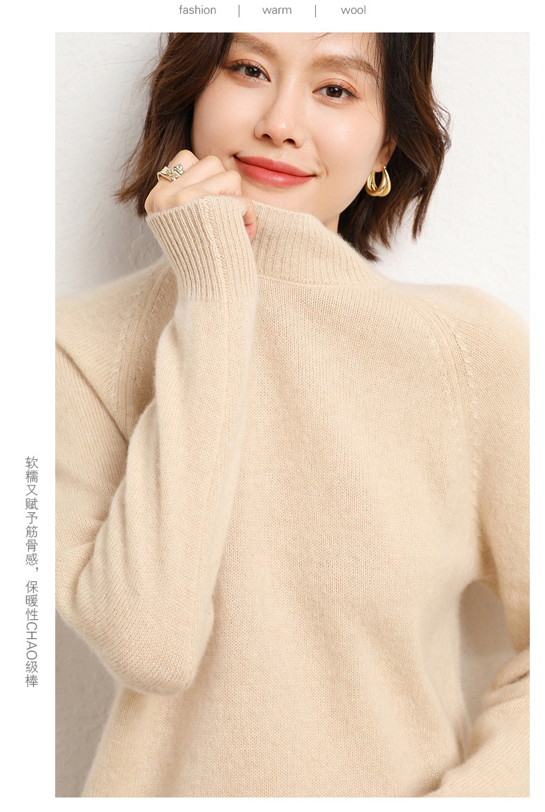 QHJY-JYBG22098女式羊毛衫纯色半高领打底衫毛衣加厚宽松套头羊毛针织衫冬季新款