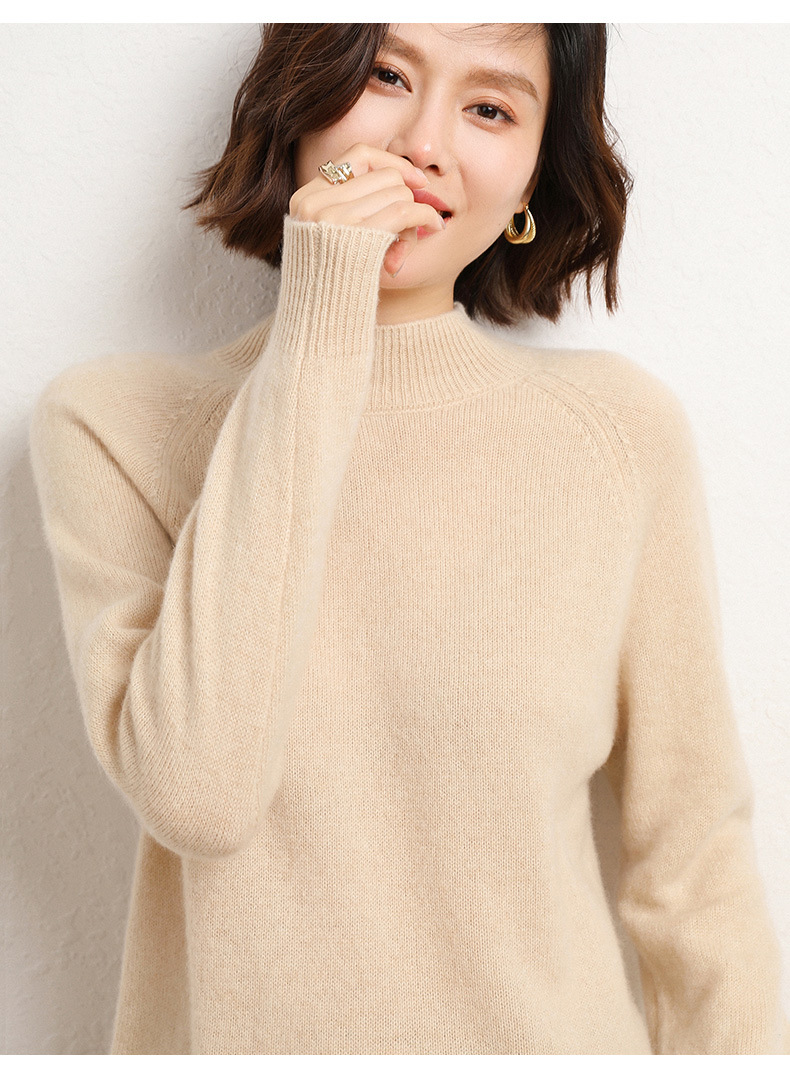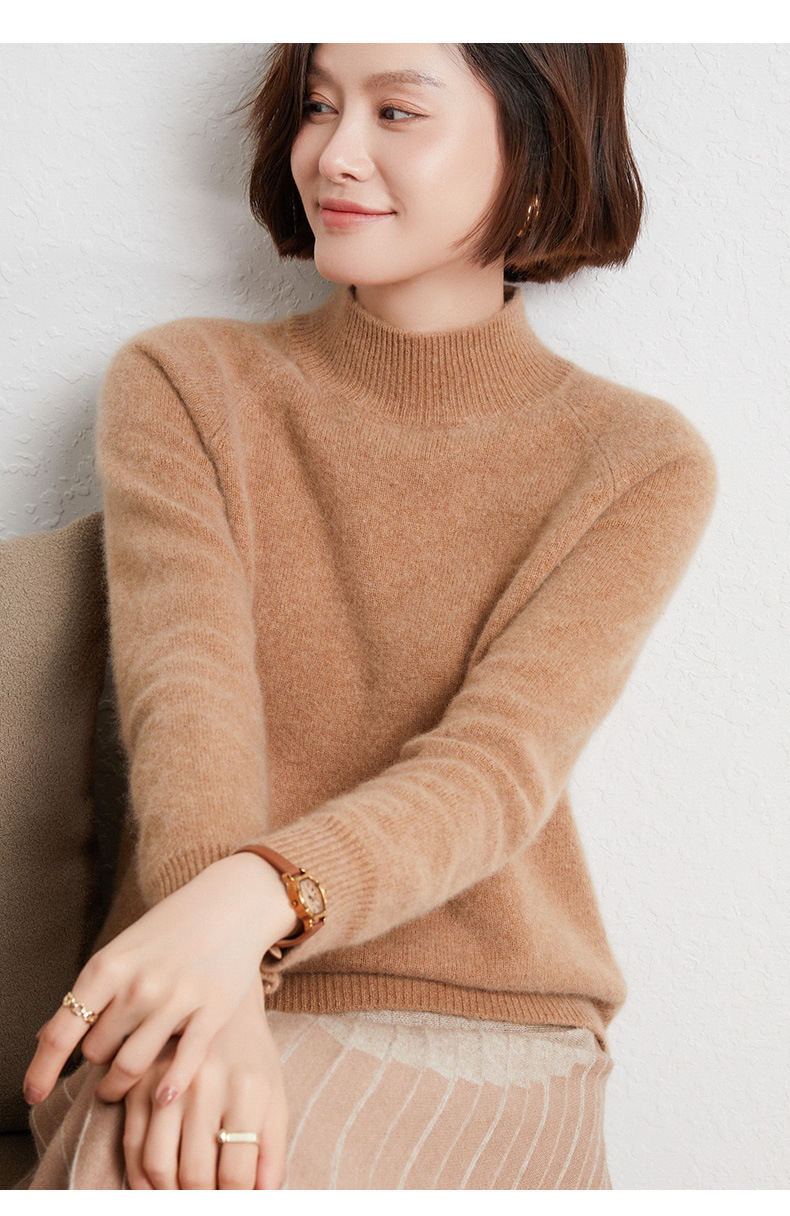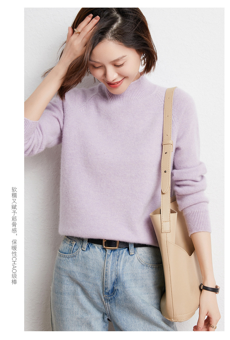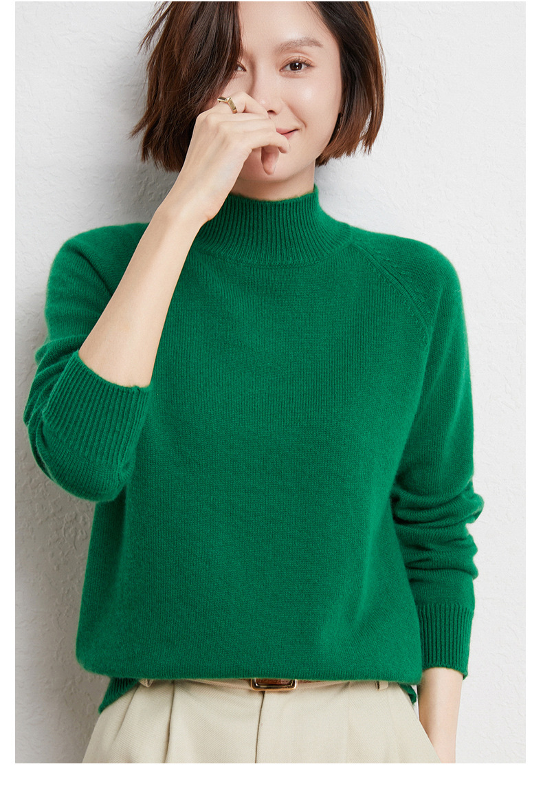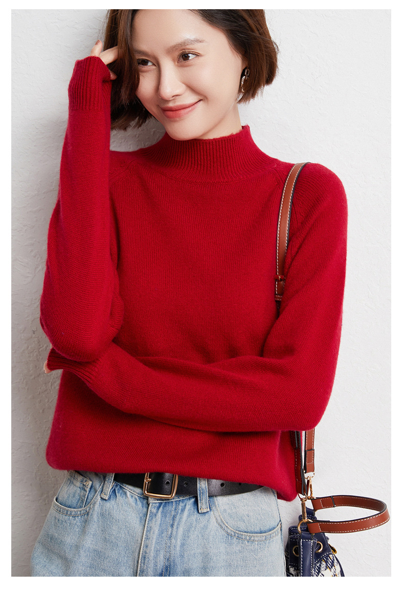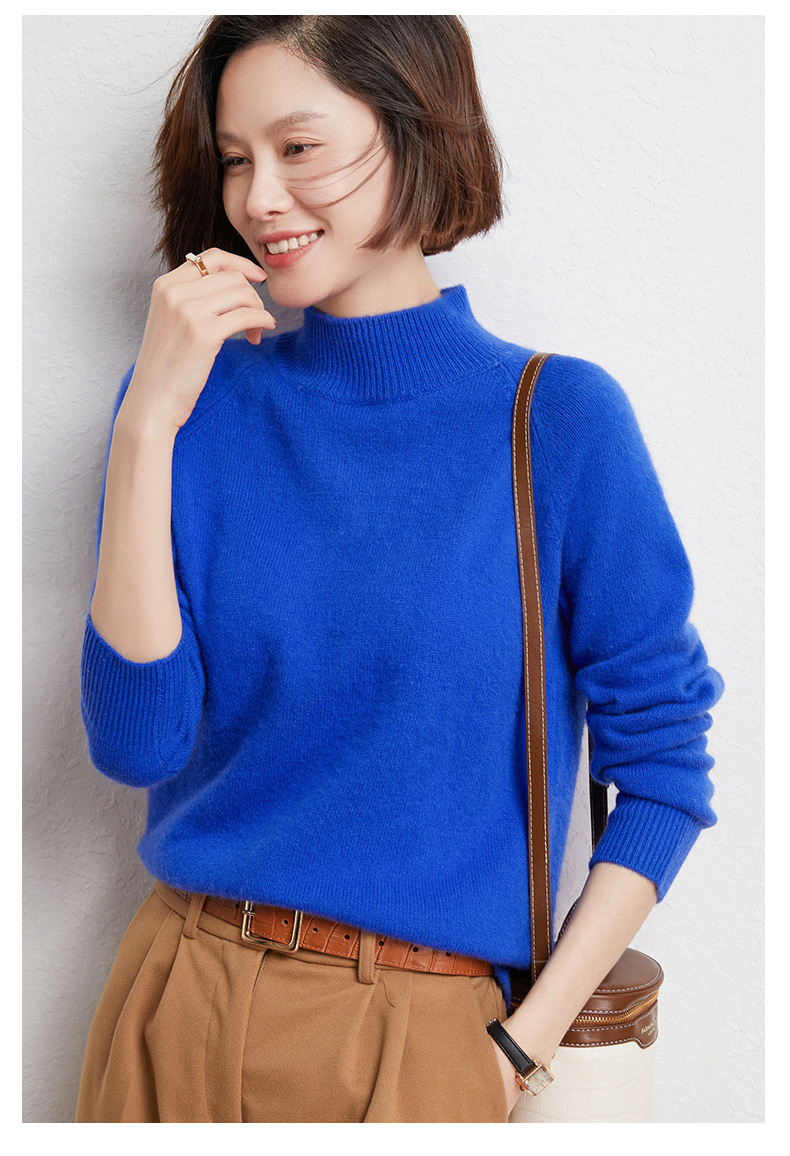 QHJY-JYBG22098女式羊毛衫纯色半高领打底衫毛衣加厚宽松套头羊毛针织衫冬季新款