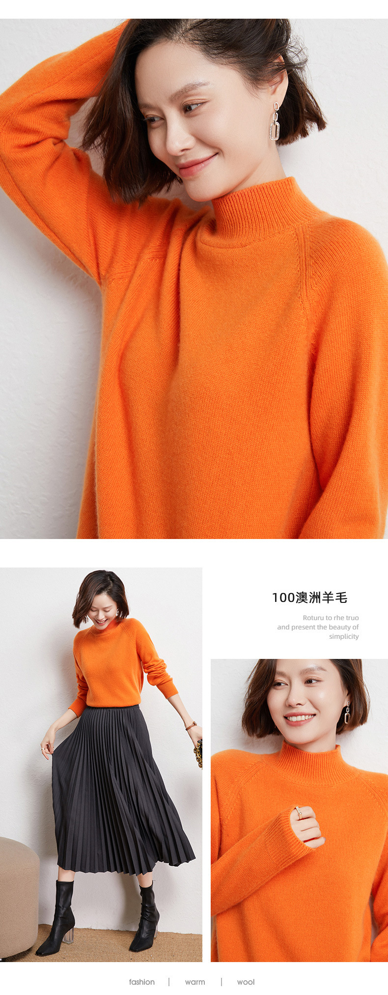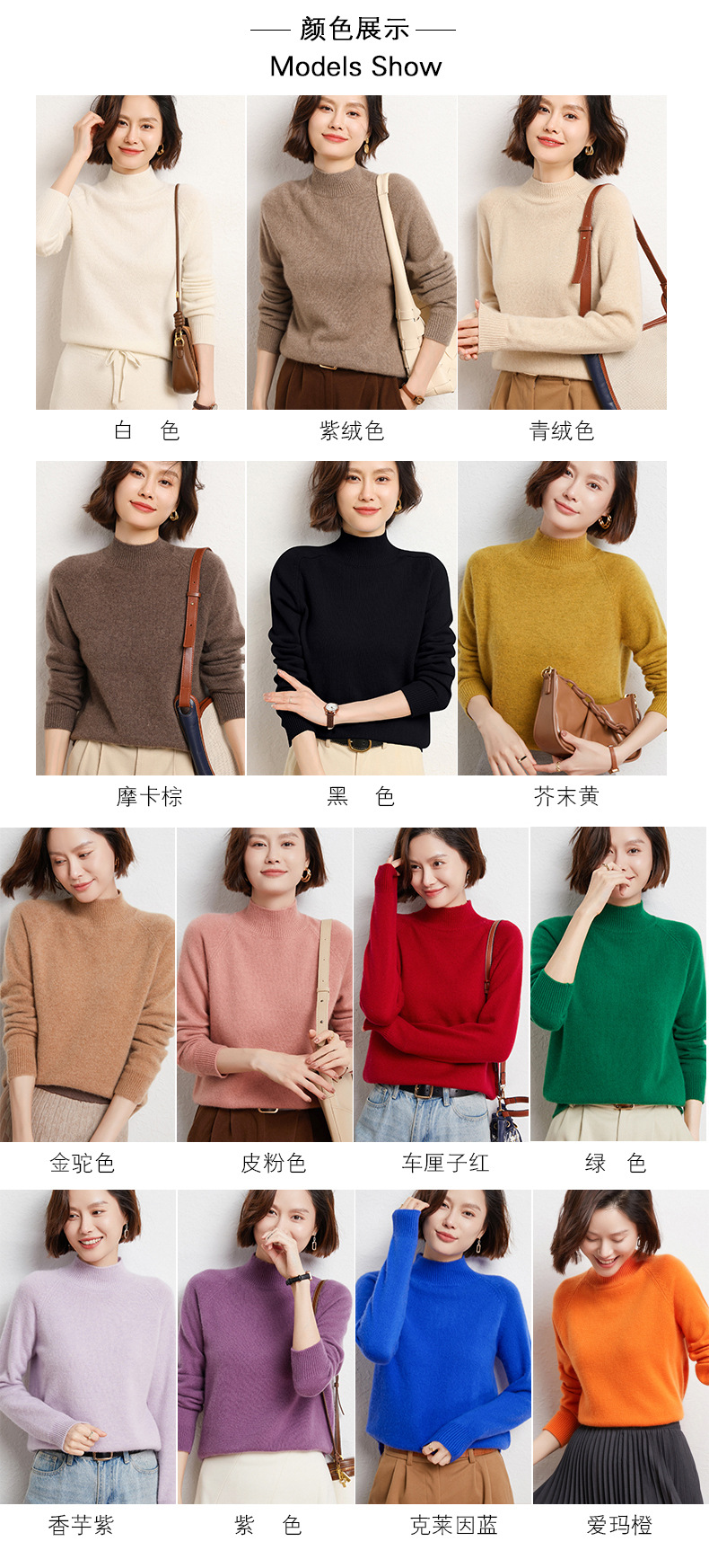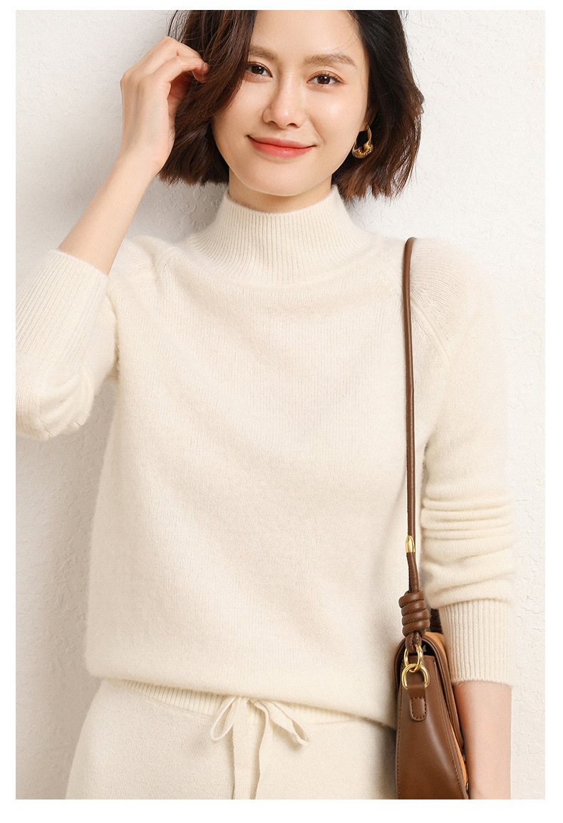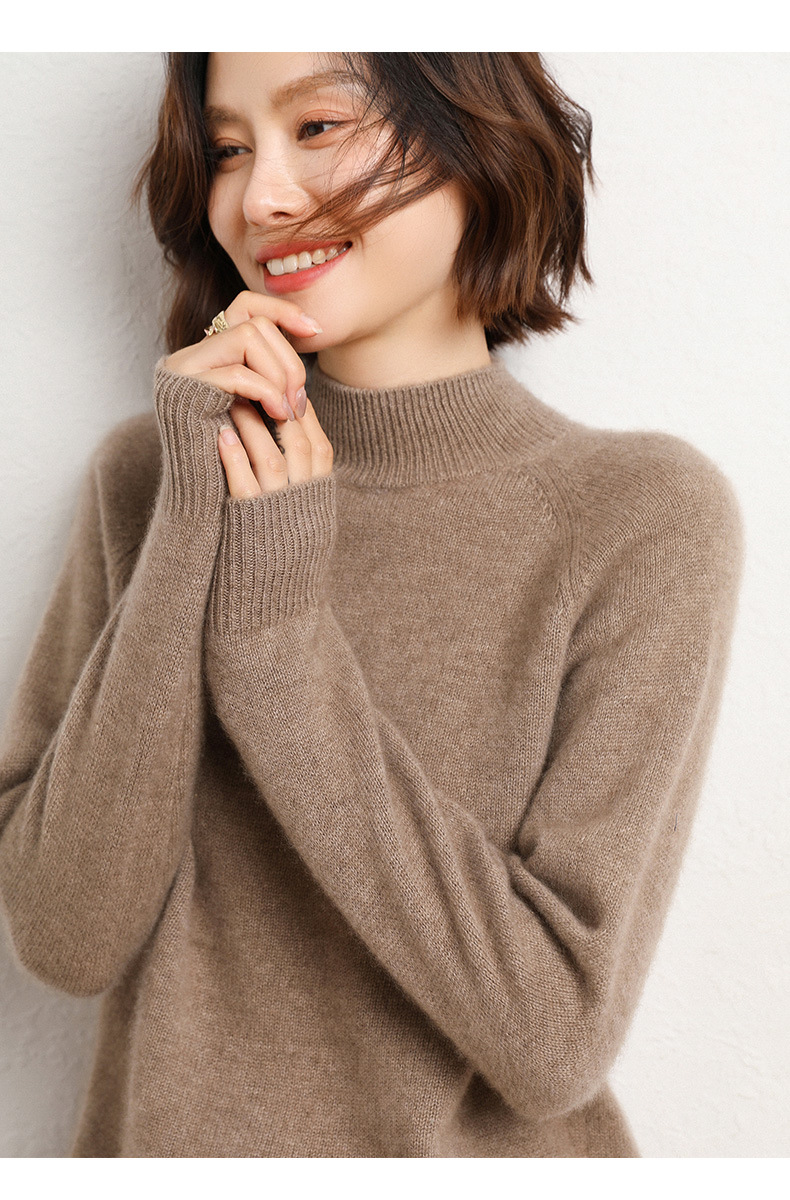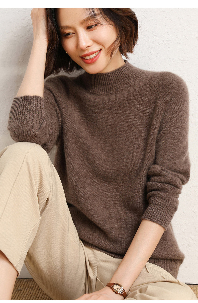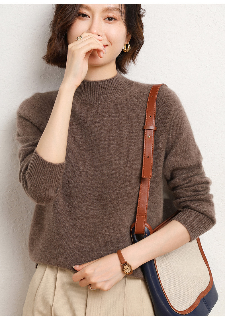 QHJY-JYBG22098女式羊毛衫纯色半高领打底衫毛衣加厚宽松套头羊毛针织衫冬季新款