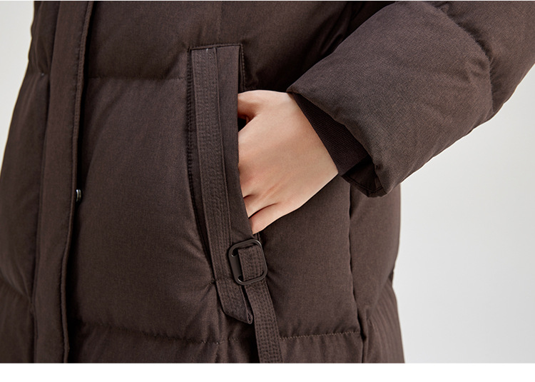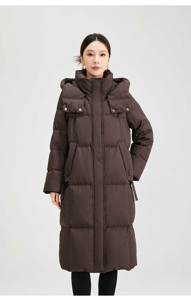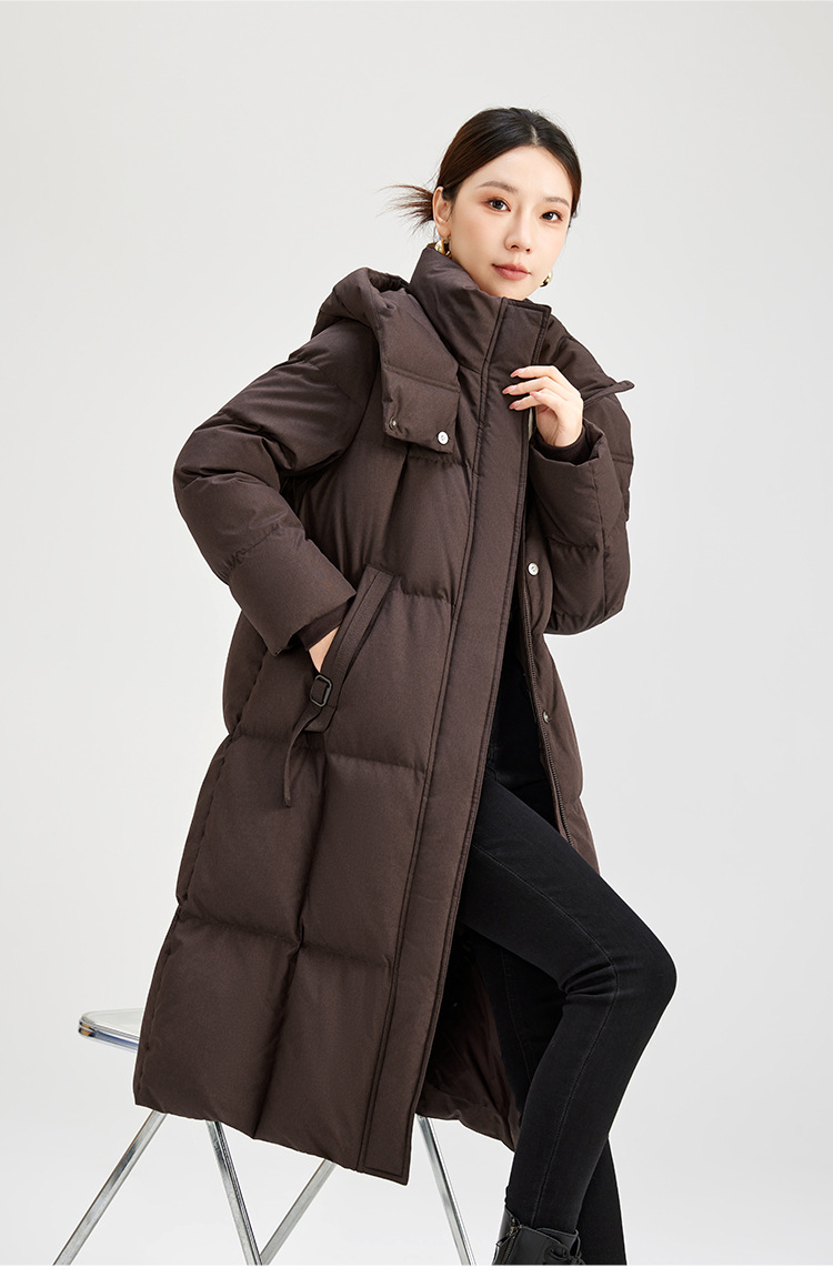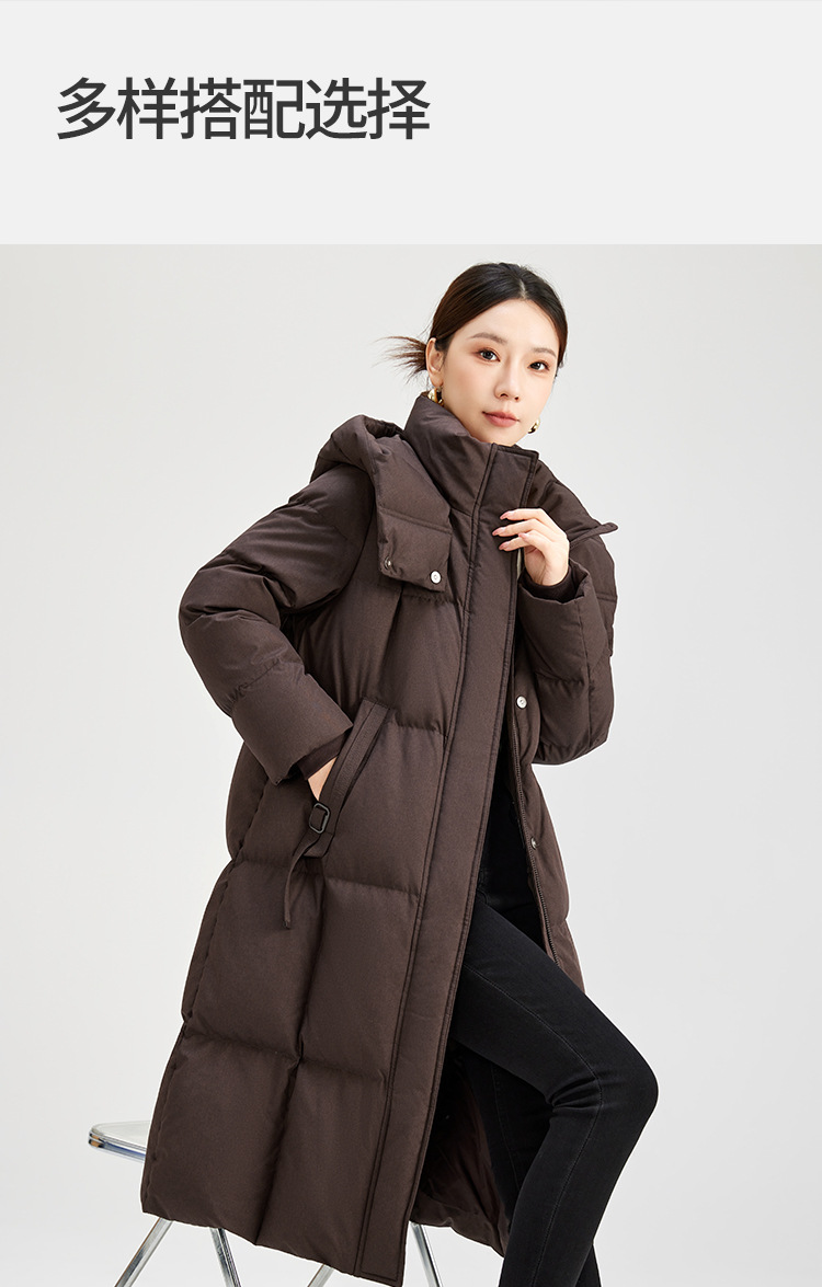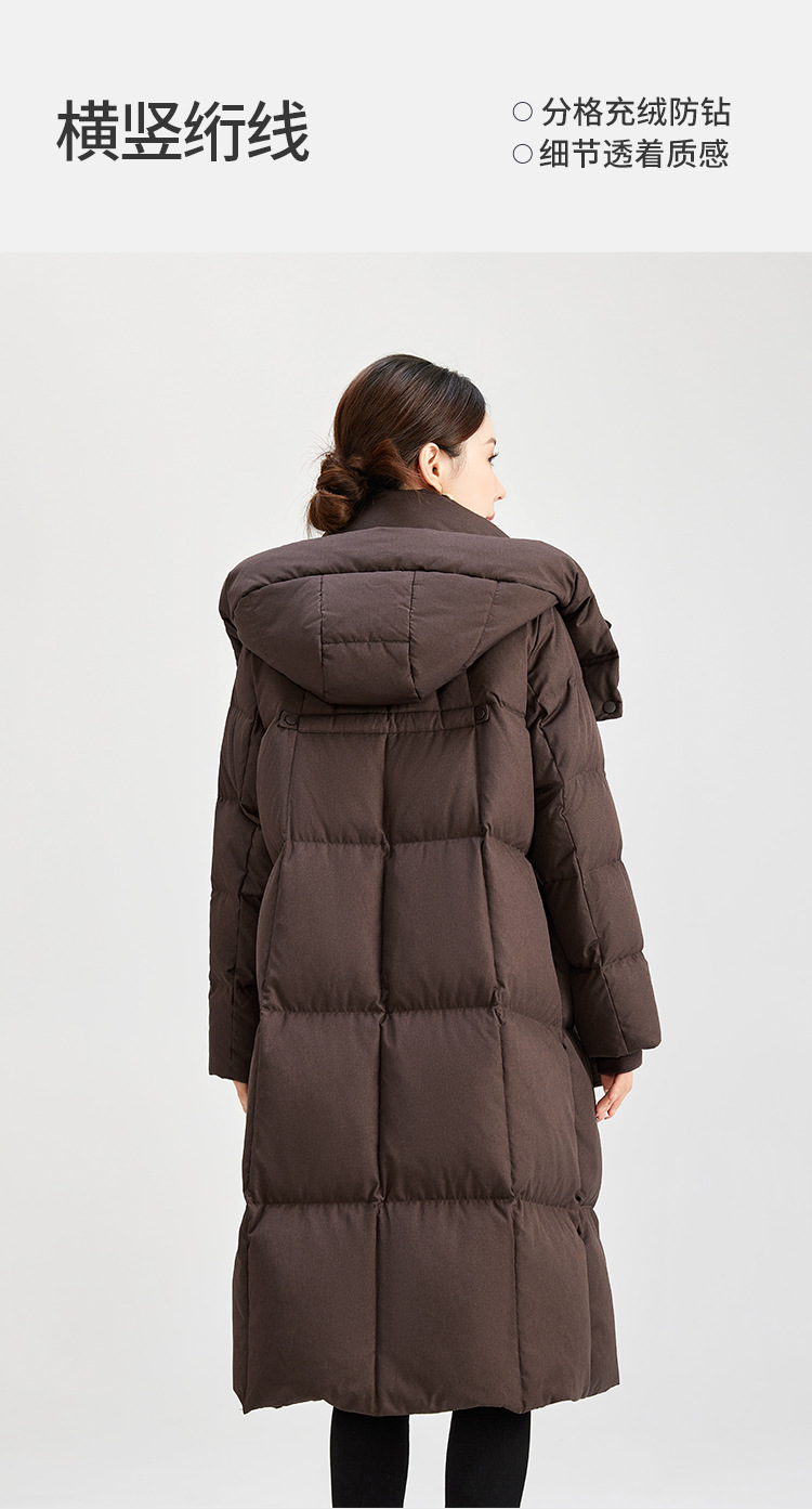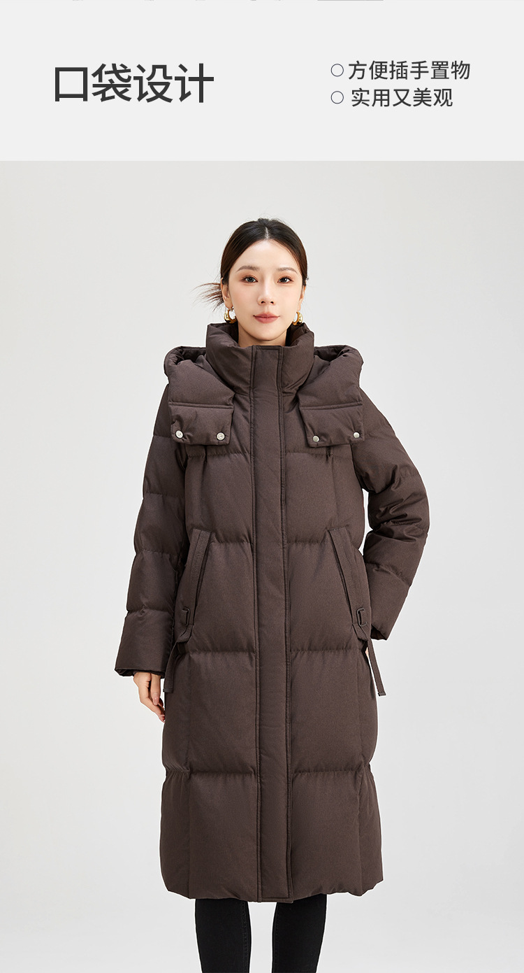 QS冬季新款连帽中长款鹅绒服高级感黑色过膝加厚休闲风显瘦外套5199