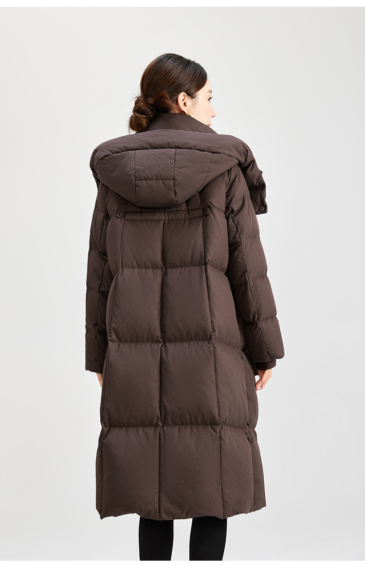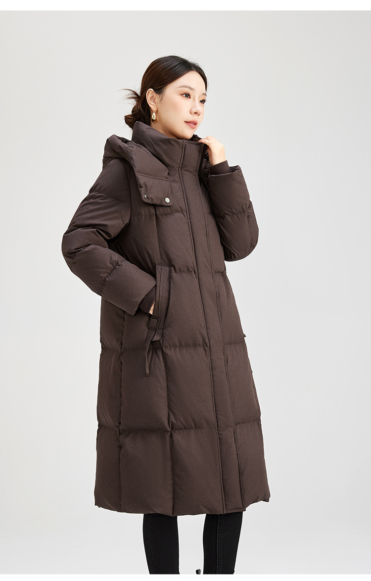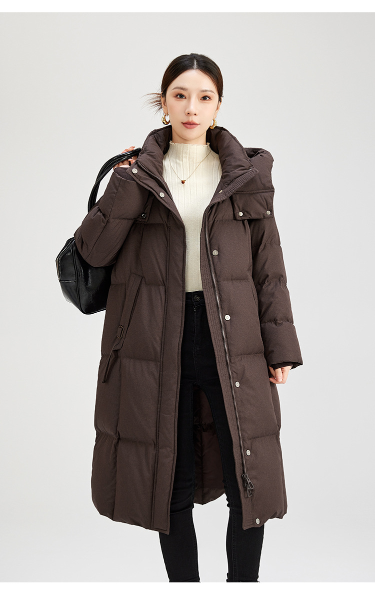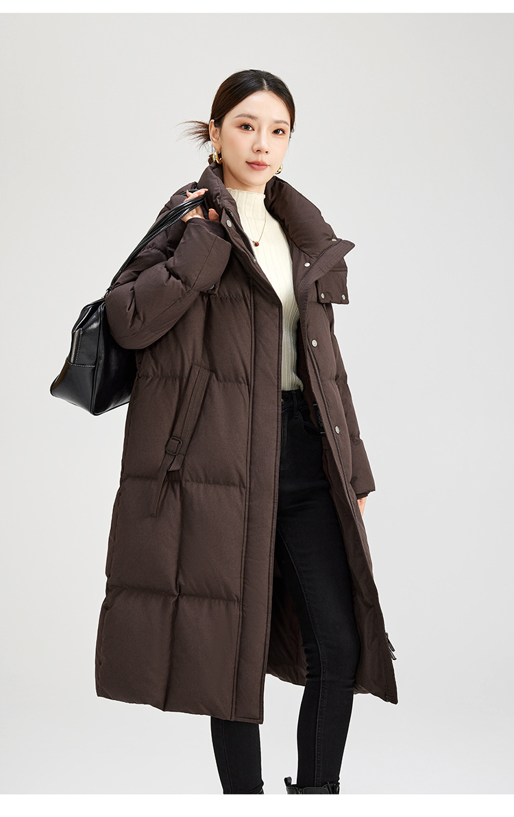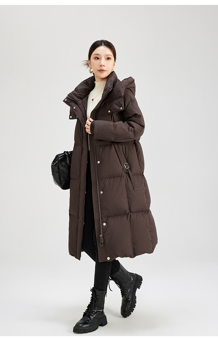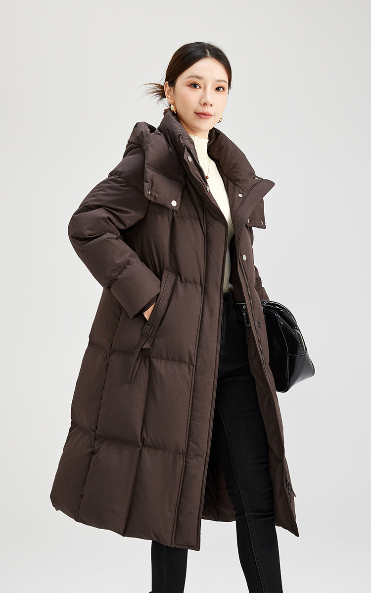QS冬季新款连帽中长款鹅绒服高级感黑色过膝加厚休闲风显瘦外套5199