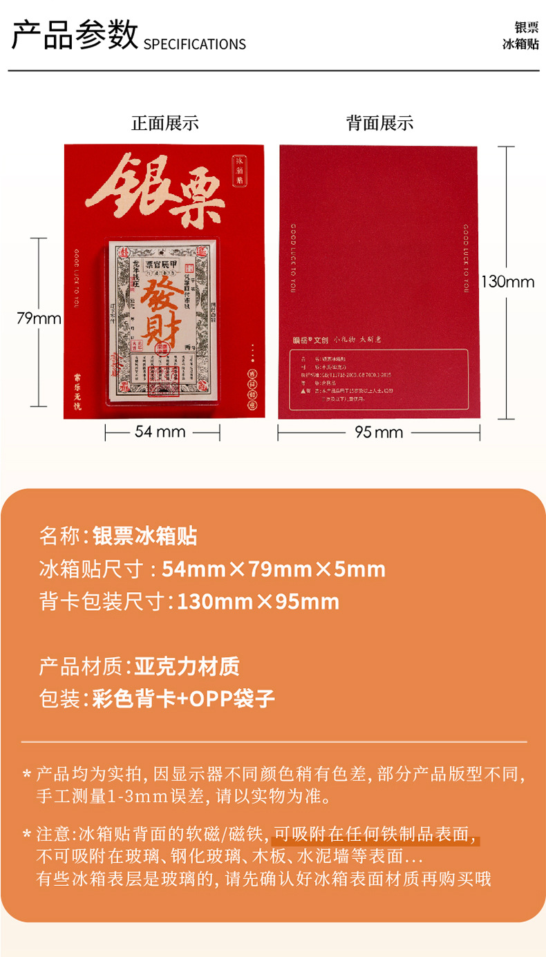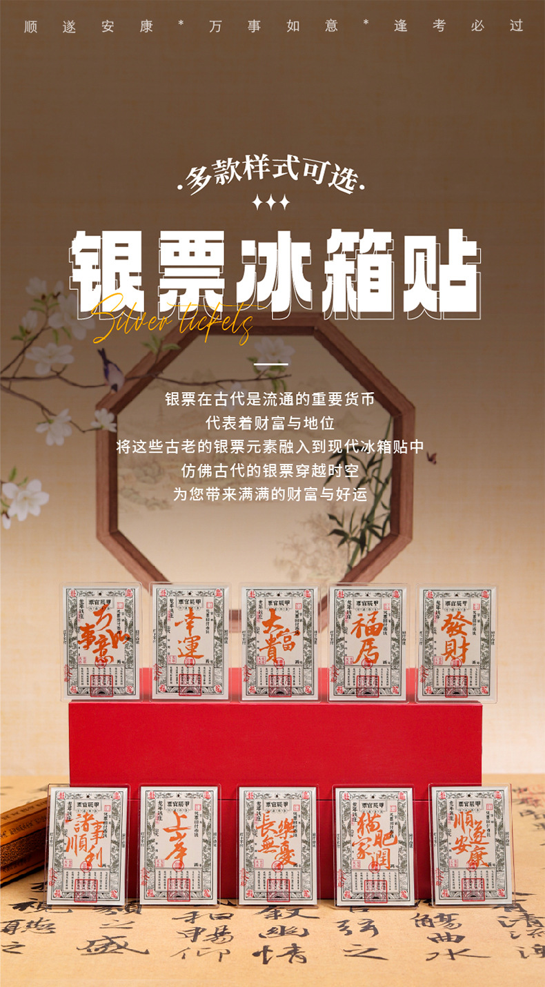 【蛇年祝福银票冰箱贴】考试季逢考必过祝福创意中国风装饰磁贴纪念品