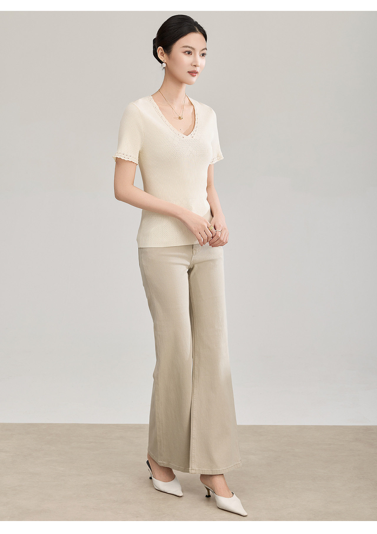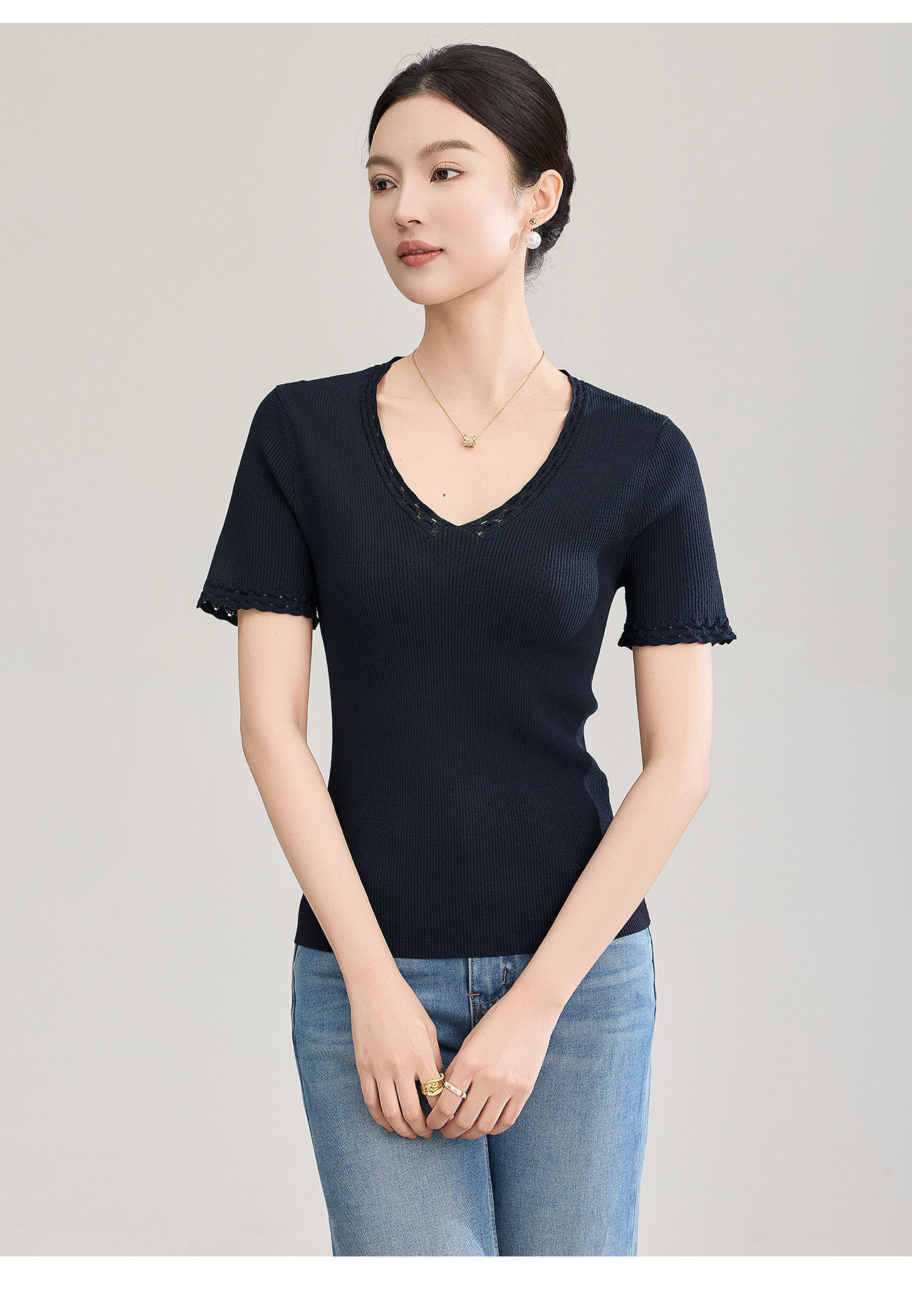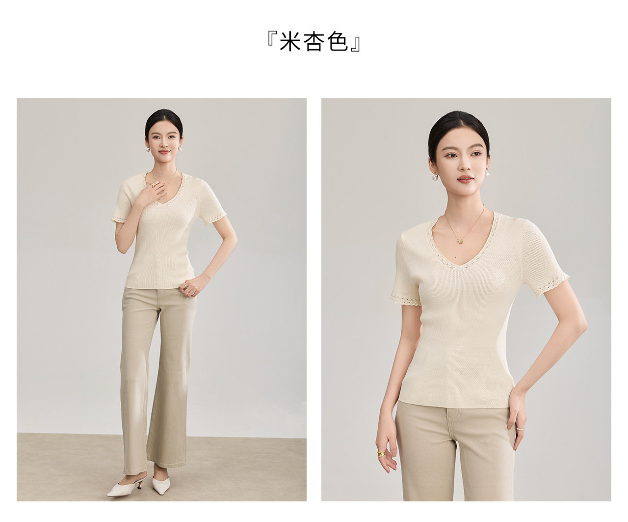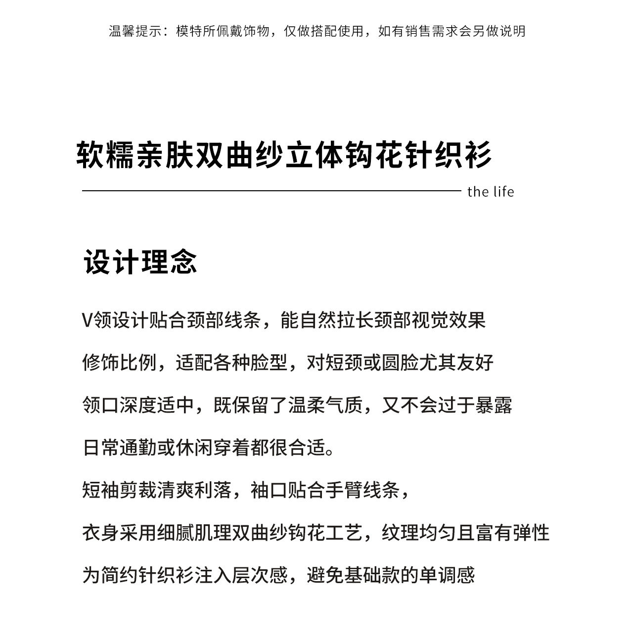 「高货wl」全新升级【铂金会员192/天猫259/差价67】(95801)洛诗琳法式立体钩花针织T恤2026春夏新款气质修身V领上衣