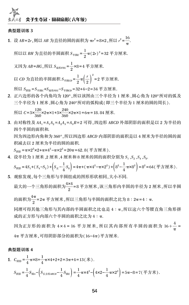 尖子生夺冠——六年级(圆和扇形)9787313231673 交大之星 6年级