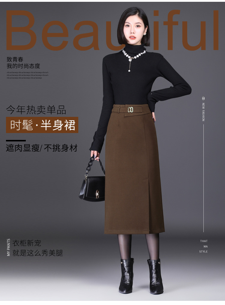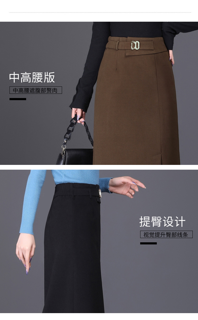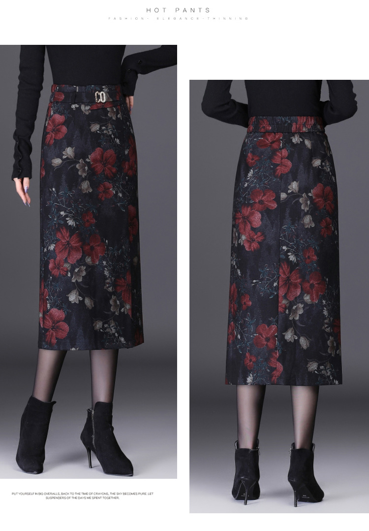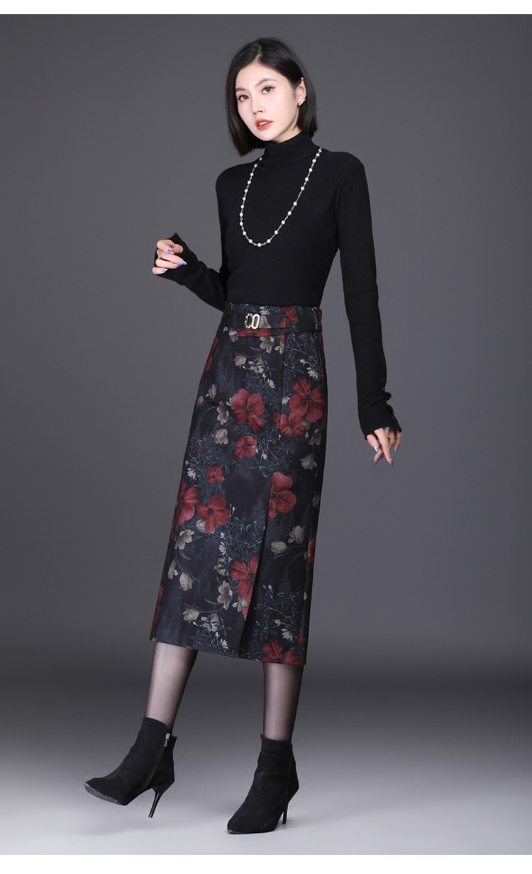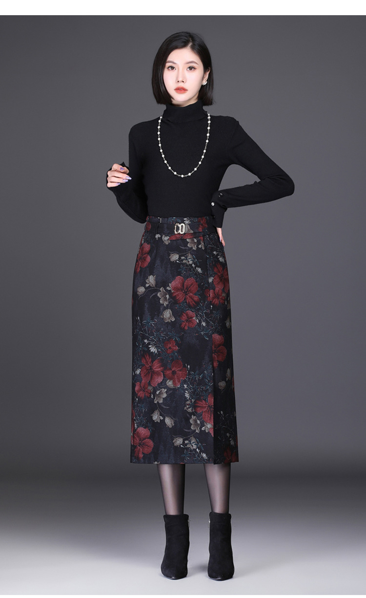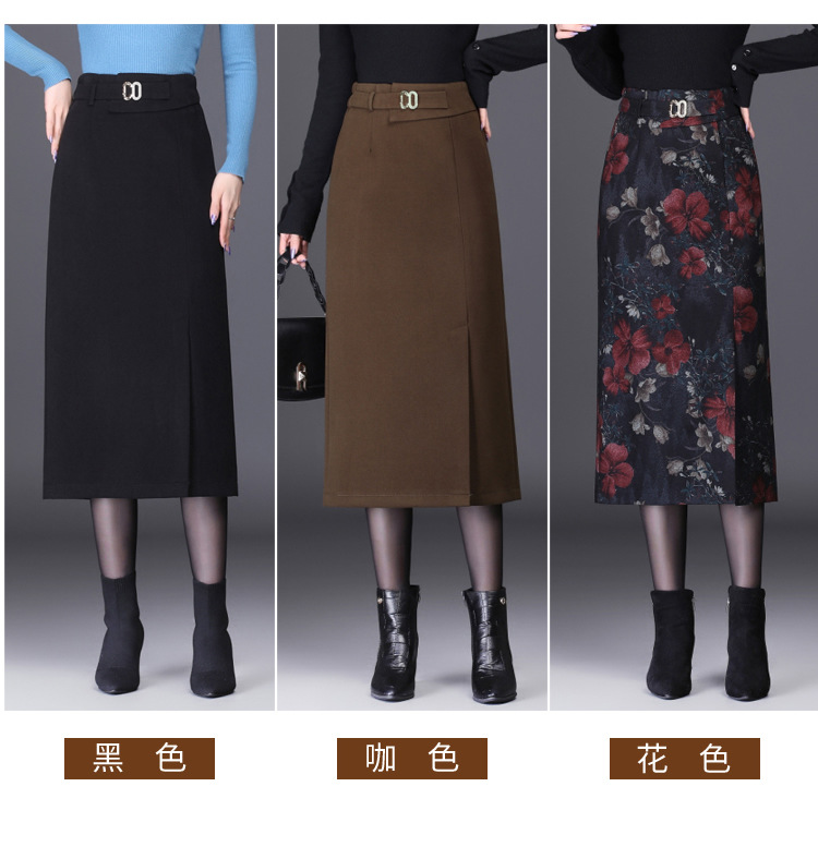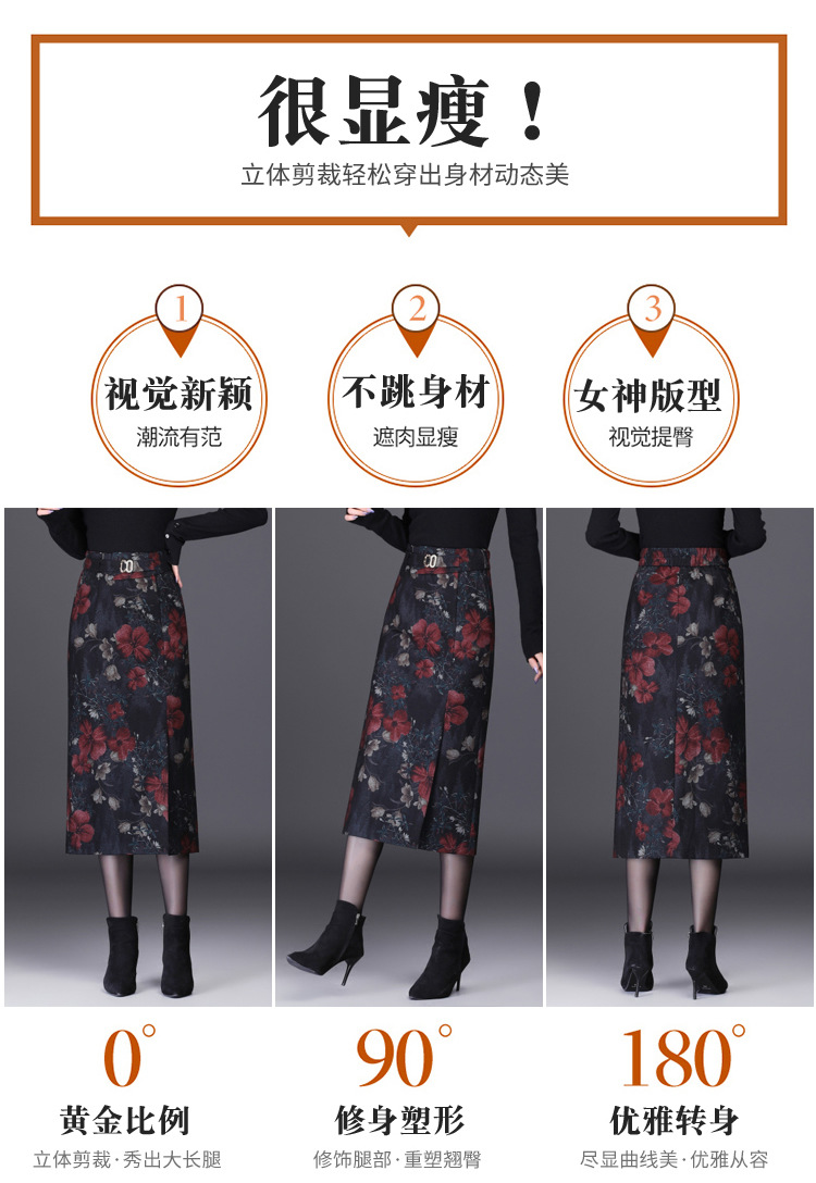 时尚厚款包臀裙,长款开衩裙印花长裙毛呢半身裙MYX-6763