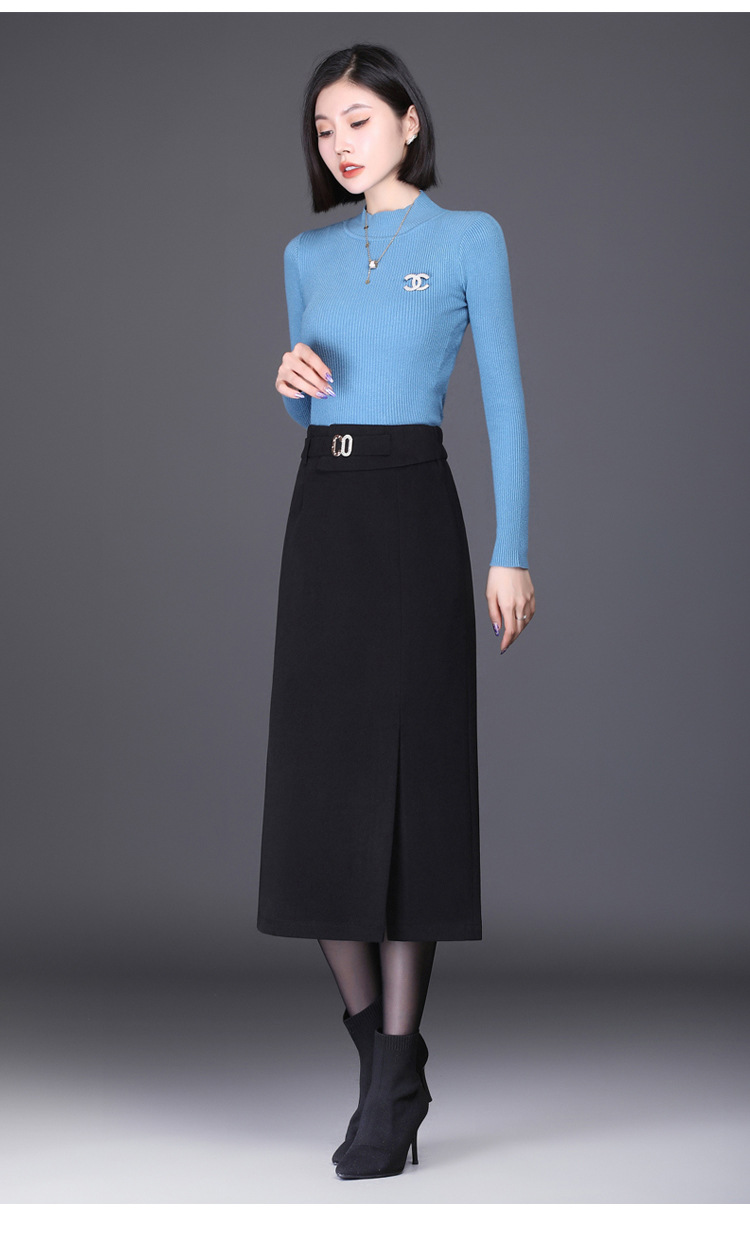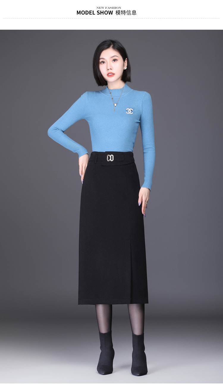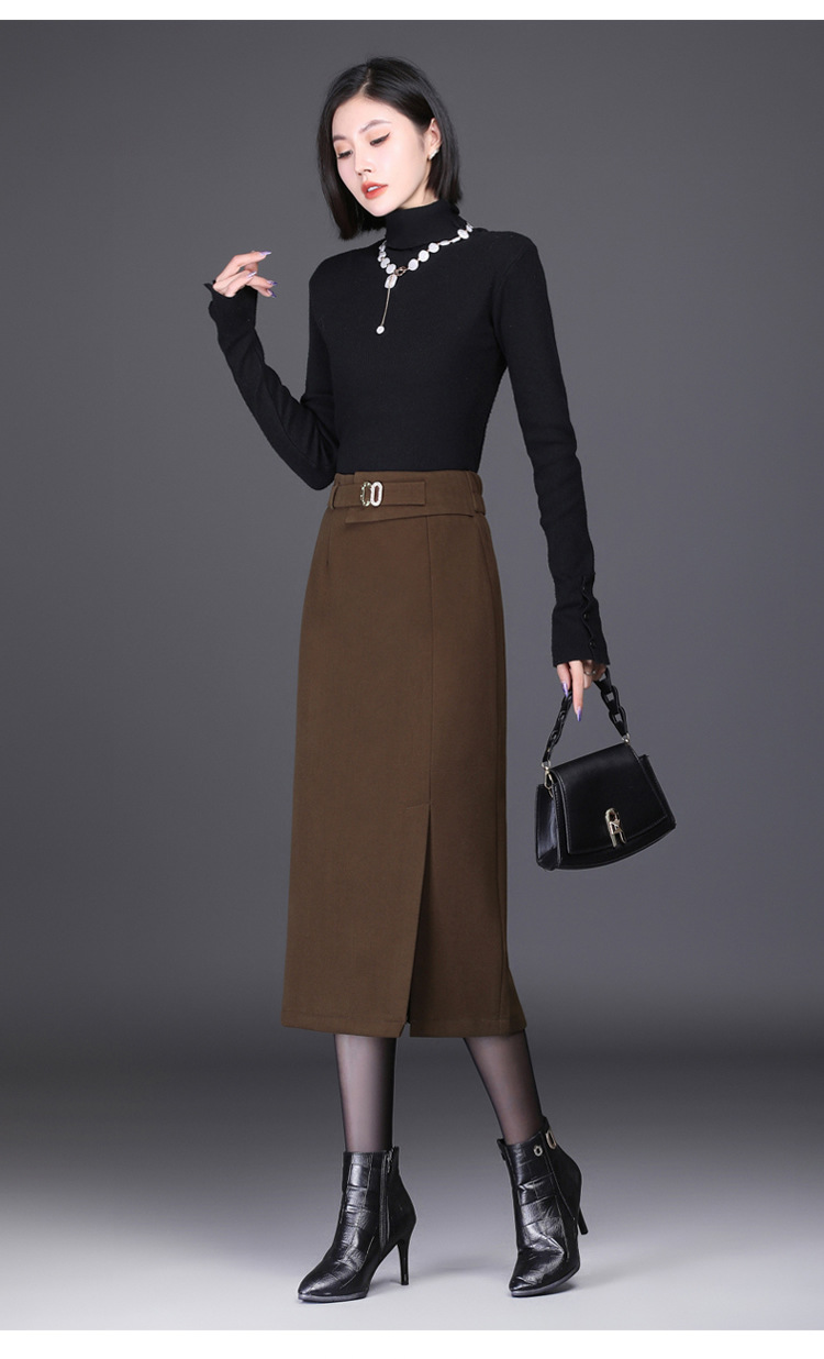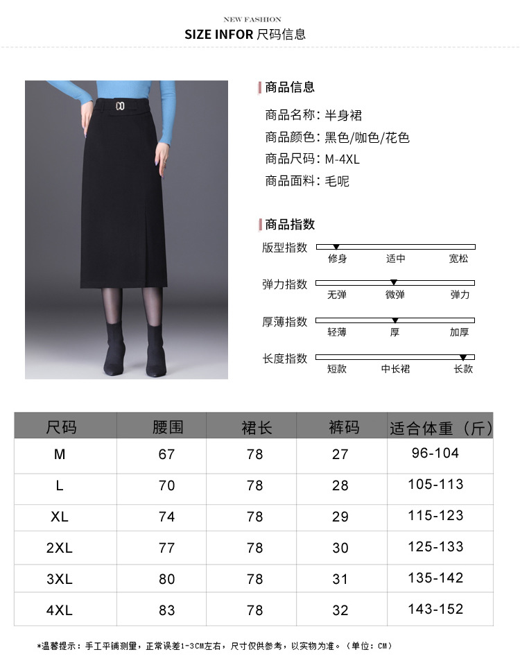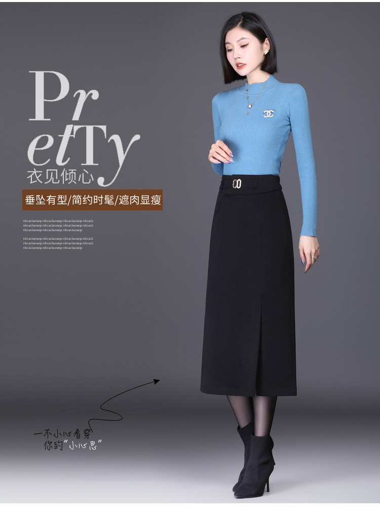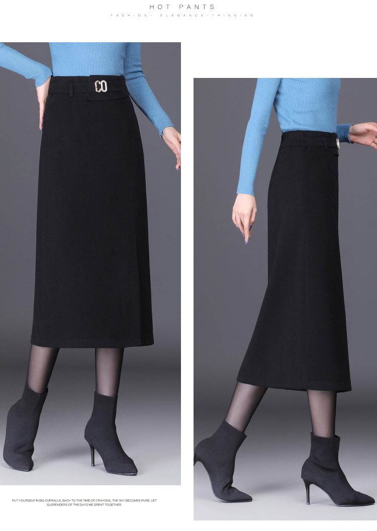 时尚厚款包臀裙,长款开衩裙印花长裙毛呢半身裙MYX-6763