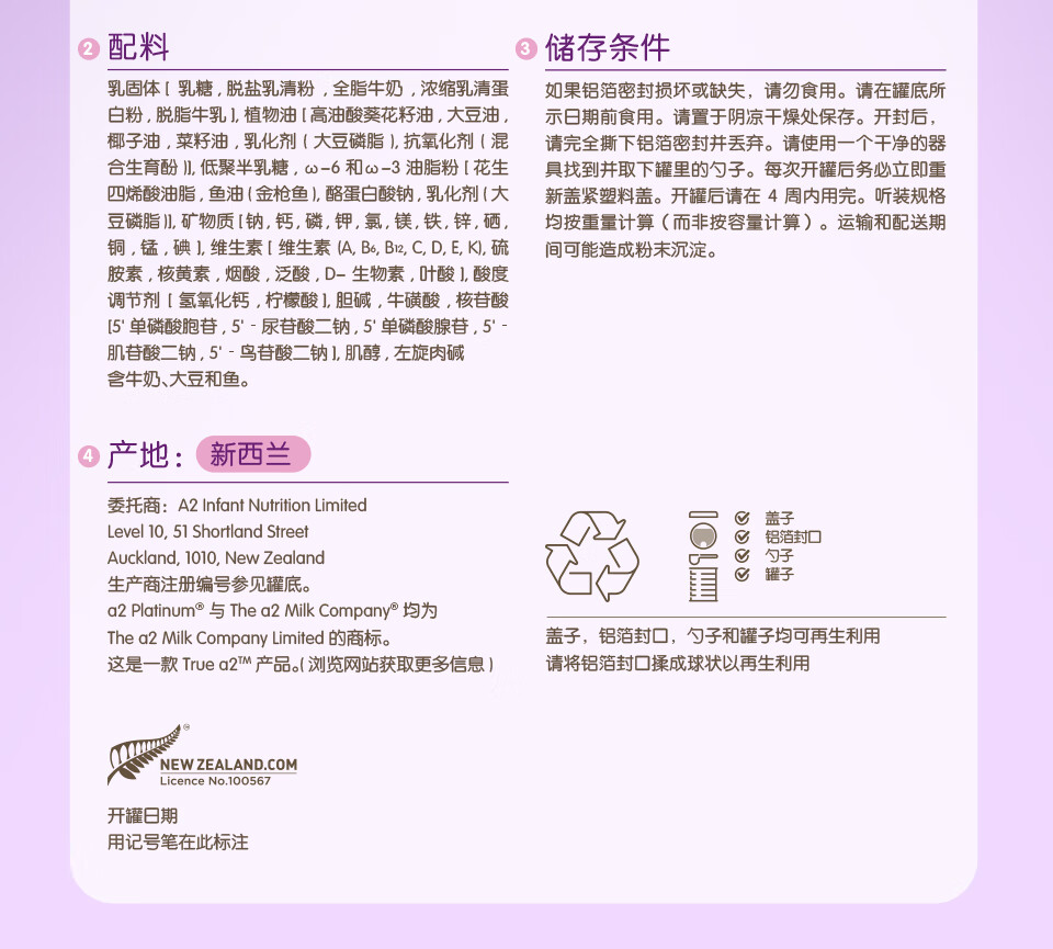 澳洲 A2白金婴儿配方奶粉1段 900g 跨境购